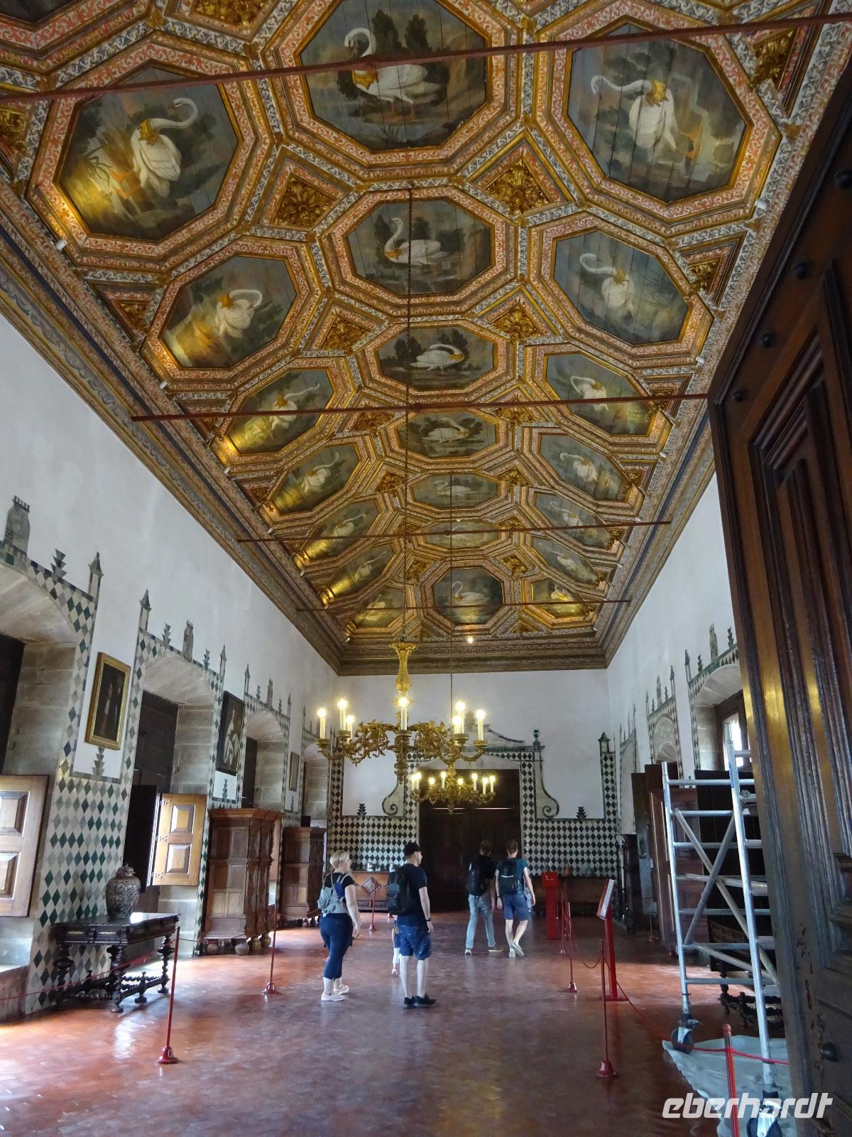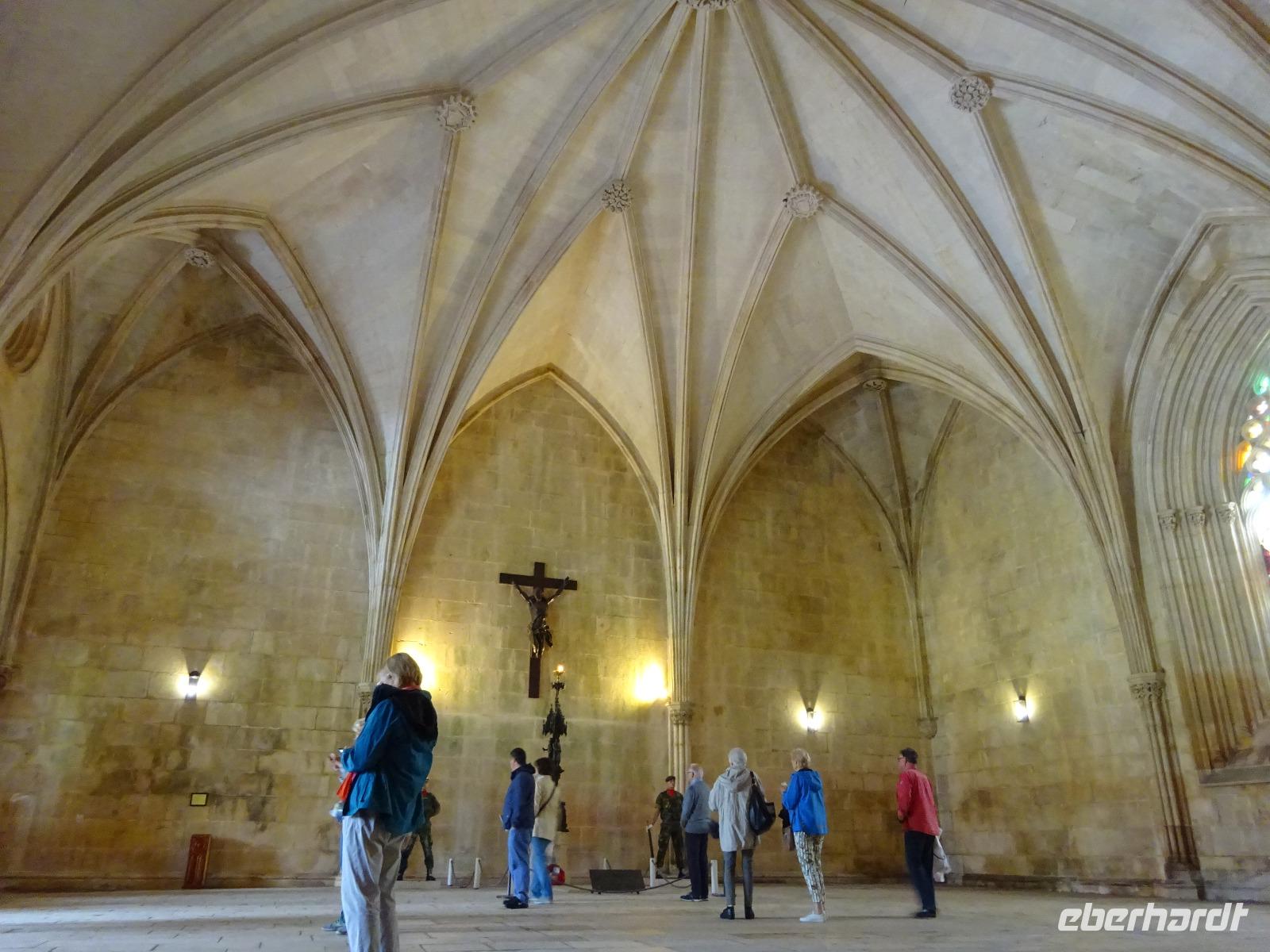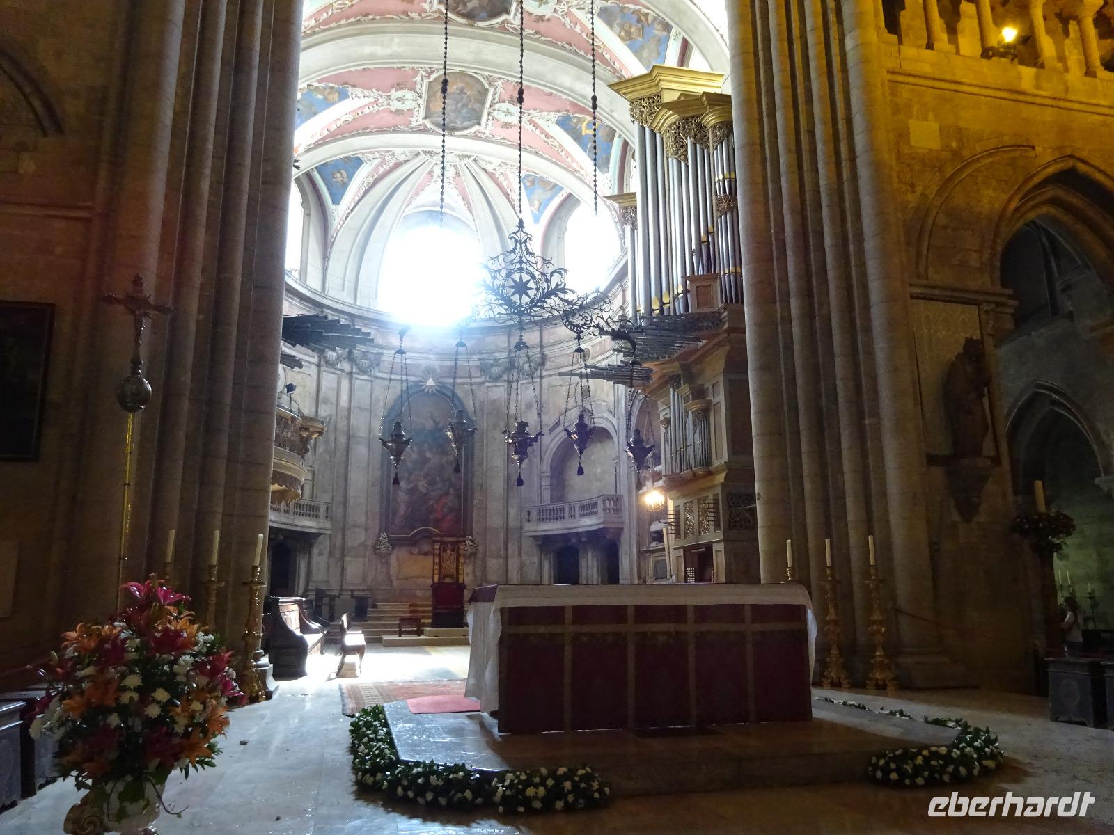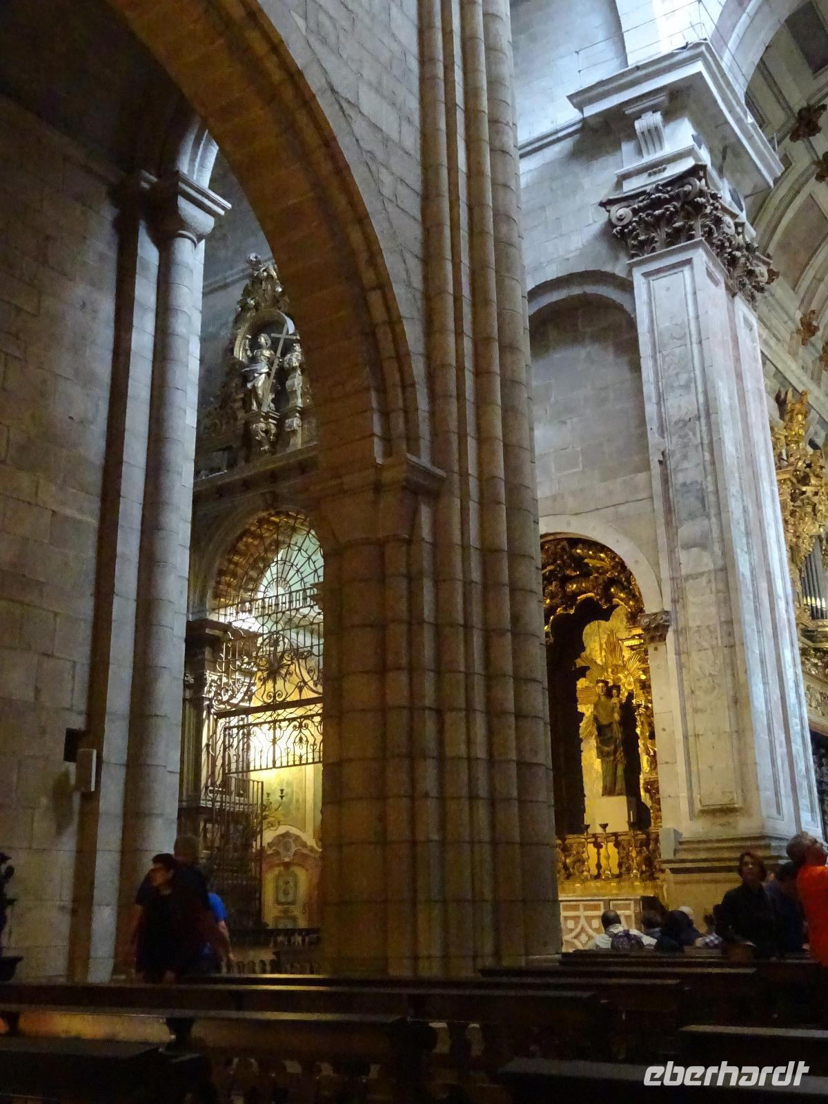 Gut gelaunt trafen wir uns mit Isabell. Heute wollten wir Porto erkunden. Unser Busfahrer Silverio fuhr uns direkt in das Stadtzentrum, Isabel erzählte uns Interessantes zu den einzelnen Plätzen, die wir passierten. Wir sahen viele, mit den typischen blauen Fliesen (Azulejos) verzierte Häuser und Kirchen. Vorbei an der Zwillingskirche Carmelitas und Carmo hielt unser Bus am nahe gelegenem Park Cordoria. Von hier aus ging es zu Fuß weiter. Wir sahen die Kirche dos Clérigos und entdeckten den Buchladen, der als Vorlage der bekannten Harry Potter-Bibliothek diente. Nun hatten wir Zeit, die Gegend um den Park und die Doppelkirche zu erkunden. Unser nächster Programmpunkt galt der imposanten Kathedrale Se in der Altstadt. Zuerst besichtigten wir die Kirche und anschließend den interessanten Kreuzgang. Unser Spaziergang führte uns weiter zur Bogenbrücke Ponte Dom Luis I. auf die obere Fahrbahnebene. 45 Meter Höhe sind sehr gewaltig, wenn man denn oben steht und die wunderschöne Aussicht auf Porto und Vila Nova de Gaia genießen kann. Weiter ging es zum Bahnhof Sao Bento, der uns mit seiner tollen Vorhalle beeindruckte. Die unzähligen Azulejos stellten Bilder aus der Geschichte Portugals dar. So sah man unter anderem Heinrich den Seefahrer bei der Eroberung Ceutas oder Egas Moniz' vor dem König Afonso VII von Kastilien und Léon. Die Einkaufsstraße Santa Catalina ließ anschließend die Frauenherzen höher schlagen. Wir hatten wir genügend Zeit, einen kleinen Snack zu essen, in den zahlreichen Geschäften zu stöbern oder sogar im Jugendstil-Café Majestic, in welchem Joanne K. Rowling die ersten Kapitel des Harry Potter-Buches schrieb, einen Kaffee zu trinken. Am weiteren Nachmittag bestand die Möglichkeit, mit dem Bus zum Hotel zurück zufahren oder für weitere individuelle Erkundungen in der Stadt. Gemeinsam spazierten wir Stadterkundler zum Bahnhof zurück und erkundeten jeder nach eigener Fasson die schmalen Straßen der Stadt. Mit der Metro ging es dann wieder über die Bogenbrücke zurück zum Hotel. Gemeinsam trafen wir uns abends, um am Flussufer des Douro in einem hübschen Restaurant zu Abend zu essen. Im Restaurant Bacalhoeiro wurden wir bereits erwartet und wie der Name schon andeutet, konnten wir frischen leckeren Stockfisch sowie andere portugiesische Leckereien essen. Ein abendlicher Spaziergang am Ufer entlang ließ diesen Tag entspannt zu Ende gehen.