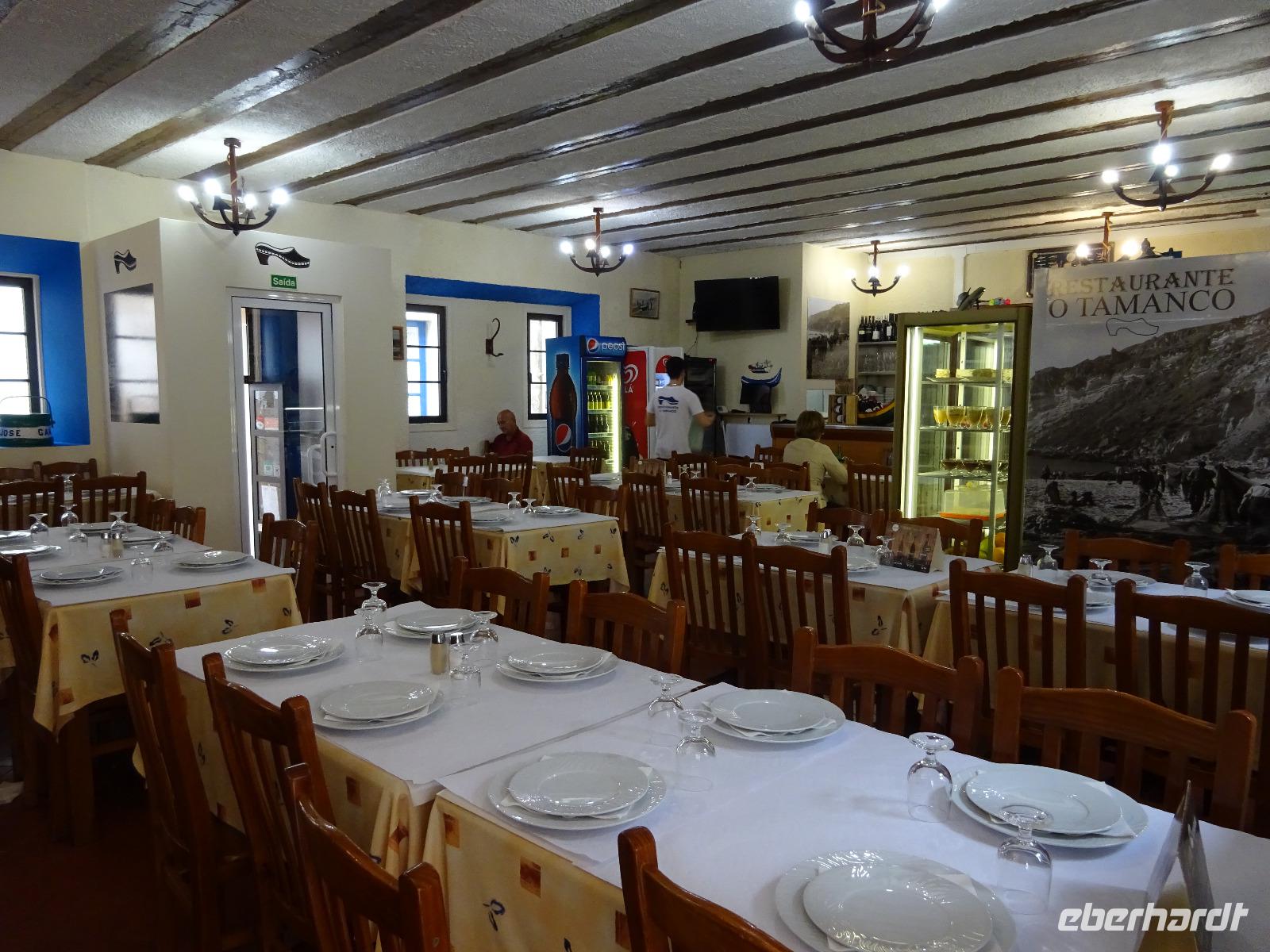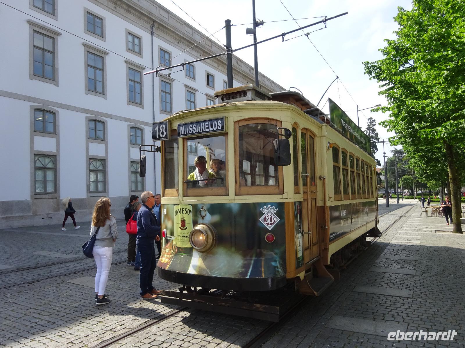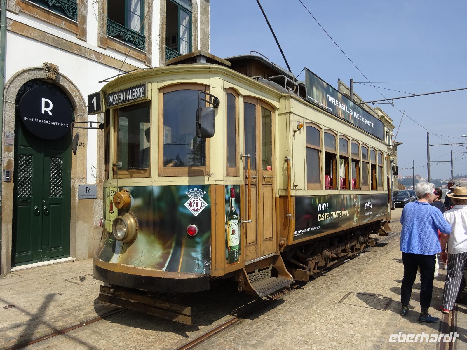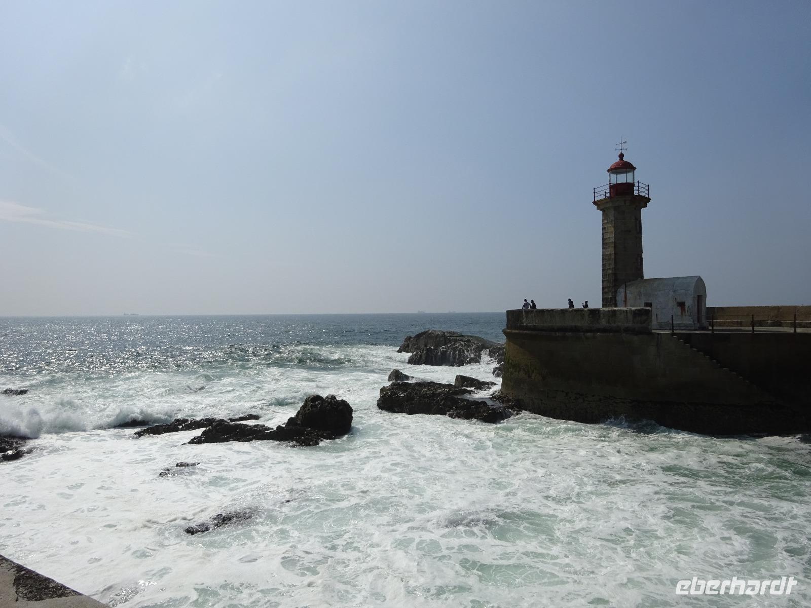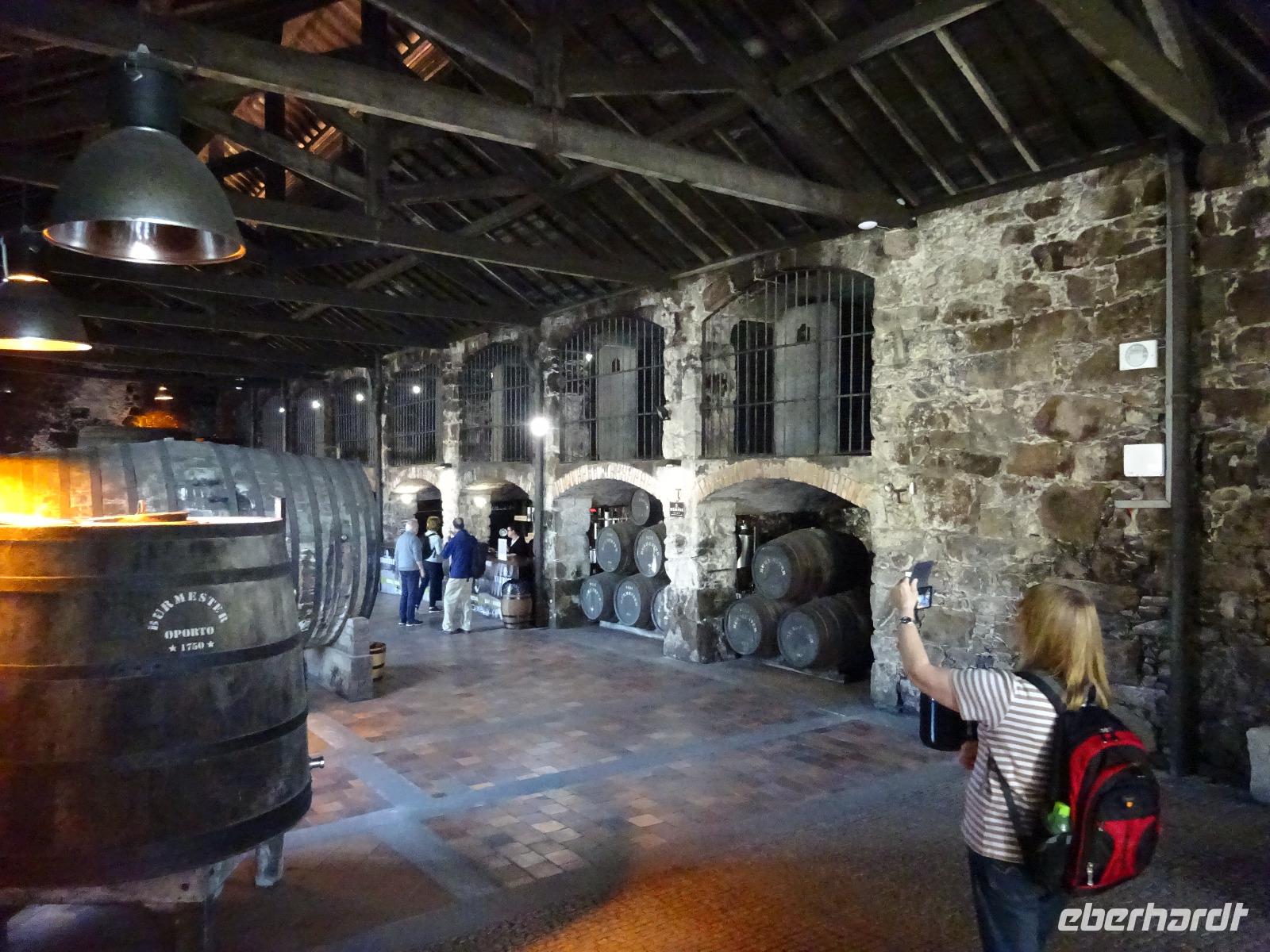 Nach einem guten Frühstück mit fantastischer Aussicht konnte der Tag starten. Wir fuhren wieder mit Isabel in die Stadt. Ab heute begrüßten wir Abelio als unseren Busfahrer. Wir stiegen in der Altstadt aus und gingen über die belebte Blumenstraße bis zur Markthalle und der Börse. Vorbei am Geburtsort von Heinrich dem Seefahrer gelangten wir zur Anlegestelle der Rabelos, der ehemaligen Portweinschiffe. Das Wetter war hervorragend für eine Bootsfahrt auf dem Douro. Zuerst flussaufwärts, unter den berühmten Brücken Portos bis zur Brücke Ponte de Sao Joao und wieder flussabwärts bis zur Mündung im Atlantik. Auf der Rückfahrt legten wir auf der südlichen Seite des Flusses an und spazierten zur Portweinkellerei von Burmester. Eine Mitarbeiterin der Bodega führte durch die Lagerhalle und erläuterte den Anbau der Weinreben sowie den Herstellungsprozess des Portweins. Ein kleiner abschließender Film brachte den Weinanbau rund um den Douro näher. Anschließend konnten wir zwei Portweine verkosten und natürlich auch an käuflich erwerben. Die anschließende Freizeit nutzten alle, um einen kleinen Happen im Hafenviertel Ribeira zu sich zu nehmen. Am Nachmittag hatten wir wieder Zeit, Porto auf eigene Faust zu erkunden. So entschlossen sich einige, mit der historischen Straßenbahn Linie 1 zur Mündung des Douro zu fahren. Wir fuhren im Stil der alten Zeit entlang des Flussufers bis zum Alegre Garten und konnten bis zur Mole direkt am Atlantik spazieren. Wir genossen die Sonne, den Duft des Meeres und beäugten die teilweise sich brechenden Wellen am Leuchtturm. Um zum Hotel zurückzukehren nutzten wir wieder die historische Straßenbahn und die Metro über die Bogenbrücke. Das heutige Abendessen nahmen wir in einem kleinen urigen Restaurant direkt im Ribeira-Viertel am Fluss ein. Es war so klein, dass nur unsere Tafel in den Raum passte. Wir machten es uns gemütlich und probierten zum Großteil die Spezialität des Hauses, frittierte Sardinen. Ein wahrer Gaumenschmaus.