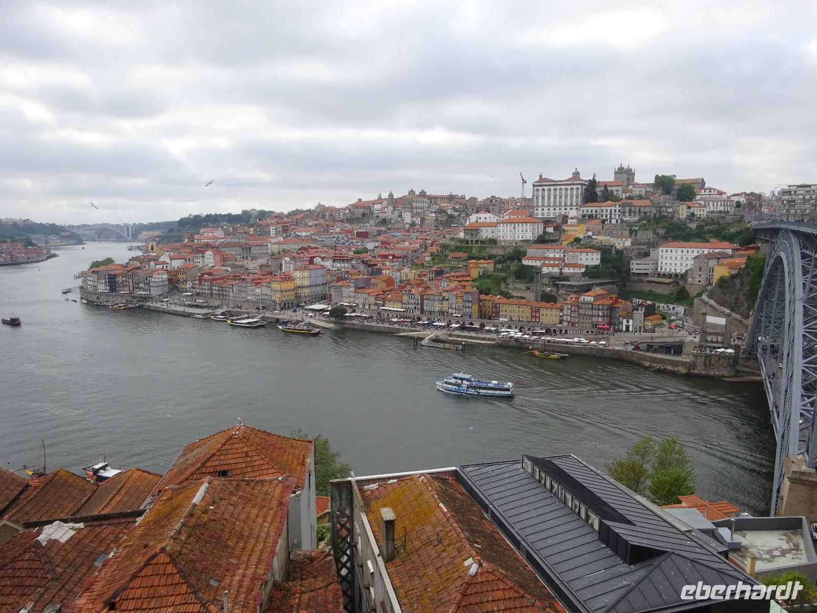 Die Dresdner Reisegruppe traf sich bereits sehr früh am Morgen am Flughafen und flogen nach Frankfurt. Dort trafen wir einen weiteren Teil der Reisegruppe und schon ging es weiter nach Portugal. Der Flug verlief angenehm. In Porto erwartetet uns bereits unsere Reiseleiterin Isabel. Noch bevor wir zum Hotel fuhren, erlebten wir eine informative Panoramafahrt durch die moderne Stadt bis zur Mündung des Flusses Douro im Atlantik. Zwar war der Himmel bedeckt, die Temperaturen waren dennoch angenehm. Nach einer Fahrt entlang des Nordufers in Richtung Stadtzentrum legten wir im historischen Stadtviertel Ribeira direkt am Douro unsere nächste Pause ein. Wir schlenderten mit Isabell durch die engen Gassen und bekamen einen fantastischen ersten Blick auf die berühmte Bogenbrücke Ponte Dom Luis I aus dem . Nach etwas Freizeit überquerten wir die Metallbrücke auf der unteren Etage und fuhren zu unserem Hotel Black Tulip im Stadtteil Vila Nova de Gaia. Jetzt wollten wir uns von der Anreise erholen, so trafen uns erst zum Abendessen wieder. In dem typisch portugiesischen Restaurant, ganz in der Nähe vom Hotel, konnten wir die ersten Leckereien probieren. Wir ließen gemeinsam den Abend ausklingen und zu später Stunde wurden wurde noch die Gäste aus Leipzig am Flughafen abgeholt.