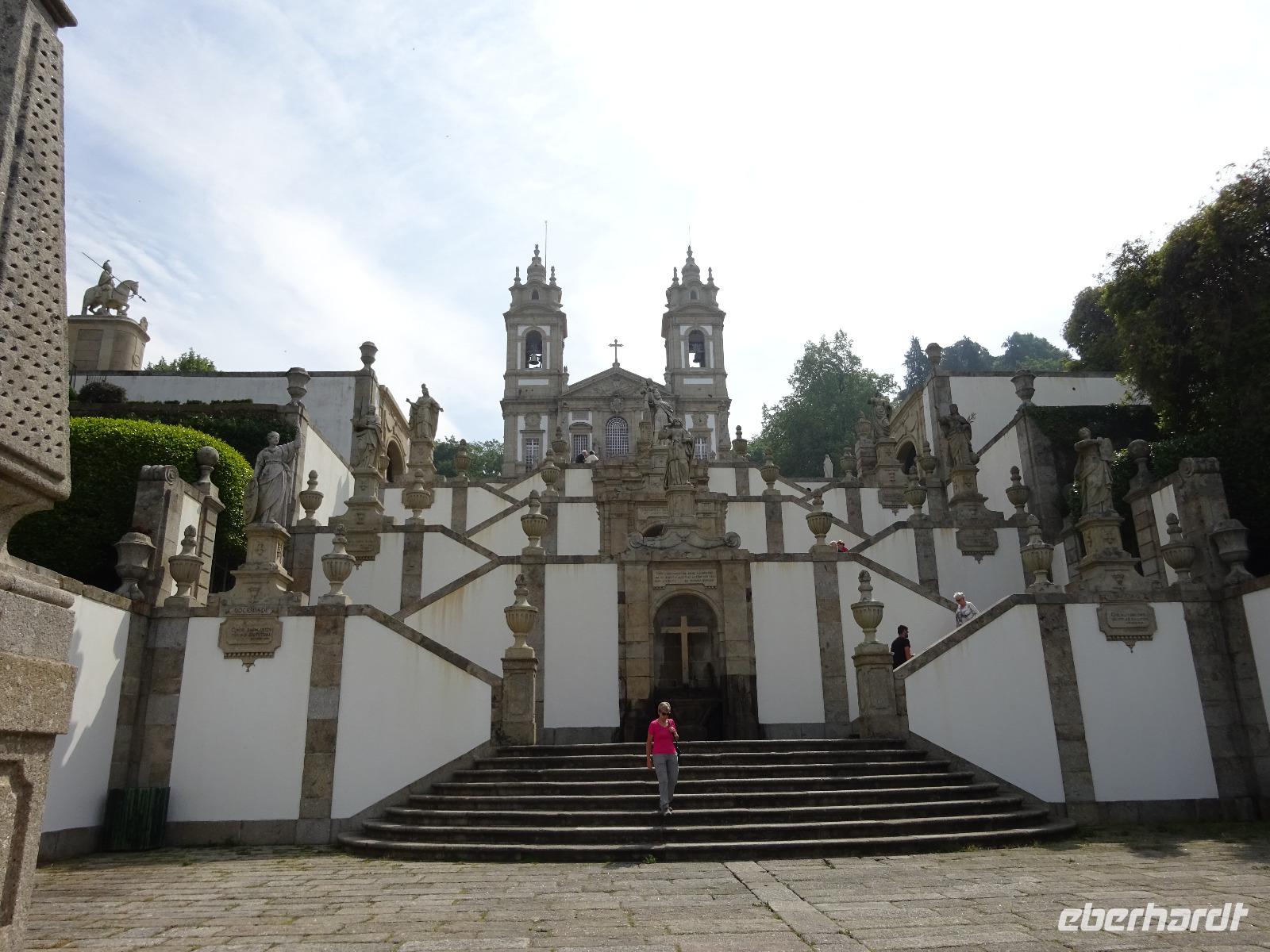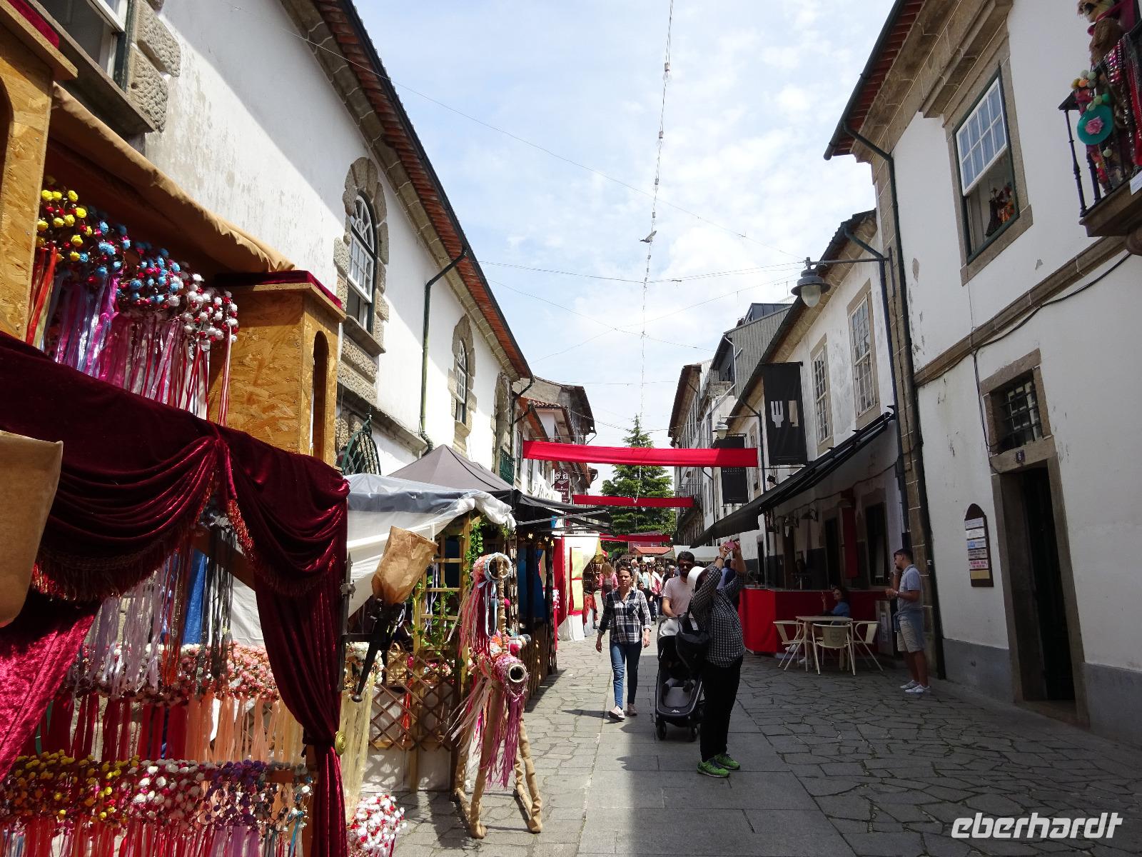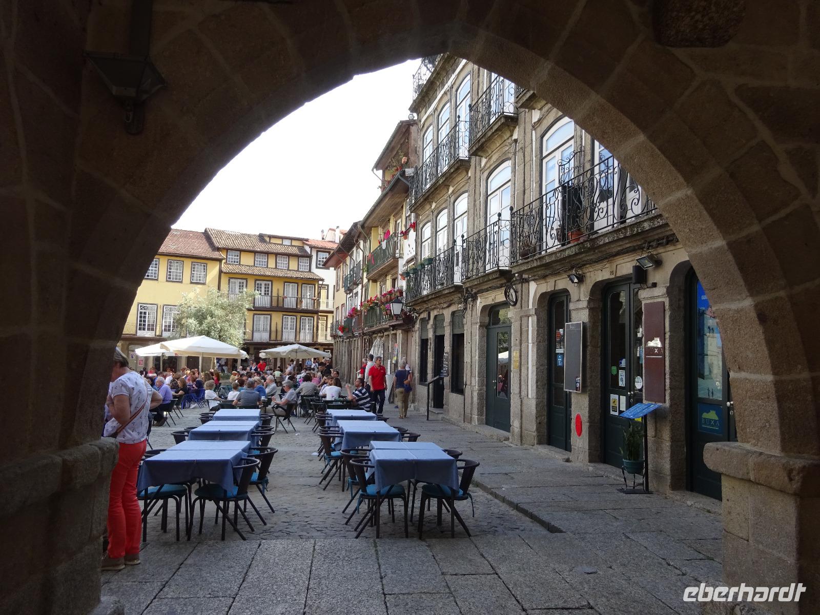Heute fuhren wir für unseren Ausflug nördlich von Porto. Unser erster Besuch war der Wallfahrtsort Bom Jesus. Zur Kirche konnte man über eine reich verzierte Treppe den Berg hinauf laufen oder die weltälteste Wasserballastbahn nutzen. Wir bevorzugten die 1882 errichtete Standseilbahn. Oben angekommen besichtigten wir die neoklassizistische Wallfahrtskirche und konnten in der anschließenden Freizeit die Treppe mit den zahlreichen Statuen, Fontänen und kleinen Kapellen erkunden. Wer es bequemer wollte, setzte sich in das Café und genoss die wundervolle Aussicht auf die angrenzende Stadt Braga oder erkundete die hübschen Parkanlagen. Anschließend fuhren wir direkt in eine der ältesten Städte Portugals, nach Braga. Dort fand gerade ein Mittelalterfest statt, daher begegneten uns immer wieder Ritter und Mägde. Isabel führte uns durch das Zentrum und gewährte uns wieder ausreichend Zeit, die Stadt mit den aufgebauten Ständen in den kleinen Gassen und Straßen selbst zu erkunden. Nach unserer Mittagspause fuhren wir zur Wiege der Nation Portugals. So wird die Guimares auch gern betitelt, schließlich ernannte hier Heinrich von Burgund die Grafschaft Portucale einst zum Königreich und auch hier wurde der erste portugiesische König Alfonso Henriques im 12. Jahrhundert geboren. Vom antiken Schloss und der Festung, welche die Stadt vor Attacken der Mauren und Normannen beschützen sollte, führte unser Spaziergang in das kleine charmante Zentrum mit den gotischen Bauten und traditionellen Häusern. Die Restaurants und Cafés hatten ihre Stühle im Außenbereich aufgebaut und luden zum Pausieren ein. Wieder erkundeten wir Guimares nach der Stadtführung auf eigene Faust. Nachdem wir an dem heutigen Tag eine Menge gesehen haben, waren wir am Ende des Tages doch ein wenig geschafft. Das Abendessen konnte heute jeder individuell gestalten. Einige gingen in das angrenzende Einkaufszentrum El Corte Inglés essen oder in das Restaurant vom ersten Abend.