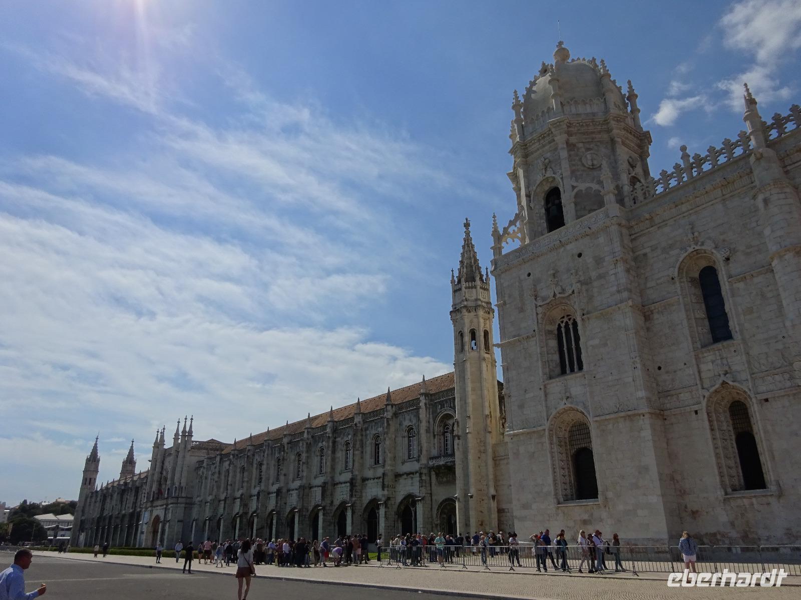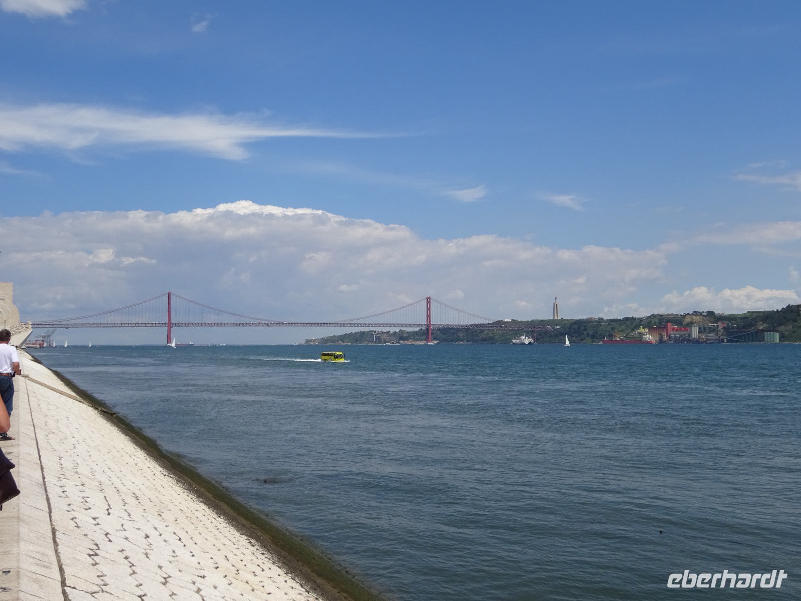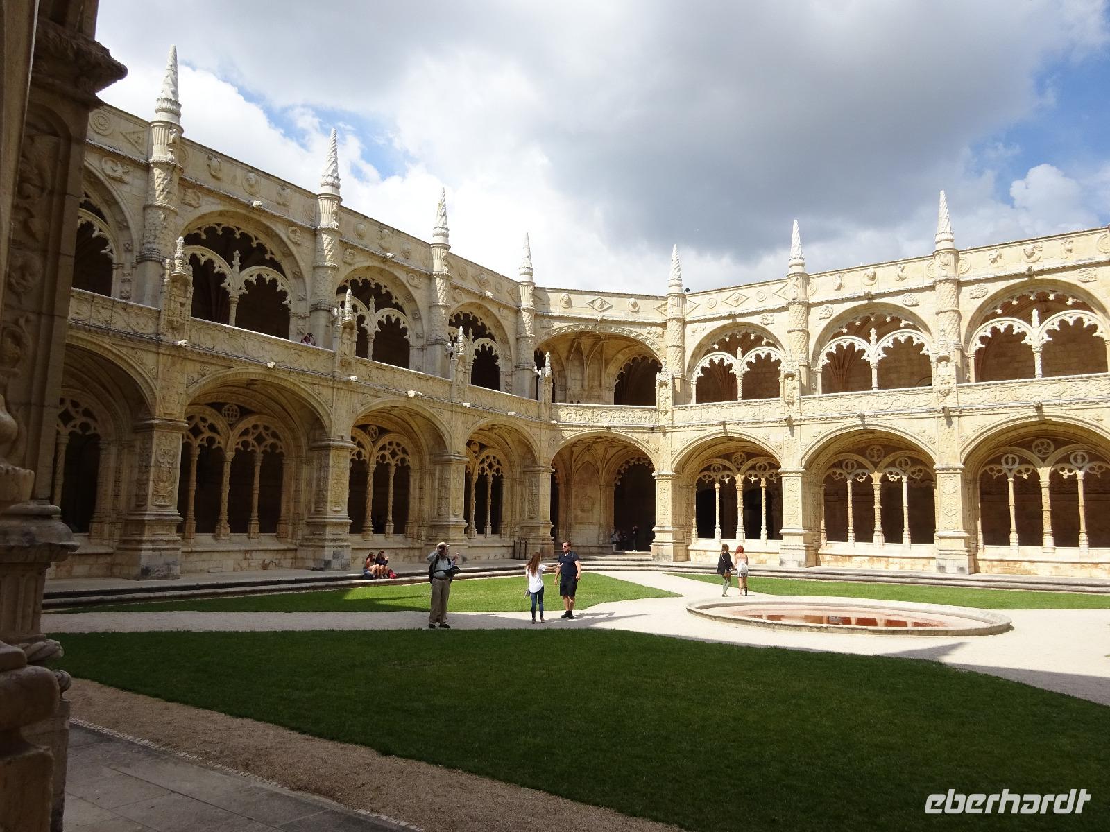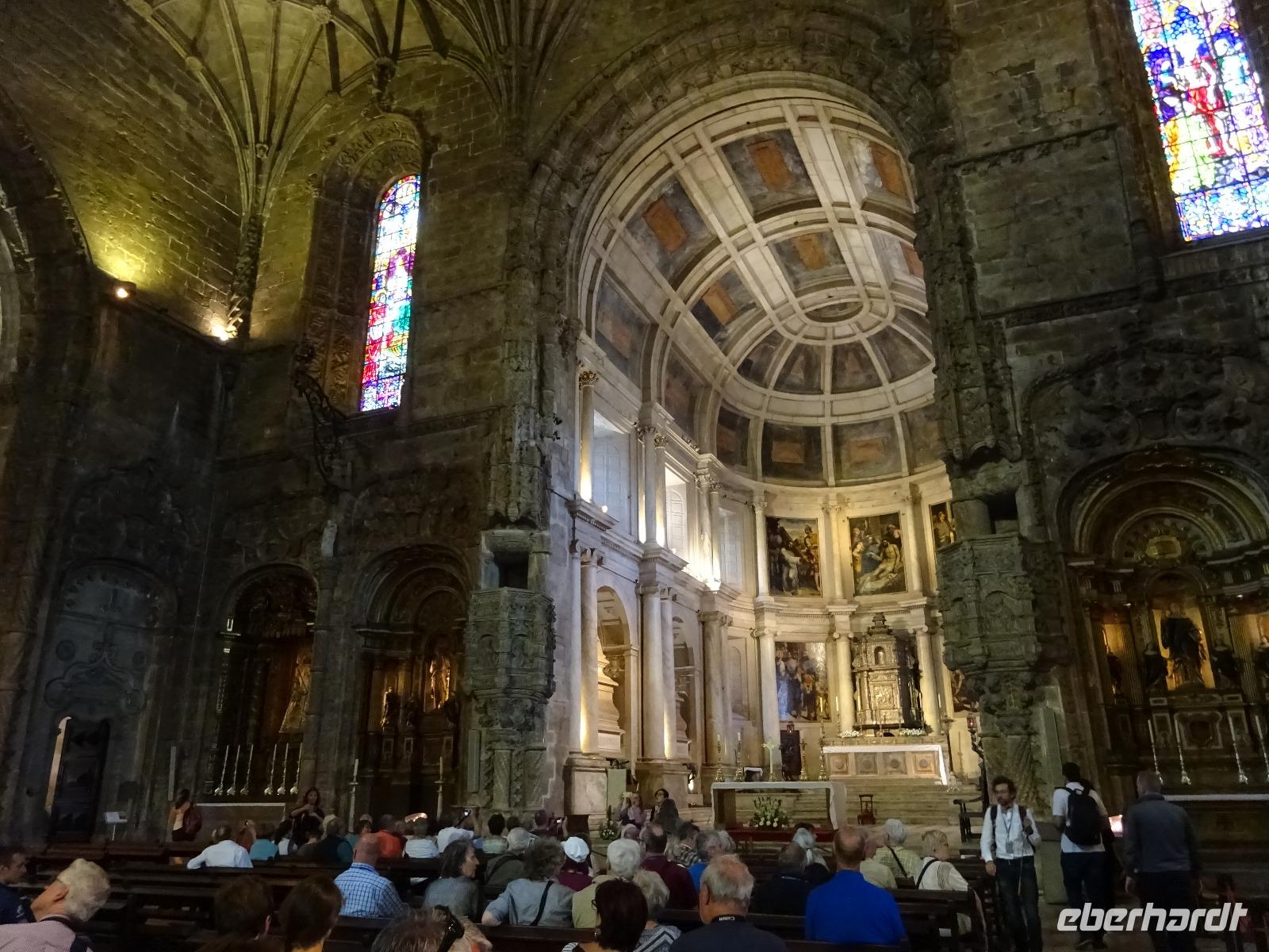 Heute erwartete uns sehr viel besseres Wetter, als den Tag zuvor. Die Sonne ließ sich wieder blicken und wir starteten gut gelaunt unsere Stadtrundfahrt mit Isabel. Wir fuhren vorbei am monumentalen Denkmal des Marques de Pombal, welche mit einem Löwen Richtung Tejo-Fluss blickte. Vorbei am Rossio-Platz und dem Fahrstuhl Elevador de Santa Justa passierten wir den Comercio-Platz in Richtung Alfama. Ab dort ging unsere Besichtigung per pedes weiter. Wir besichtigten die Catedral Se Patriarcal, die Hauptkirche Lissabons, an der vor dem Bau eine Moschee stand. Isabel erklärte uns die verschiedenen architektonischen Baustile und die gotischen Grabstätten aus dem 14. Jahrhundert. Während wir weiter spazierten, fuhr die historische Straßenbahn Nr. 28 an uns vorbei und wir entdeckten alte Ausgrabungen eines Theaters, welches für den Schutz nicht weiter ausgegraben wird. Wir erreichten den Park des Castels Sao Jorge hoch oben in der Altstadt. Uns bot sich ein fantastischer Ausblick auf die Stadt, den Fluss Tejo, die große Jesusstatue und die beeindruckende Brücke. Isabel gab uns ein wenig Zeit, den Park und die Aussicht zu genießen. Anschließend schlenderten wir durch die verwinkelten und urigen Gassen der Alfama. Überall sah man, dass die Vorbereitungen des bevorstehenden Johannesfestes in vollem Gange waren. Die Gassen waren bunt geschmückt und kleine Stände sowie sehr rustikal aufgebaute Podeste zum Verweilen wurden gerade von den Einheimischen angefertigt. Wieder im Bus fuhren wir zum Rossio-Platz und konnten nun in der Mittagspause nach Lust und Laune in der Stadt schlendern. Anschließend fuhren wir Richtung Hieronimuskloster und passierten dabei die Brücke des 25. April, die baugleich der Golden Gate Brücke aussah. Unser Ziel war der Torre de Belem. Der Wachturm am Tejo gilt als das Wahrzeichen der Stadt und bewachte früher die Einfahrt der Karavellen. Ein Flugzeug, welches an die Überquerung des Atlantiks 1922 erinnerte, konnte man ebenfalls bestaunen. Nun führte uns eine kurze Busfahrt zum imposanten Denkmal der Entdecker, welches 1960 zum 500. Todestag von Heinrich dem Seefahrer errichtet wurde. Das Bodenmosaik zu Füßen des Denkmals erinnerte an die großen Seefahrerzeiten. Als nächster Programmpunkt stand eine Besichtigung des Hieronimusklosters auf dem Plan. Isabel führte uns durch die Kirche mit gigantischen Säulen, zeigte uns das Grabmal von Heinrich dem Seefahrer und erklärte uns den Kreuzgang. Um uns ein wenig zu stärken, kosteten wir wieder außerhalb des Klosters, die berühmten Pasteis de Belem. Die Fábrica dos Pastéis de Belém stellt bereits seit 1837 die kleinen Puddingteilchen her und das Rezept wurde bis heute geheim gehalten. Gemeinsam fuhren wir wieder zurück zum Hotel und jeder konnte nach eigener Fasson den Abend gestalten. Einige aßen gemeinsam in der Innenstadt und schlenderten anschließend durch das beleuchtete Lissabon.