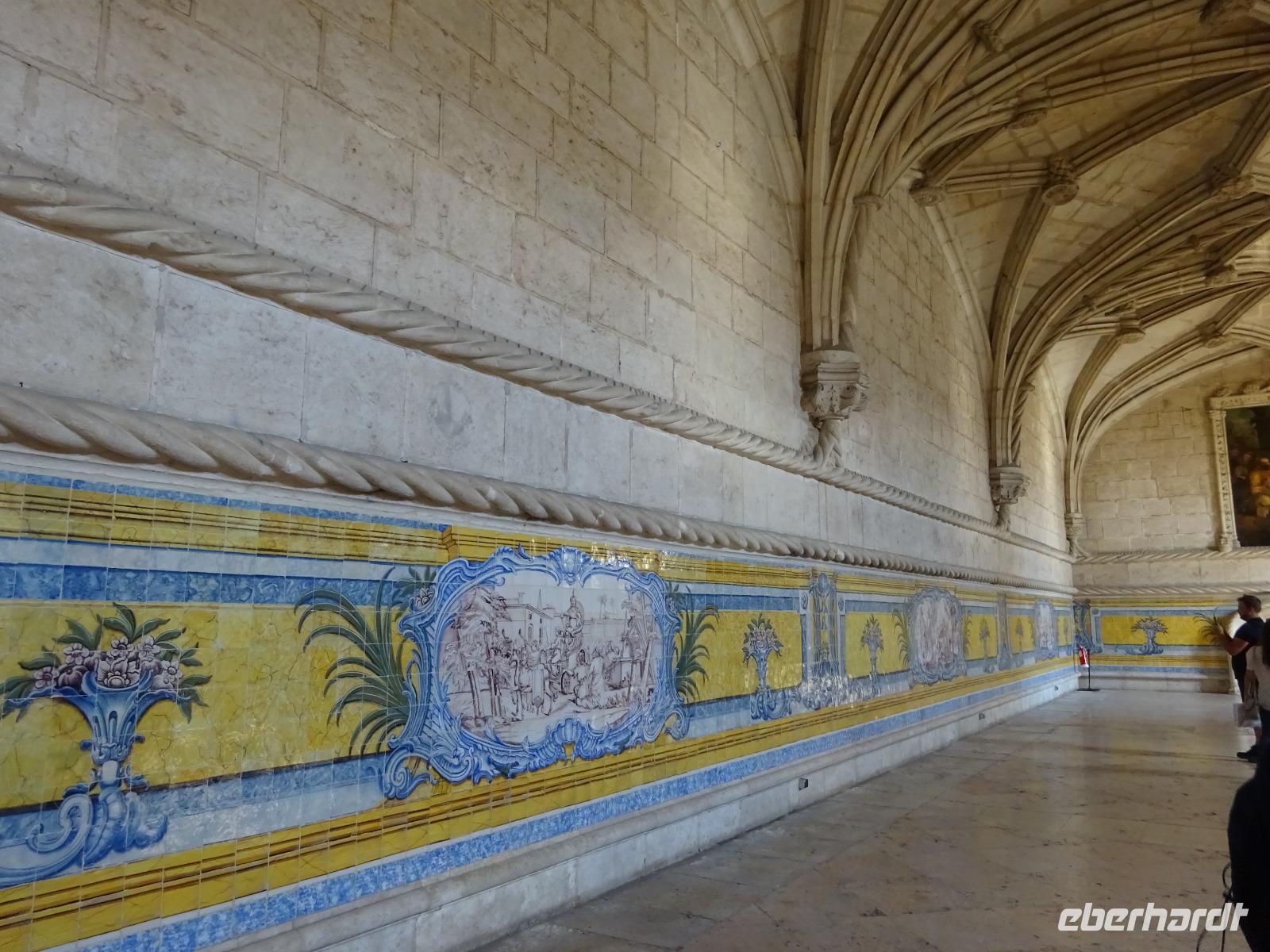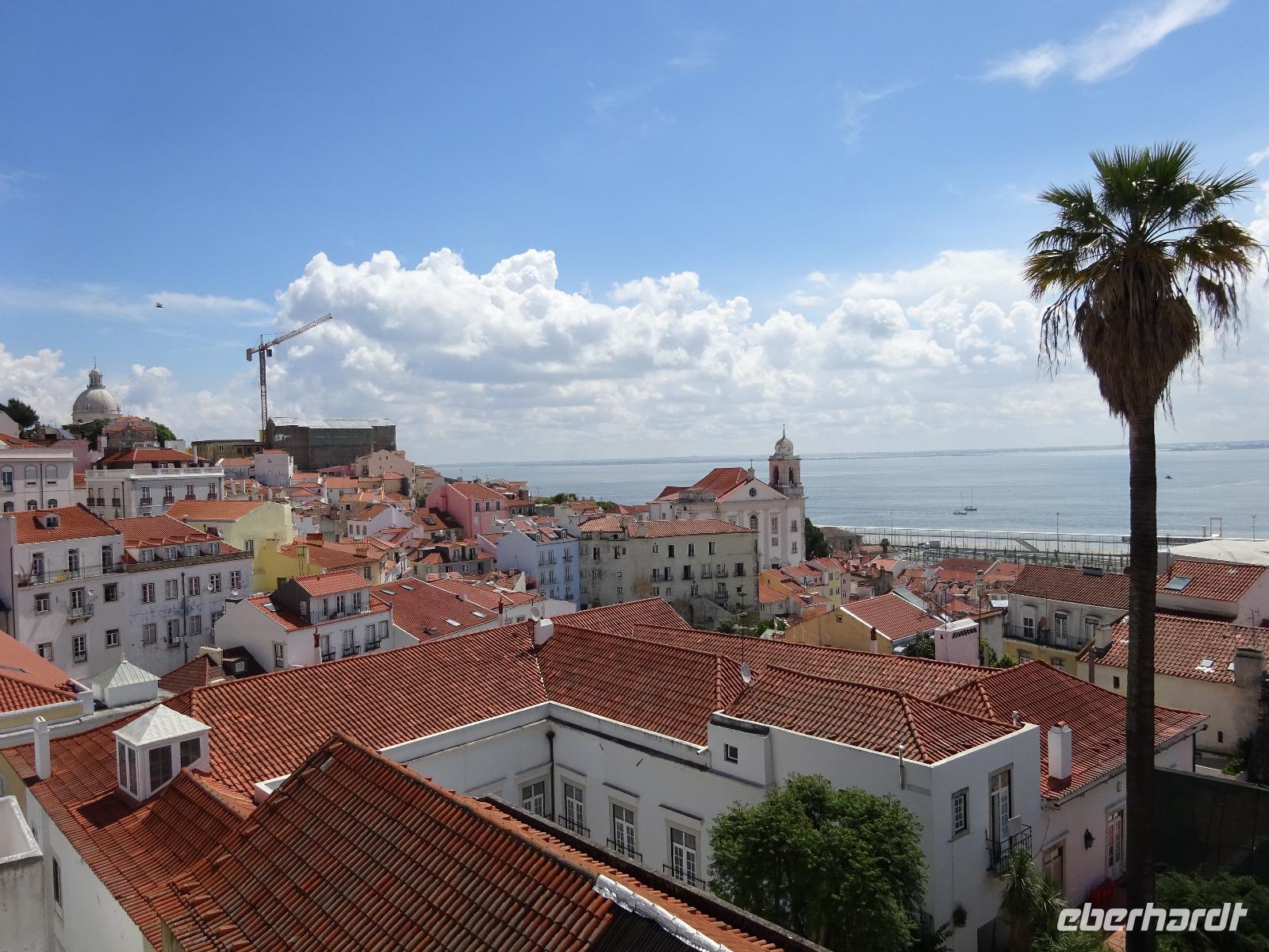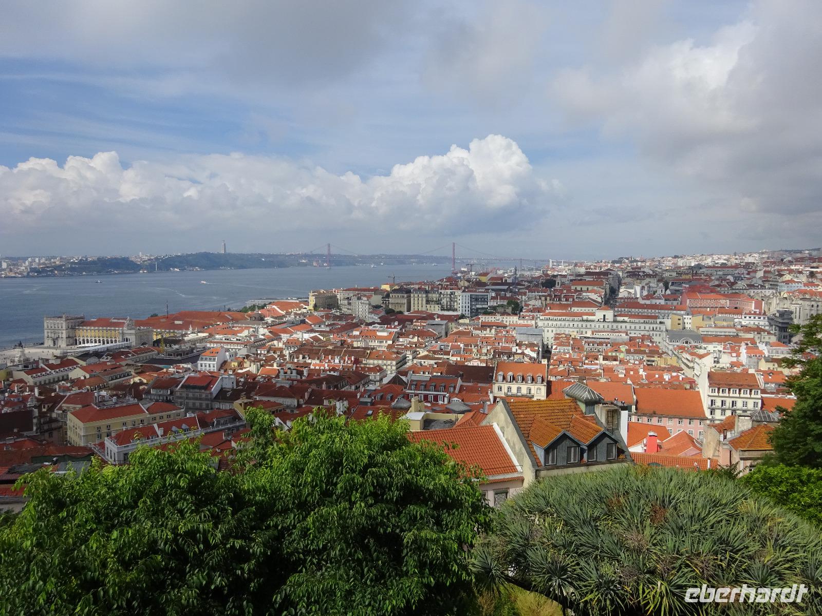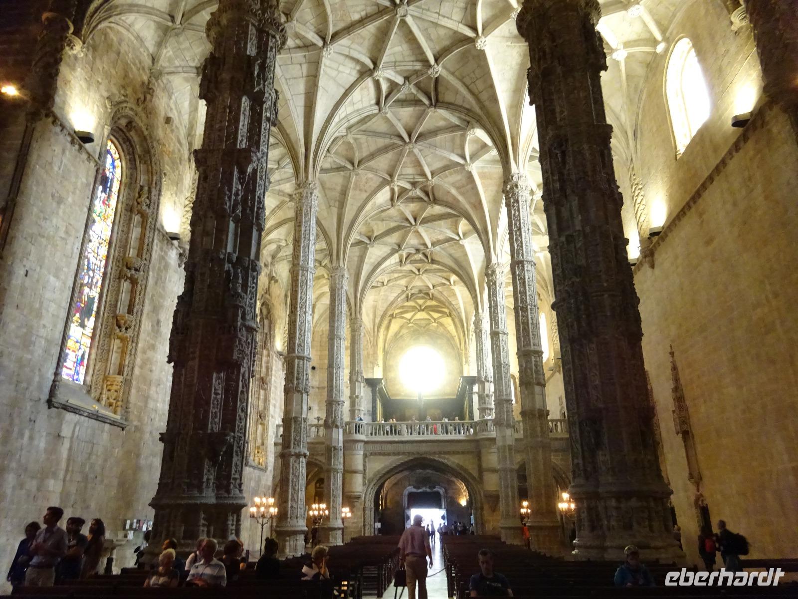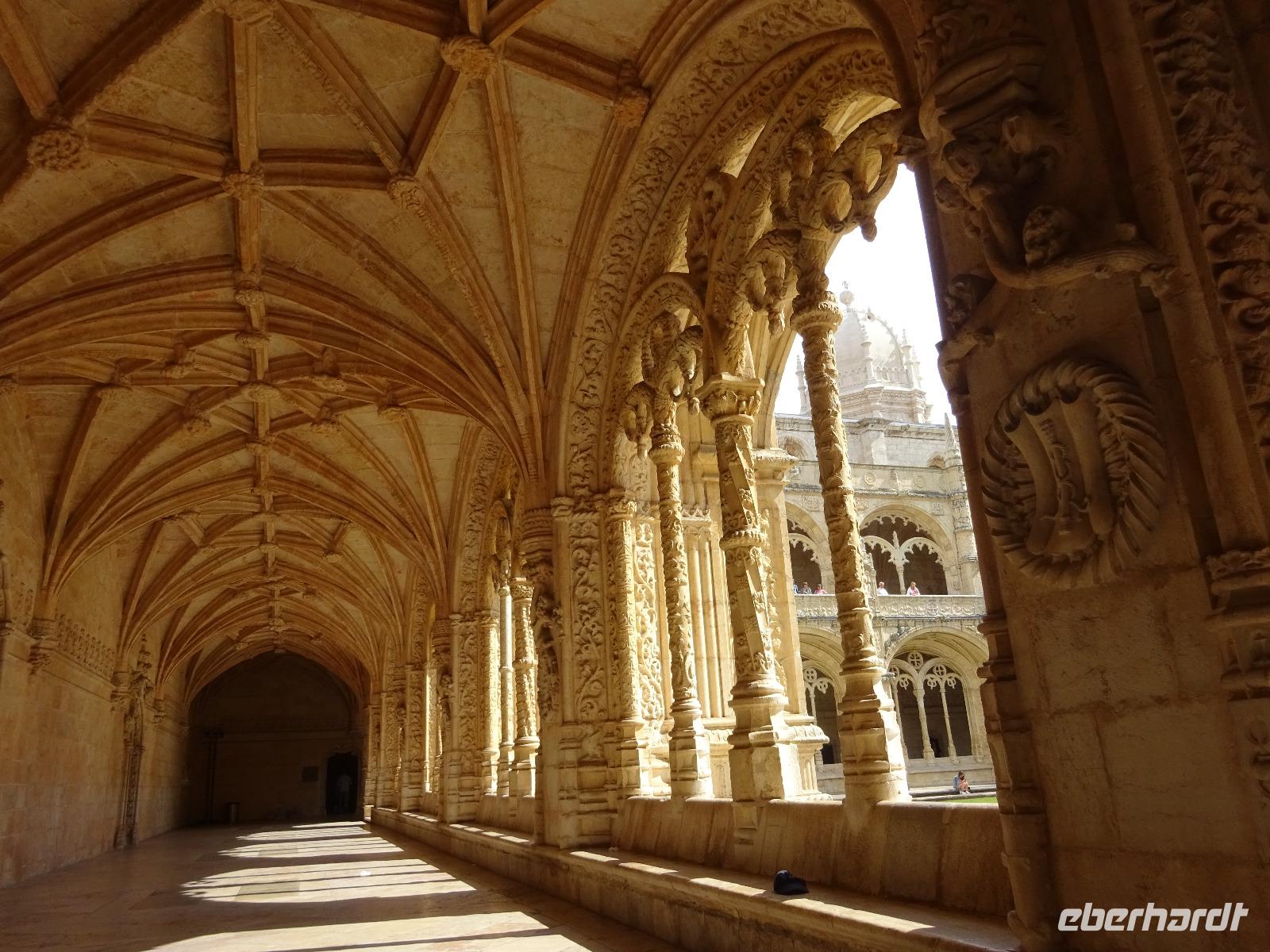 Heute erwartete uns sehr viel besseres Wetter, als den Tag zuvor. Die Sonne ließ sich wieder blicken und wir starteten gut gelaunt unsere Stadtrundfahrt mit Isabel. Wir fuhren vorbei am monumentalen Denkmal des Marques de Pombal, welche mit einem Löwen Richtung Tejo-Fluss blickte. Vorbei am Rossio-Platz und dem Fahrstuhl Elevador de Santa Justa passierten wir den Comercio-Platz in Richtung Alfama. Ab dort ging unsere Besichtigung per pedes weiter. Wir besichtigten die Catedral Se Patriarcal, die Hauptkirche Lissabons, an der vor dem Bau eine Moschee stand. Isabel erklärte uns die verschiedenen architektonischen Baustile und die gotischen Grabstätten aus dem 14. Jahrhundert. Während wir weiter spazierten, fuhr die historische Straßenbahn Nr. 28 an uns vorbei und wir entdeckten alte Ausgrabungen eines Theaters, welches für den Schutz nicht weiter ausgegraben wird. Wir erreichten den Park des Castels Sao Jorge hoch oben in der Altstadt. Uns bot sich ein fantastischer Ausblick auf die Stadt, den Fluss Tejo, die große Jesusstatue und die beeindruckende Brücke. Isabel gab uns ein wenig Zeit, den Park und die Aussicht zu genießen. Anschließend schlenderten wir durch die verwinkelten und urigen Gassen der Alfama. Überall sah man, dass die Vorbereitungen des bevorstehenden Johannesfestes in vollem Gange waren. Die Gassen waren bunt geschmückt und kleine Stände sowie sehr rustikal aufgebaute Podeste zum Verweilen wurden gerade von den Einheimischen angefertigt. Wieder im Bus fuhren wir zum Rossio-Platz und konnten nun in der Mittagspause nach Lust und Laune in der Stadt schlendern. Anschließend fuhren wir Richtung Hieronimuskloster und passierten dabei die Brücke des 25. April, die baugleich der Golden Gate Brücke aussah. Unser Ziel war der Torre de Belem. Der Wachturm am Tejo gilt als das Wahrzeichen der Stadt und bewachte früher die Einfahrt der Karavellen. Ein Flugzeug, welches an die Überquerung des Atlantiks 1922 erinnerte, konnte man ebenfalls bestaunen. Nun führte uns eine kurze Busfahrt zum imposanten Denkmal der Entdecker, welches 1960 zum 500. Todestag von Heinrich dem Seefahrer errichtet wurde. Das Bodenmosaik zu Füßen des Denkmals erinnerte an die großen Seefahrerzeiten. Als nächster Programmpunkt stand eine Besichtigung des Hieronimusklosters auf dem Plan. Isabel führte uns durch die Kirche mit gigantischen Säulen, zeigte uns das Grabmal von Heinrich dem Seefahrer und erklärte uns den Kreuzgang. Um uns ein wenig zu stärken, kosteten wir wieder außerhalb des Klosters, die berühmten Pasteis de Belem. Die Fábrica dos Pastéis de Belém stellt bereits seit 1837 die kleinen Puddingteilchen her und das Rezept wurde bis heute geheim gehalten. Gemeinsam fuhren wir wieder zurück zum Hotel und jeder konnte nach eigener Fasson den Abend gestalten. Einige aßen gemeinsam in der Innenstadt und schlenderten anschließend durch das beleuchtete Lissabon.