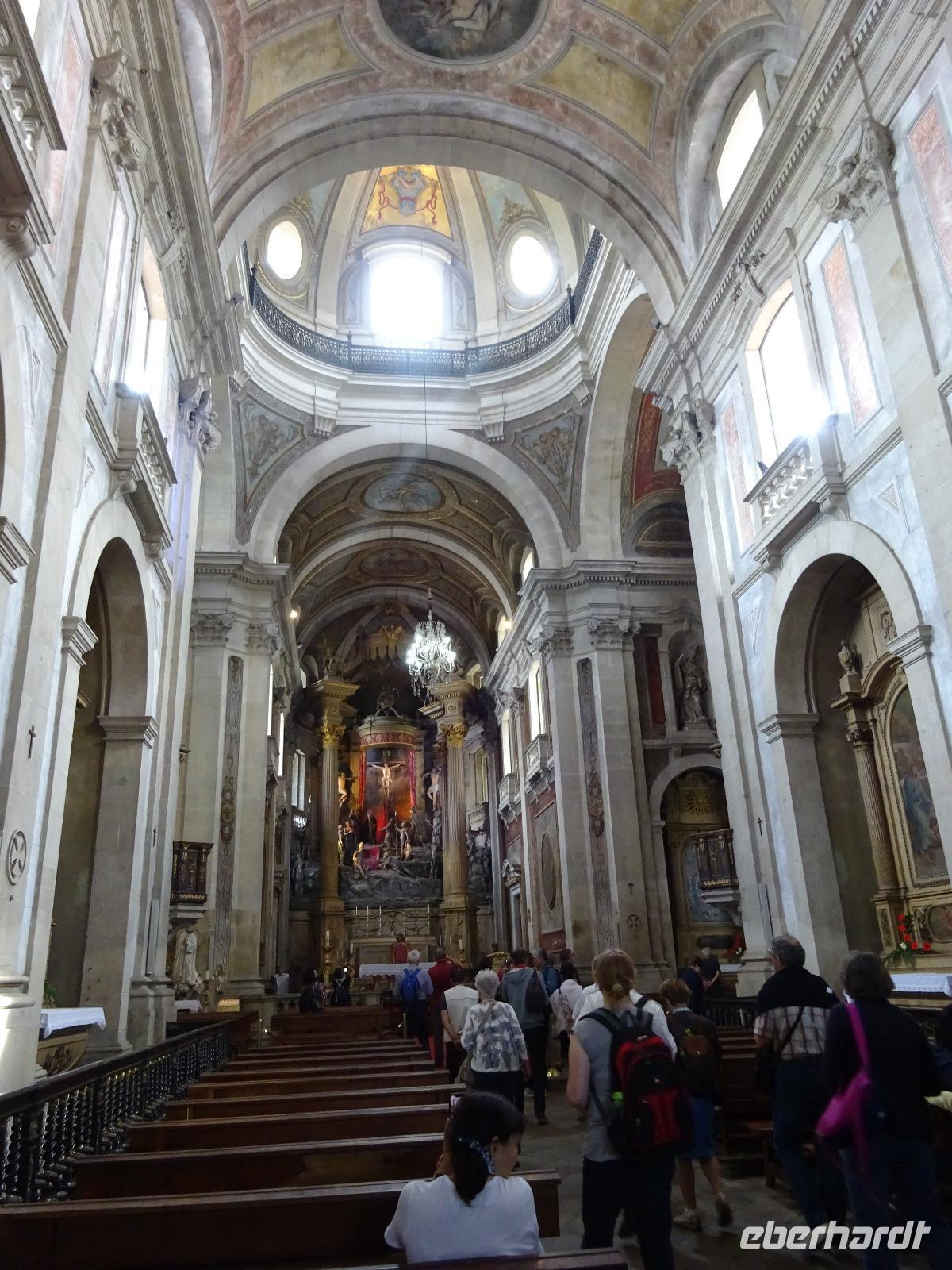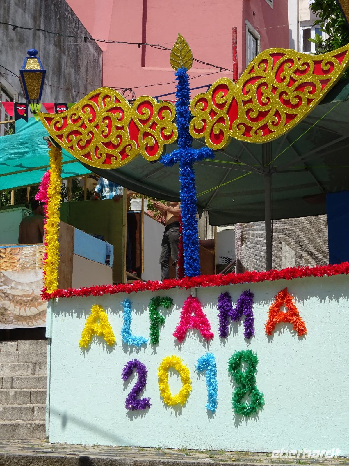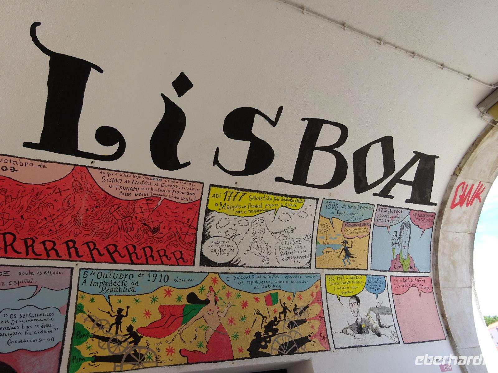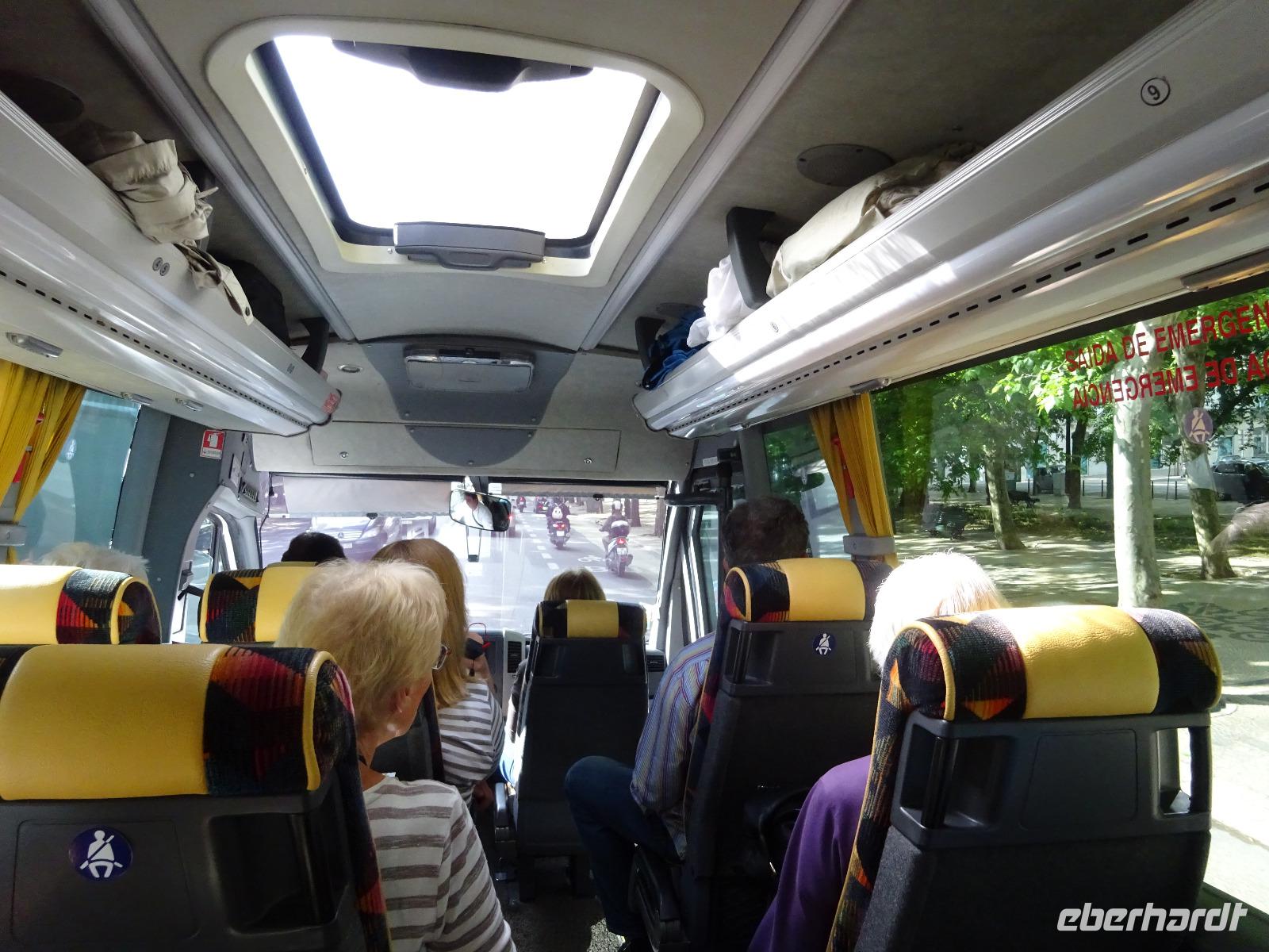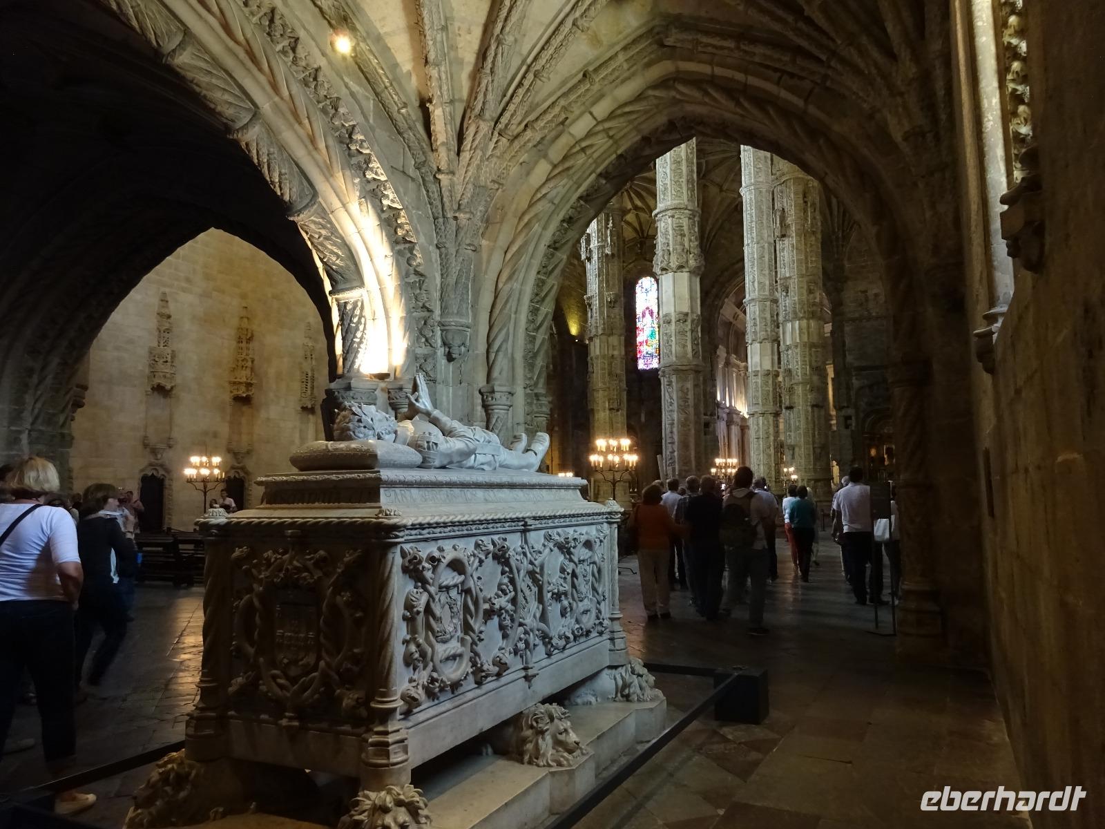 Heute erwartete uns sehr viel besseres Wetter, als den Tag zuvor. Die Sonne ließ sich wieder blicken und wir starteten gut gelaunt unsere Stadtrundfahrt mit Isabel. Wir fuhren vorbei am monumentalen Denkmal des Marques de Pombal, welche mit einem Löwen Richtung Tejo-Fluss blickte. Vorbei am Rossio-Platz und dem Fahrstuhl Elevador de Santa Justa passierten wir den Comercio-Platz in Richtung Alfama. Ab dort ging unsere Besichtigung per pedes weiter. Wir besichtigten die Catedral Se Patriarcal, die Hauptkirche Lissabons, an der vor dem Bau eine Moschee stand. Isabel erklärte uns die verschiedenen architektonischen Baustile und die gotischen Grabstätten aus dem 14. Jahrhundert. Während wir weiter spazierten, fuhr die historische Straßenbahn Nr. 28 an uns vorbei und wir entdeckten alte Ausgrabungen eines Theaters, welches für den Schutz nicht weiter ausgegraben wird. Wir erreichten den Park des Castels Sao Jorge hoch oben in der Altstadt. Uns bot sich ein fantastischer Ausblick auf die Stadt, den Fluss Tejo, die große Jesusstatue und die beeindruckende Brücke. Isabel gab uns ein wenig Zeit, den Park und die Aussicht zu genießen. Anschließend schlenderten wir durch die verwinkelten und urigen Gassen der Alfama. Überall sah man, dass die Vorbereitungen des bevorstehenden Johannesfestes in vollem Gange waren. Die Gassen waren bunt geschmückt und kleine Stände sowie sehr rustikal aufgebaute Podeste zum Verweilen wurden gerade von den Einheimischen angefertigt. Wieder im Bus fuhren wir zum Rossio-Platz und konnten nun in der Mittagspause nach Lust und Laune in der Stadt schlendern. Anschließend fuhren wir Richtung Hieronimuskloster und passierten dabei die Brücke des 25. April, die baugleich der Golden Gate Brücke aussah. Unser Ziel war der Torre de Belem. Der Wachturm am Tejo gilt als das Wahrzeichen der Stadt und bewachte früher die Einfahrt der Karavellen. Ein Flugzeug, welches an die Überquerung des Atlantiks 1922 erinnerte, konnte man ebenfalls bestaunen. Nun führte uns eine kurze Busfahrt zum imposanten Denkmal der Entdecker, welches 1960 zum 500. Todestag von Heinrich dem Seefahrer errichtet wurde. Das Bodenmosaik zu Füßen des Denkmals erinnerte an die großen Seefahrerzeiten. Als nächster Programmpunkt stand eine Besichtigung des Hieronimusklosters auf dem Plan. Isabel führte uns durch die Kirche mit gigantischen Säulen, zeigte uns das Grabmal von Heinrich dem Seefahrer und erklärte uns den Kreuzgang. Um uns ein wenig zu stärken, kosteten wir wieder außerhalb des Klosters, die berühmten Pasteis de Belem. Die Fábrica dos Pastéis de Belém stellt bereits seit 1837 die kleinen Puddingteilchen her und das Rezept wurde bis heute geheim gehalten. Gemeinsam fuhren wir wieder zurück zum Hotel und jeder konnte nach eigener Fasson den Abend gestalten. Einige aßen gemeinsam in der Innenstadt und schlenderten anschließend durch das beleuchtete Lissabon.
