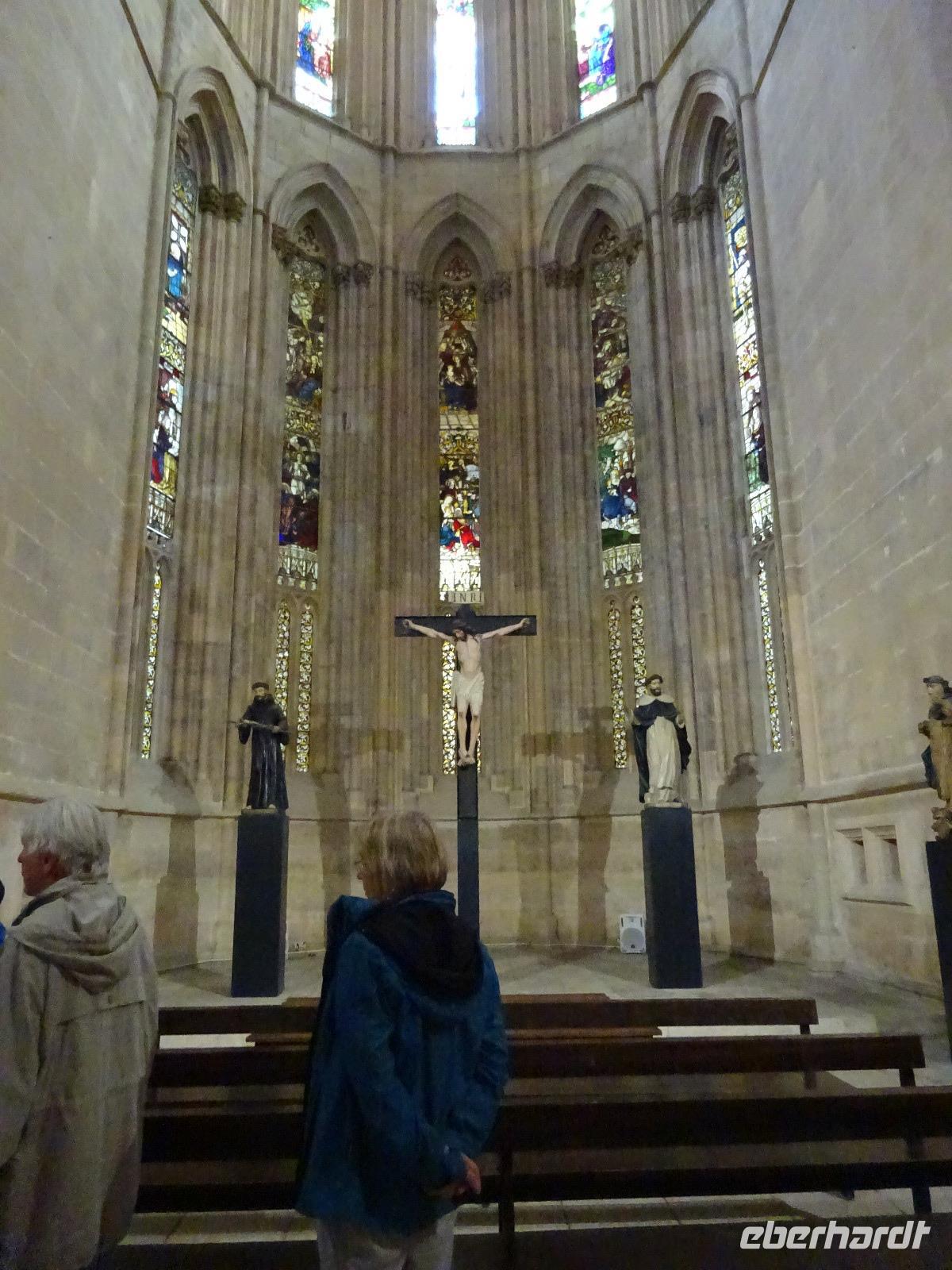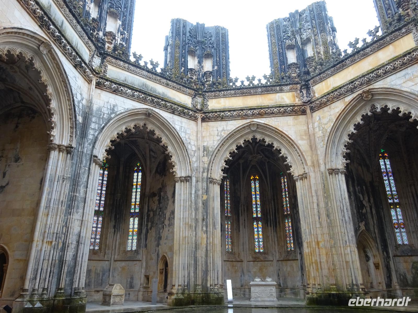 Heute verließen wir das wundervolle Porto und auch zwei Gäste unsere Reisegruppe. Unsere Busfahrt führte uns an den Atlantik in das kleine Städtchen Aveiro. Das portugiesische Venedig ist bekannt für die zahlreichen Kanäle auf dem die Barcos Moliceiros (Seetang-Boote) umherfahren. Und mit genau solch einem farbenfrohen Barco erkundeten auch wir die Kanäle des Haffs. Während der Bootsfahrt kosteten wir die für Aveiro typische Süßspeise Ovos Moles (Weiche Eier), die in den Bäckereien in den unterschiedlichsten Formen zu kaufen gab. Wir hatten wirklich Glück mit dem Wetter, denn als unsere Fahrt zu Ende war, fing es an zu regnen. Leider sollte es auch nicht gleich wieder aufhören. Unsere Reise ging weiter bis zum Kloster Batalha, welches wir zusammen mit Isabel ausgiebig besichtigten. Dieses beeindruckende Kloster lies König D. Jao I. als Dank für den errungenen Sieg über das zahlenmäßig überlegene kastillische Herr erbauen. Er versprach der Jungfrau Maria, ein Kloster zu errichten, falls Portugal die Schlacht von Aljubarrota 1385 gewann. Beeindruckend war auch die Grabkapelle mit dem Doppelgrab in der Mitte. Es regnete leider immer noch in Strömen, sodass wir Mühe hatten, halbwegs trocken zu bleiben, als wir wieder zum Bus eilten. Im ehemaligen Fischerdorf Nazare angekommen, führte uns Isabel in ein typisches Fischrestaurant, in welchem wir die fangfrischen Spezialitäten nach Lust und Laune probieren konnten. Wir trotzen dem schlechten Wetter und gingen mit Regenschirm etwas am Strand und der Promenade spazieren. Als wir in der eigentlich märchenhaften Stadt Obidos ankamen, sollte uns auch hier der Wettergott einen romantischen Spaziergang durch die kleinen Gässchen verwehren. Trotzdem konnte man die historische Schönheit des Ortes erkennen. Nicht umsonst hat König Dinis dieses liebliche Städtchen seiner Geliebten als Geschenk bereitet. Am Abend kamen wir schließlich in Lissabon im Hotel an und bezogen ein wenig geschafft unsere Zimmer. Ein kleiner Teil der Single-Reisegruppe ging noch in den angrenzenden Lokalen essen und lies den Tag ausklingen.