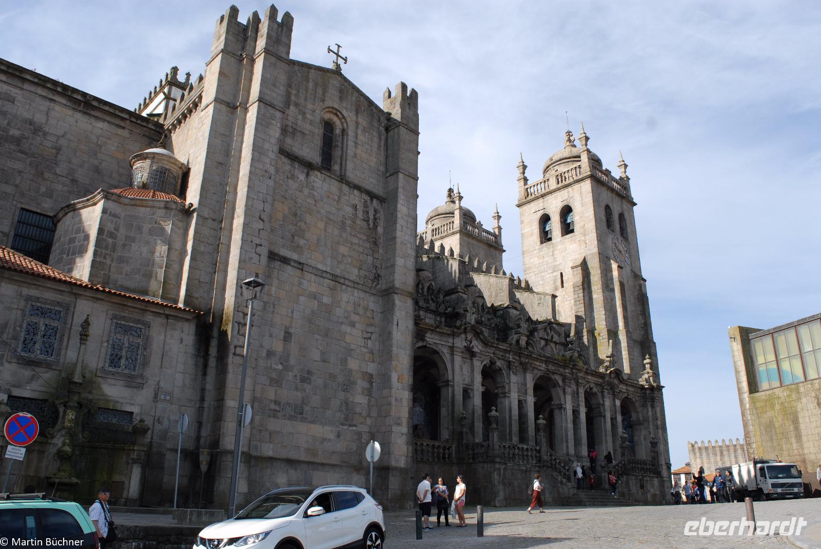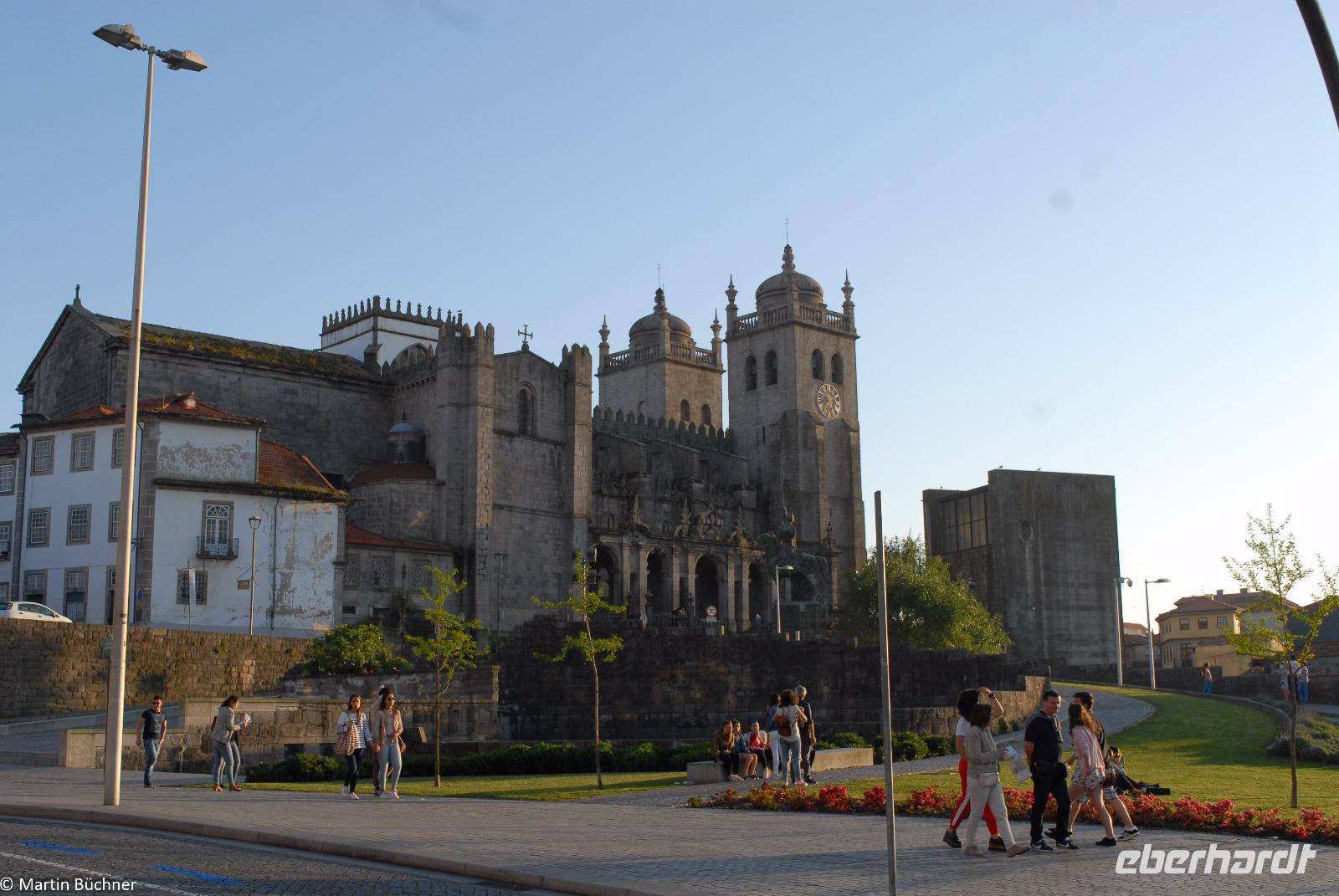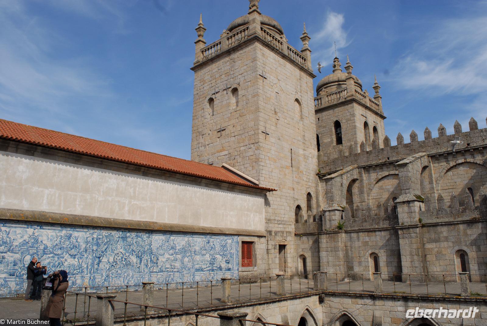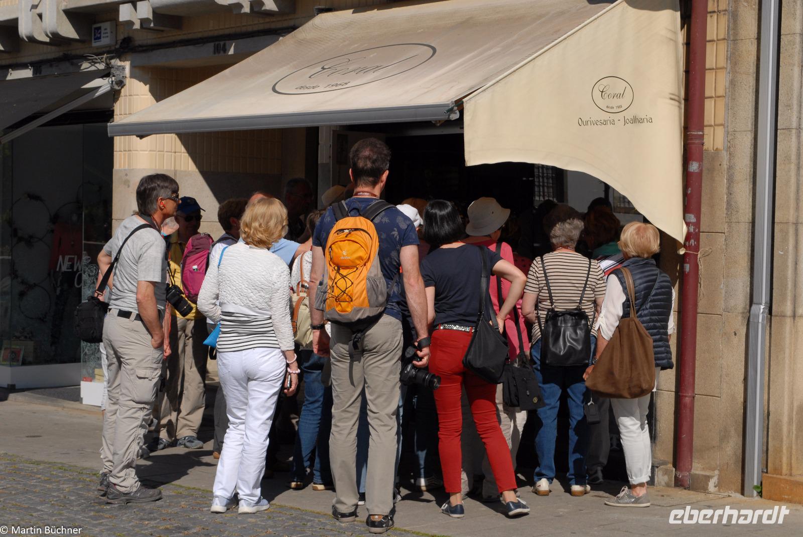 Am Morgen fahren wir mit dem Bus hinüber nach Porto. Nach einer kurzen Einführungsstadtrundfahrt vorbei am Rathausplatz und dem weithin sichtbaren Kleriker-Turm genannt „Torre dos Clérigos" setzen wir den Rundgang zu Fuß fort. Erste Station ist die Kathedrale „Sé do Porto", ein wehrhaftes Gotteshaus aus der Reconquista (Rückeroberung der Iberischen Halbinsel durch christliche Truppen von den Mauren). Dieser Eindruck setzt sich innen fort. Es schließt sich ein sehenswerter Kreuzgang an. Vom höchsten Punkt wandeln wir durch die pittoresken Gassen immer weiter nach unten bis wir am Ufer des Douro Flusses stehen.