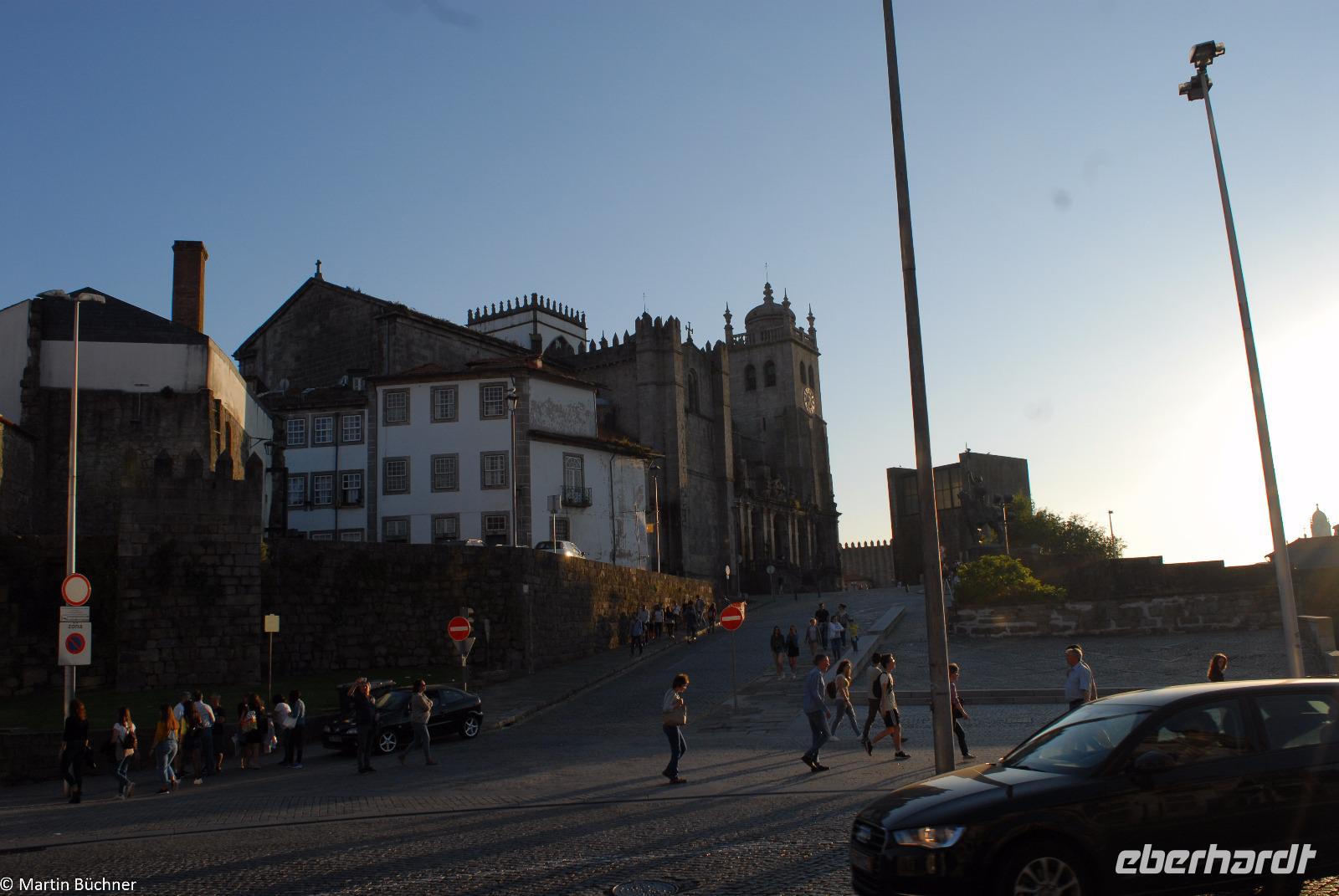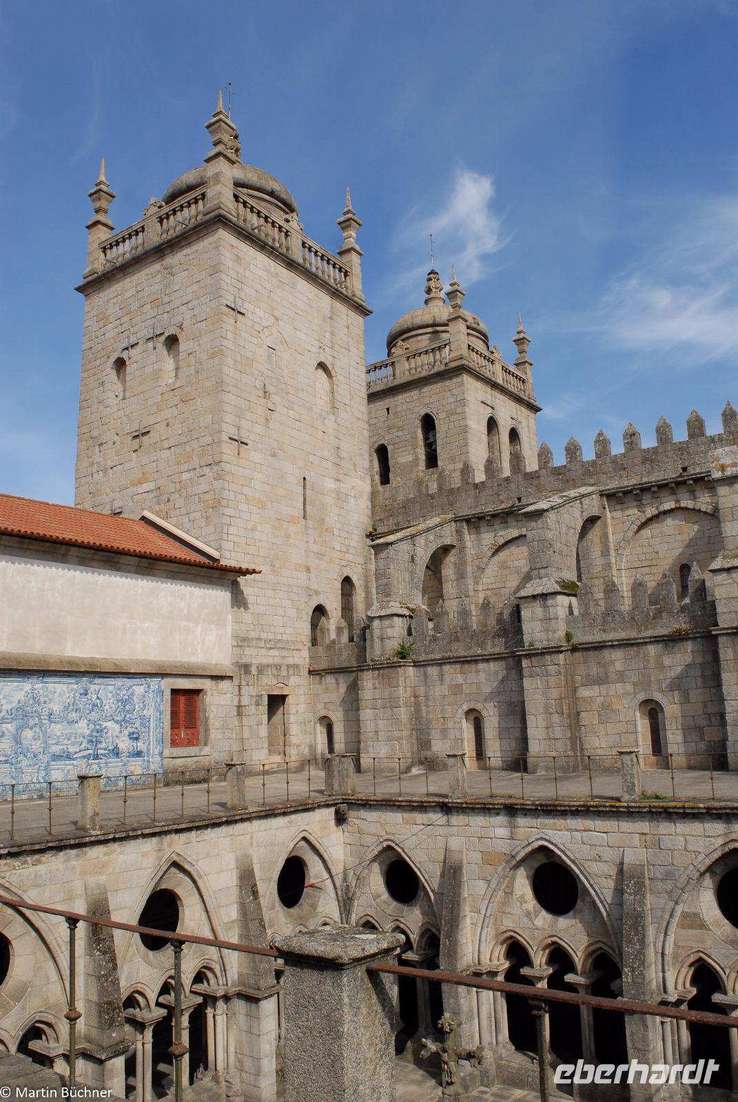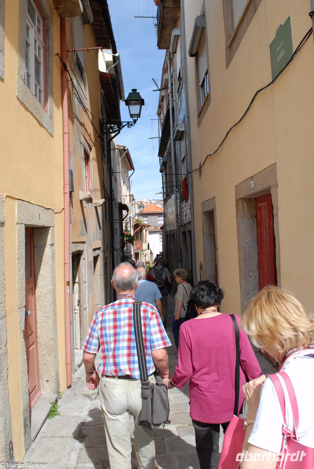 Am Morgen fahren wir mit dem Bus hinüber nach Porto. Nach einer kurzen Einführungsstadtrundfahrt vorbei am Rathausplatz und dem weithin sichtbaren Kleriker-Turm genannt „Torre dos Clérigos" setzen wir den Rundgang zu Fuß fort. Erste Station ist die Kathedrale „Sé do Porto", ein wehrhaftes Gotteshaus aus der Reconquista (Rückeroberung der Iberischen Halbinsel durch christliche Truppen von den Mauren). Dieser Eindruck setzt sich innen fort. Es schließt sich ein sehenswerter Kreuzgang an. Vom höchsten Punkt wandeln wir durch die pittoresken Gassen immer weiter nach unten bis wir am Ufer des Douro Flusses stehen.