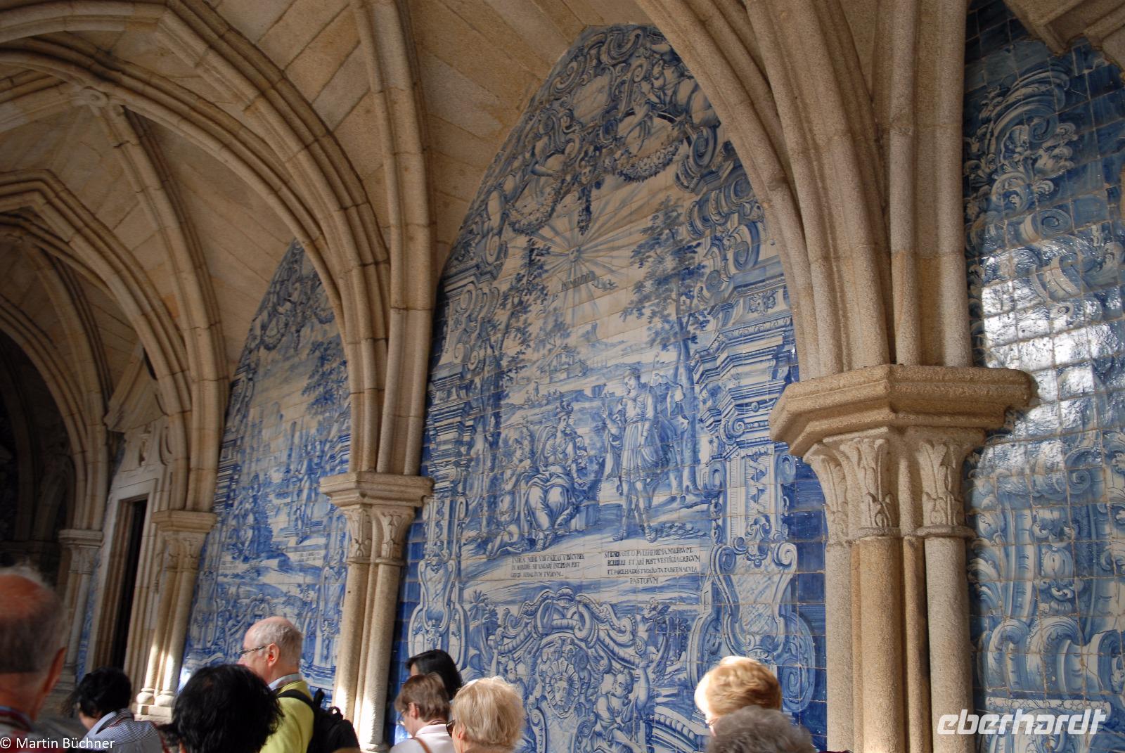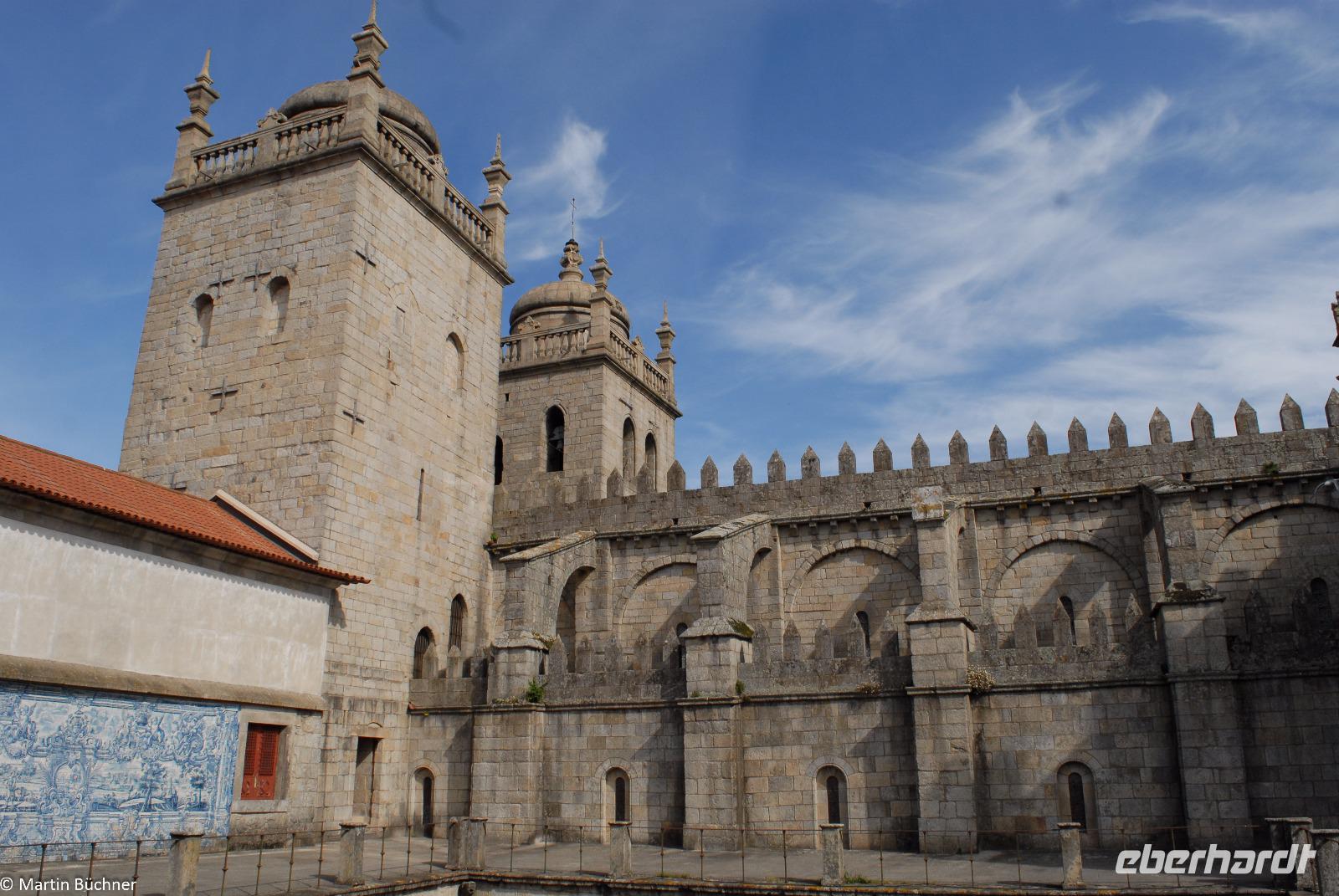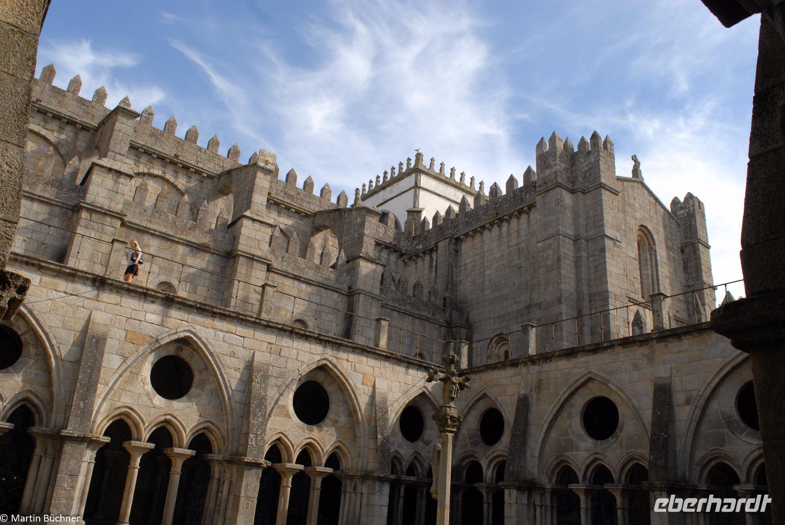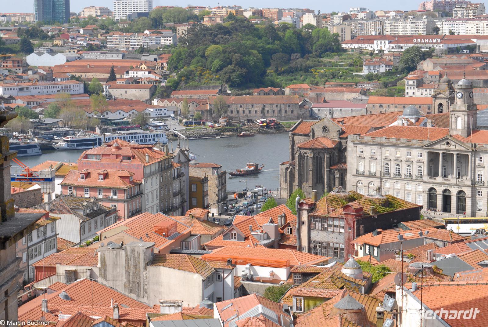 Am Morgen fahren wir mit dem Bus hinüber nach Porto. Nach einer kurzen Einführungsstadtrundfahrt vorbei am Rathausplatz und dem weithin sichtbaren Kleriker-Turm genannt „Torre dos Clérigos" setzen wir den Rundgang zu Fuß fort. Erste Station ist die Kathedrale „Sé do Porto", ein wehrhaftes Gotteshaus aus der Reconquista (Rückeroberung der Iberischen Halbinsel durch christliche Truppen von den Mauren). Dieser Eindruck setzt sich innen fort. Es schließt sich ein sehenswerter Kreuzgang an. Vom höchsten Punkt wandeln wir durch die pittoresken Gassen immer weiter nach unten bis wir am Ufer des Douro Flusses stehen.