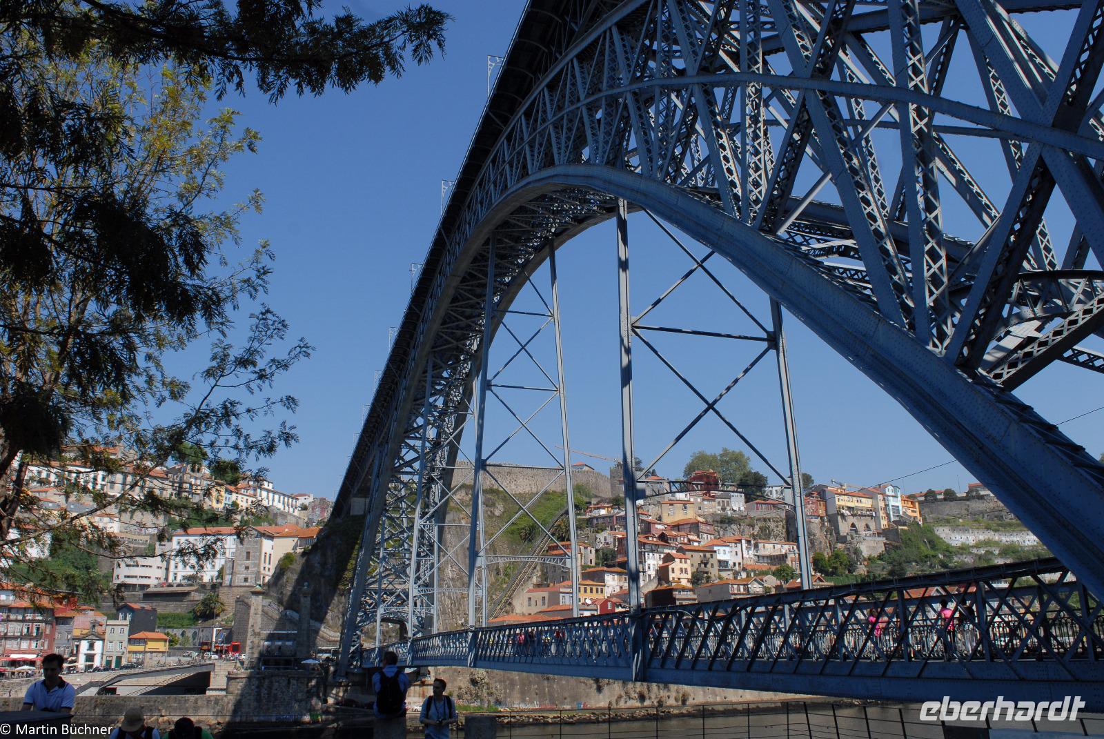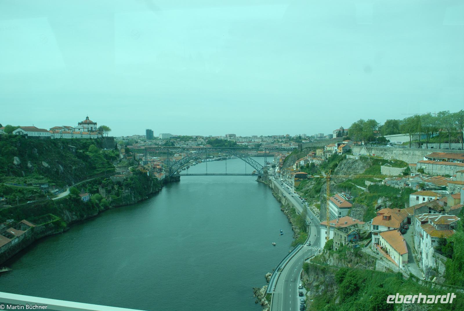 Mit Lufthansa erreichen wir aus verschiedenen Abflughäfen gegen Mittag Porto im Norden Portugals. Abflughäfen sind auf dieser Reise Berlin-Tegel, Dresden, Leipzig, Stuttgart. Diese Gäste steigen in Frankfurt um, einige beginnen die Reise in Frankfurt. Mit den Gästen aus München treffen wir uns am Flughafen in Porto. Hier treffen wir auch unsere örtliche Reiseleiterin Rioletta, sie wird uns bis Lissabon begleiten. Mit dem Bus geht es nach Vila Nova de Gaia, hier liegt unser Hotel. Die Region wird durch den mächtigen Strom Douro geprägt. Nördlich des Flusses liegt Porto, südlich das ehemalige Calle, von beiden Ufern leitet sich der Name Porto-Calle ab = Portugal. Heute liegt am Südufer die eigenständige Stadt Vila Nova de Gaia, die Bewohner legen Wert darauf. Über zahlreiche der spektakulären und berühmten Brücken ist man mit Porto verbunden.