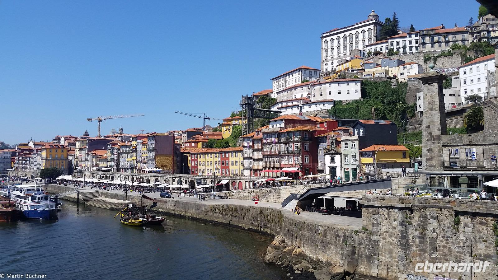 Am Morgen bringt uns unser Chauffeur mit dem Bus erneut zum Ufer des Douro. Nach dem geschäftigen hektischen Treiben, herrscht heute Morgen eine komplett andere Stimmung hier am Ufer. Eine gewisse Ruhe strahlt der Fluss heute aus, gelegentlich unterbrochen von allerlei Vorbereitungs-Aktivitäten für den nächsten bevorstehenden Abend.