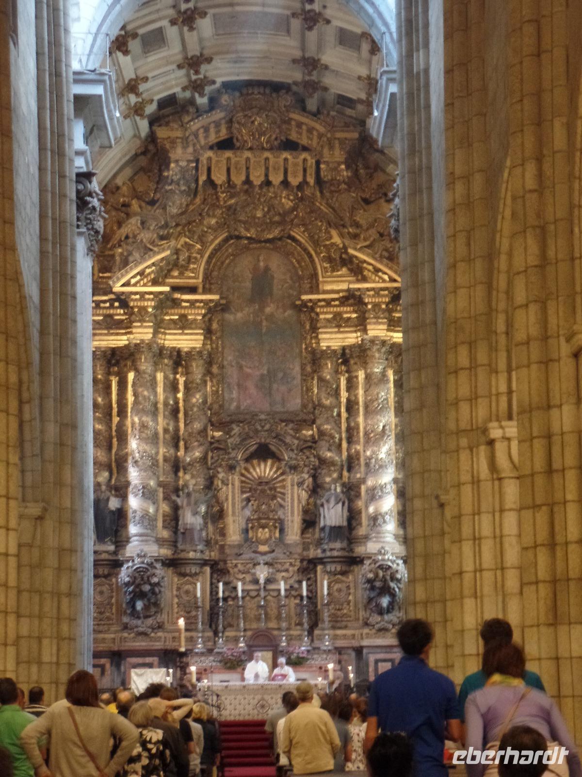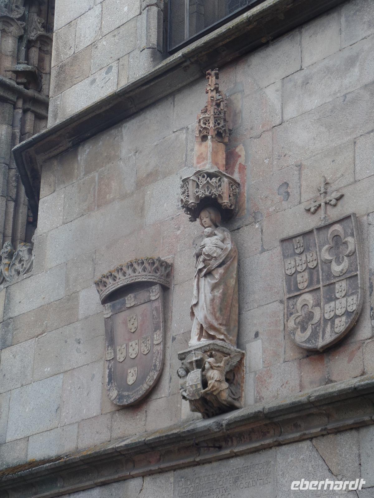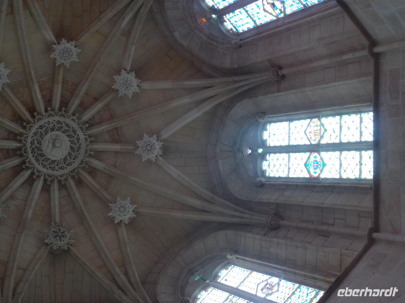 Nach einer kurzen Fahrt mit dem Bus über die Brücke Infante erreichten wir unseren Ausgangspunkt für unseren Stadtrundgang. Vom Torre dos Clerigos liefen wir durch den Parque de Lisboa bis zur Igreja das Carmelitas auf der R. do Carmo. Anschließend zeigte uns Isabel die Buchhandlung Livraria Lello. Weiter der R. Carmelitas entlang erreichten wir nach wenigen Schritten den Hauptplatz von Porto: Praca da Liberdade, mit dem Rathaus der Stadt und dem Reiterdenkmal des liberalen Königs Don Pedro IV. Isabel berichtete, wie ein Zwist zwischen den Brüdern zu einem Bürgerkrieg führte. Unser Weg führte uns weiter zur Rua de Santa Catarina. Am frühen Morgen war die prachtvolle Einkaufsstraße noch leer...im Vergleich zum Abend! Nach einem Blick in das berühmte Café Majestic schlenderten wir zum Bahnhof Sao Bento. Wir bestaunten die überwältigende Kachelkunst, die uns die Geschichte Portugals lebendig machte. Ein kurzer aber steiler Spaziergang brachte uns zur Kathedrale Sé. Hier siedelten vor mehr als 2000 Jahren die ersten Menschen und die Stadt entwickelte sich hinab zum Ufer des Flusses. Wir nahmen den Weg zum Ufer durch den Stadtteil Sé und liefen durch enge Gassen, sahen wie die Menschen hier leben und genossen puren portugiesischen Flair. Bunte Wäsche flatterte im Wind an den Häuserfassaden, Blumenkübel schmückten die engen Gassen und die Balkone waren mit einem bunten Pflanzenmix ausgestattet. Schon nahte das Ende unserer gemeinsamen Stadterkundung am Börsenpalast. Am Ufer des Duoro genossen wir die Sonne bei einer kleinen Erfrischung, beobachteten das Treiben an der Ribeira und spazierten entlang des Flusses. Im Anschluss hatten wir die Gelegenheit die Stadt auf eigene Faust zu erkunden oder wir nutzten die Möglichkeit zur Rückfahrt in das Hotel.Überraschend gab es hier ein Aufgebot an Polizei und Fans, da in unserem Hotel Holiday Inn Gaia die Spieler von Benfica Lissabon übernachteten und die Fans warteten auf die Abfahrt des Mannschaftsbusses. Am Abend fuhren wir erneut an die Ribeira in das Restaurant "Chez Lapin". Hier genossen wir in gemütlicher Atmosphäre das heutige Abendessen. Neben einem Gläschen Wein wurden wir mit Salat, Schweinebraten und Obst verwöhnt. Gern hätten wir im Anschluss noch das Lichtermeer entlang des Flusses auf uns wirken lassen doch leider mussten wir zurück zum Bus und somit auch in unser Hotel.