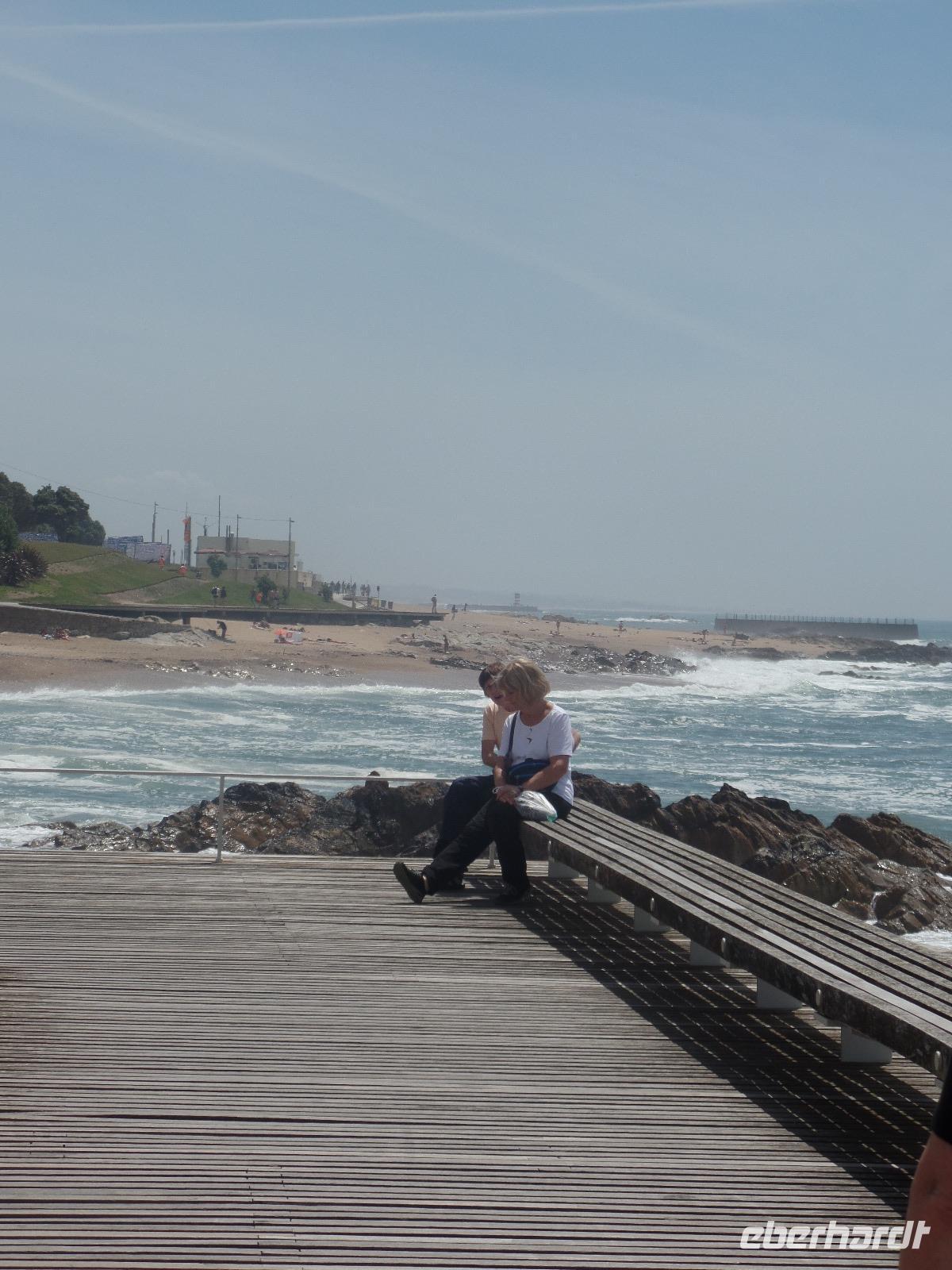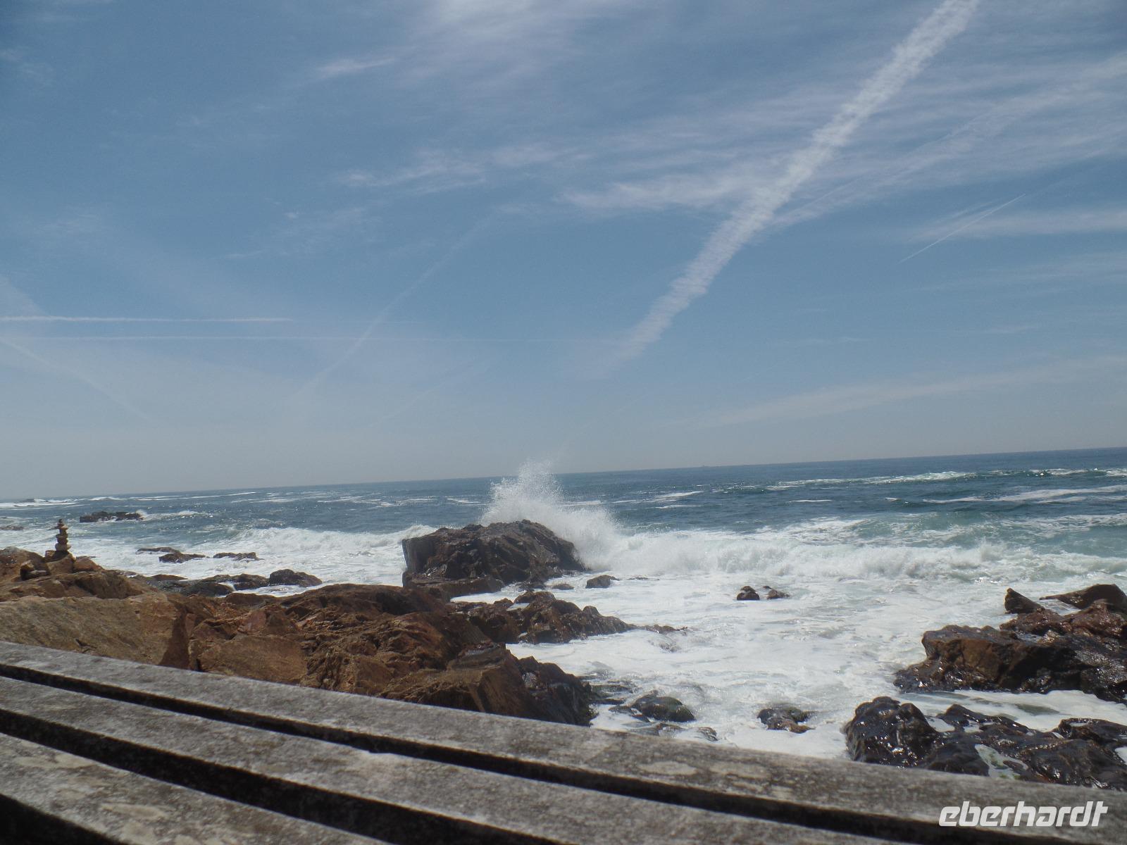 Auch heute weckten uns die wohltuenden Sonnenstrahlen und so starteten wir voller Freude in den Tag. Pünktlich fuhren wir mit Isabel und Ricardo in Richtung Duoro. Zum Montagmorgen hatte sich der Verkehr zu allen Seiten gestaut und so stiegen wir kurzer Hand eher aus und spazierten zum Anleger unseres kleinen Ausflugsbootes. 10.15 Uhr legte das Boot zu der legendären Brückentour ab. Wir hatten bei traumhaftem Wetter und sehr guten Sitzplätzen beste Sicht auf die Ufer des Duoro. Zuerst fuhren wir durch die Brücke Luis I., erbaut Théophile Syering, einem Mitarbeiter von Gustav Eiffel, weiter durch die Ponte do Infante und weiter durch die ebenfalls gusseiserne Brücke, die Ponte D. Maria Pia. Noch einen kurzen Moment genossen wir die Fahrt auf dem Duoro in Richtung Osten, bevor das Boote wendete und sich ein neues Bild auf die Stadt Porto zeigte. Wir fuhren vorbei an Lagerhäusern und unterquerten die moderne Autobahnbrücke, eine der größten Spannbetonbrücken Europas. Nach etwa 20 Minuten Fahrt erreichten wir die Mündung des Duoro in den Atlantik, wo unser Boot erneut wendete um uns zum Cais an der Ribera zurückzubringen. Wir spazierten zur Brücke Loius I und bestaunten dabei die Abseilkünste an der stehengebliebenen Gondel. Nachdem wir die Brücke passierten, genossen wir die Sonne und die Aussicht vom Flussufer Gaia auf Porto. Auf dieser Seite befinden sich die berühmten Weinkellereien, wie Taylors, Sandeman und Cálem...Ab 12.00 Uhr öffneten sich für uns die Pforten der Traditionskellerei Burmester. Ein junger, dynamischer und zu Späßen aufgelegter Portugiese führte uns durch die Schaukellerei und erläuterte uns die Entstehung des Unternehmens sowie die Farben und Geschmäcker der einzelnen Sorten, welche sich durch die unterschiedliche Reifezeiten unterscheiden. Im Anschluss durften wir nun auch endlich probieren...zwei der guten Tropfen haben wir verkostet. Einen kräftigen weißen sowie einen geschmackvollen roten Portwein. Nach unserer Verkostung fuhren wir zum Forte de S. Francisco. Das Castelo liegt direkt am Atlantik und wir spazierten entlang der Atlantikküste bis zur Duoro-Mündung. Unterwegs genossen wir einen kleinen Snack in einem der zahlreichen Strandcafés und stiegen am Farol de S. Miguel in die historische Straßenbahn 1 ein und fuhren bis zum Endhaltepunkt Infante. Mit der Metro fuhren wir zurück zum Hotel und ließen diesen wundervollen Tag beim Abendessen im Hotel ausklingen.