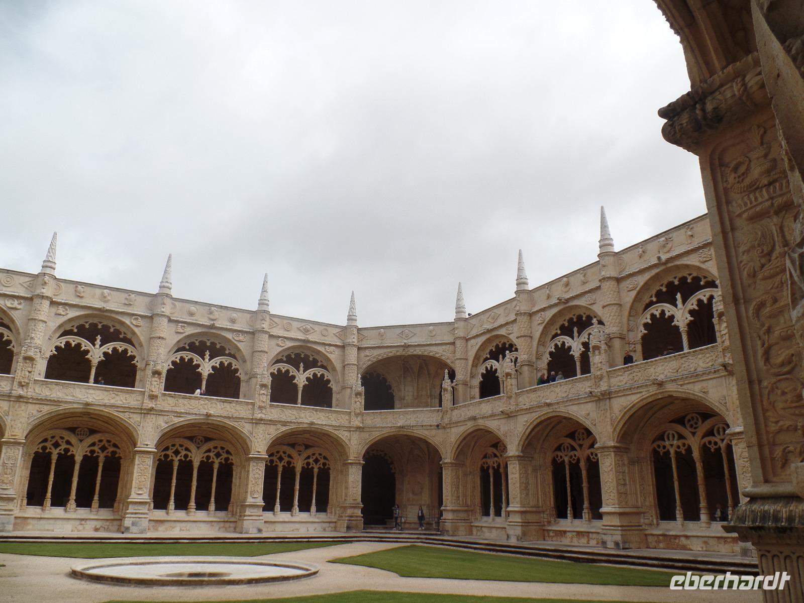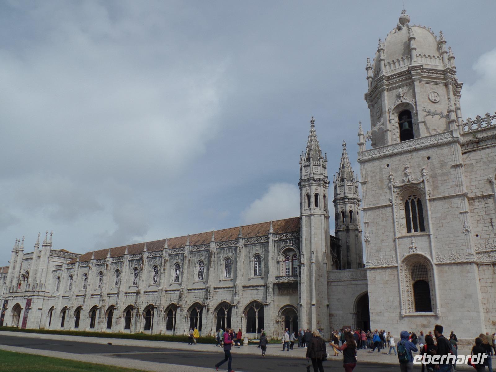 Am heutigen Morgen weckten uns die Regentropfen, welche an unsere Fenster peitschten ... oh, nein! Vielleicht vertreibt der Wind die Wolken, während wir gemütlich im Hotel unser Frühstück genossen. Bei unserer pünktlichen Abfahrt regnete es noch immer und mit jedem gefahrenem Kilometer in Richtung Belem wurde das Wetter besser. Majestätisch erhebt sich der Wachturm Torre de Belem am Ufer des Tejo. Es gilt als Wahrzeichen der Entdeckerzeit. Kurz verweilten wir an der Nachbildung des Flugzeuges, mit welchem 1922 der Atlantik bis Rio de Janeiro überquert wurde. Die nächste Station auf unserer Entdeckungsreise durch Lissabon war das Denkmal der Entdecker. Es wurde 1960 zu Ehren des Seefahrers Heinrich errichtet. Zu Füßen des Denkmals erinnert ein Bodenmosaik an die großen Entdeckungszeiten. Nicht nur das Torre de Belem stand einst im Wasser sondern auch das Hieronymuskloster lag nahe dem Fluss Tejo. Das Kloster verkörperte Macht und Reichtum im goldenen Zeitalter und ist Symbol einer glorreichen Geschichte. Wir besichtigten das, im manuelinischem Stil errichte Bauwerk und entdeckten die Klosterkirche St. Maria, den Renaissancechor sowie die Grabmäler von Manuel I und seines Sohnes. Im Anschluss begaben wir uns in den Kreuzgang des Klosters, doppelstöckig und reich verziert wirkt er wie ein Palast. Nachdem wir nun die erste Etappe abgeschlossen haben, lag der Duft der bekannten und sehr schmackhaften Pasteis de Belem in der Luft. Wir gingen zur Manufaktur, wo die Blätterteig-Törtchen gefüllt mit Eigelb, Zucker und Sahne hergestellt werden. Im Park verkosteten wir die Küchlein mit Zucker und Zimt...so lecker kann Portugal sein ! Mit dem Bus fuhren wir auf den Rossio, wo wir eine kleine erste Erkundung starteten und uns für den Aufstieg zur Kathedrale stärken konnten. Nach einem steilen Anstieg erreichten wir Castelo de S. Jorge. Bei einem Rundgang und leider auch einigen heftigen Regenschauern erfuhren wir wissenswertes über dieses Nationaldenkmal. Über Treppen und durch die engen Gassen der Alfama stiegen wir wieder hinab und lauschten anschließend den Klängen des Fado.Bei einem Glas Wein genossen wir die landestypische Musik, welche melancholisch doch aber sehr rhythmisch ist. Nach einem kleinen Spaziergang erreichten wir unseren Bus und wir kämpften uns durch den dichten Verkehr Lissabons. Auch heute genossen wir unser Abendessen im Hotel und ließen den Tag bei einem Gläschen Wein Revue passieren.