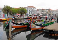 Am heutigen Tag verließen wir Porto und machten uns auf den Weg in das gut 300 km entfernte Lissabon. Auf dem Weg erwarteten uns einige besondere Höhepunkte jeder Portugalreise. Zunächst steuerten wir Aveiro an. Die von zahlreichen Kanälen durchzogene Stadt am Atlantik liegt an einer Lagune und wird wegen ihrer vielen farbenfrohen Boote auch als "Klein-Venedig" bezeichnet. Die „moliceiros“ mit ihrem schwanenhalsförmigen, bunt bemalten Bug dienten in früheren Zeiten der Ernte von Algen und Seegras in der Lagune, heute sind sie als Ausflugsboote für Touristen im Einsatz. Auch wir unternahmen eine Fahrt durch die Wasserstraßen der Stadt und bekamen einen Eindruck vom ehemaligen Reichtum des Bürgertums, das zahlreiche wunderschöne Patrizierhäuser im Jugendstil errichten ließ. Auf dem Boot wurden wir mit einem Glas Sekt und der lokalen Süßspeise „ovos moles“ überrascht. Die „ovos moles“ wurden ursprünglich in Klöstern hergestellt und bestehen aus einer von Hostienteig umgebenen Masse aus Eigelb und Zucker.