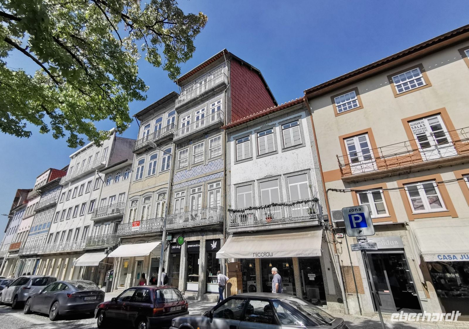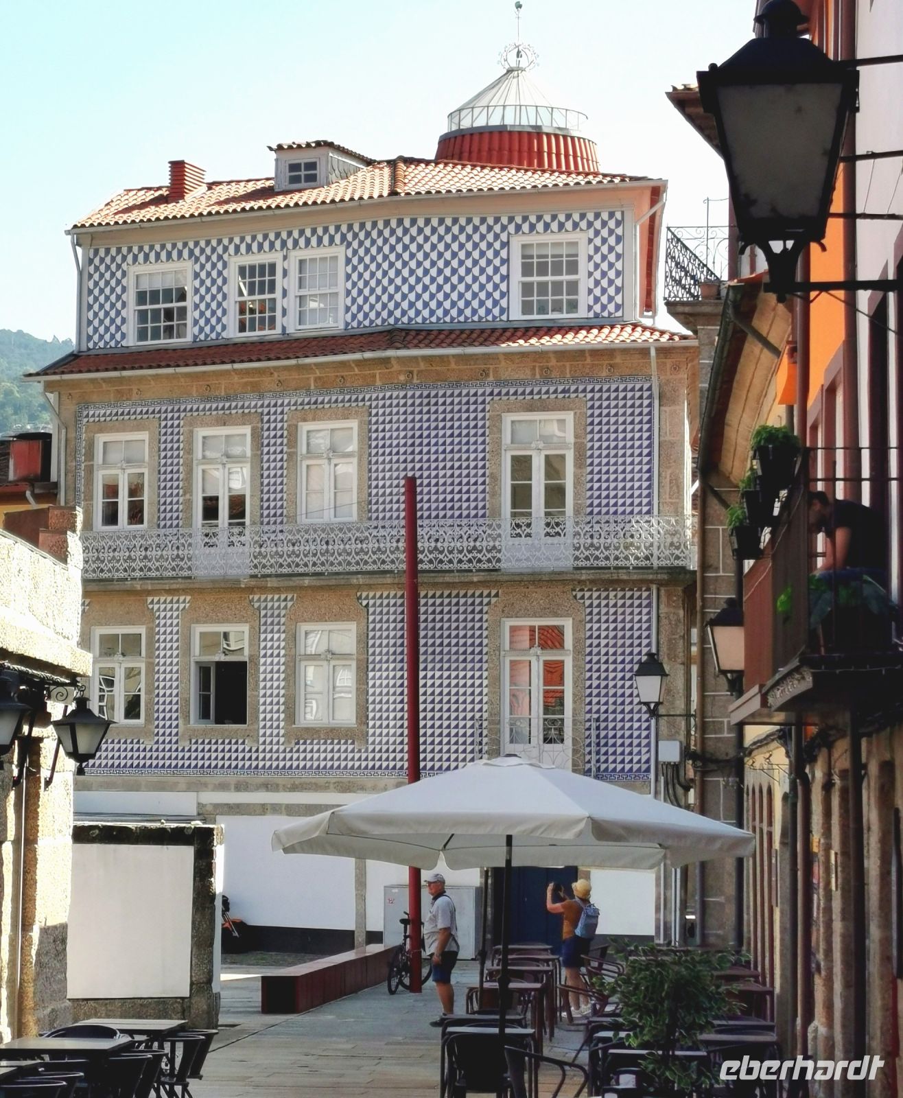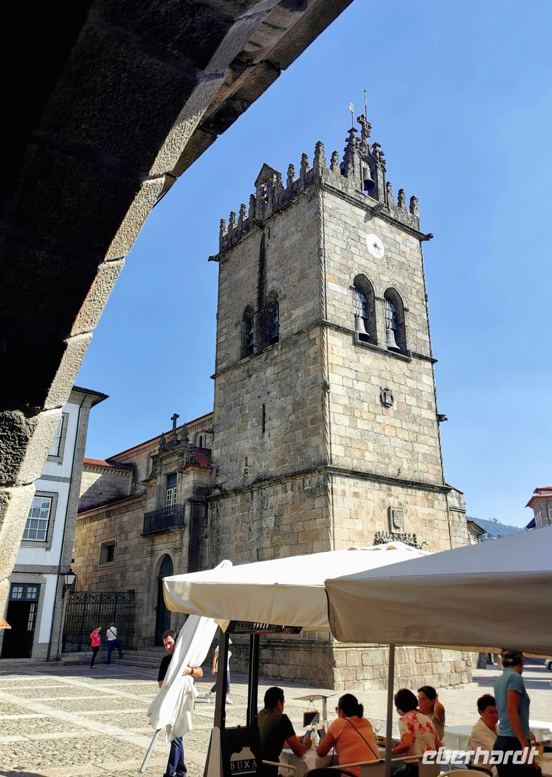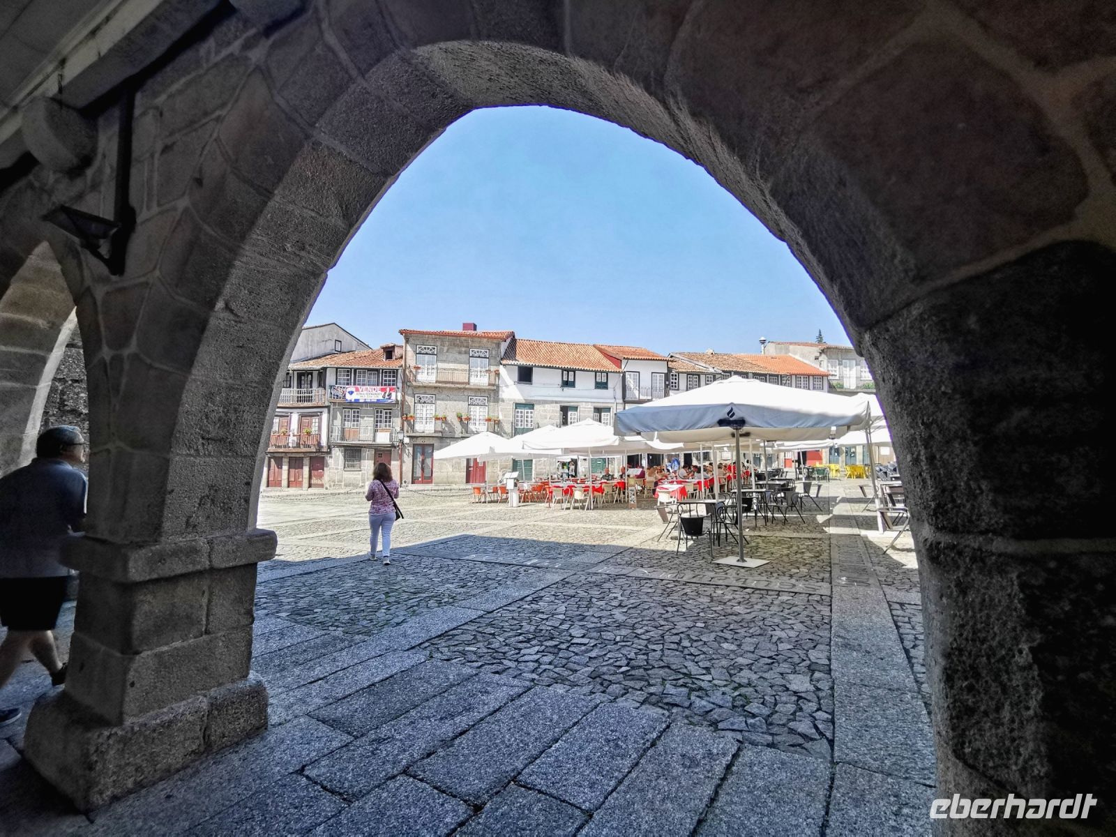 Um das mittelalterliche Flair ein wenig zu genießen, lassen wir uns zum Essen auf dem Plaza Largo da Oliveira nieder und genießen einen Snack und den Vinho Verde, den "grünen" Leichtwein Portugals, den man besonders im Sommer eiskalt genießt.