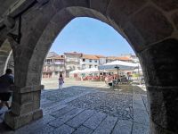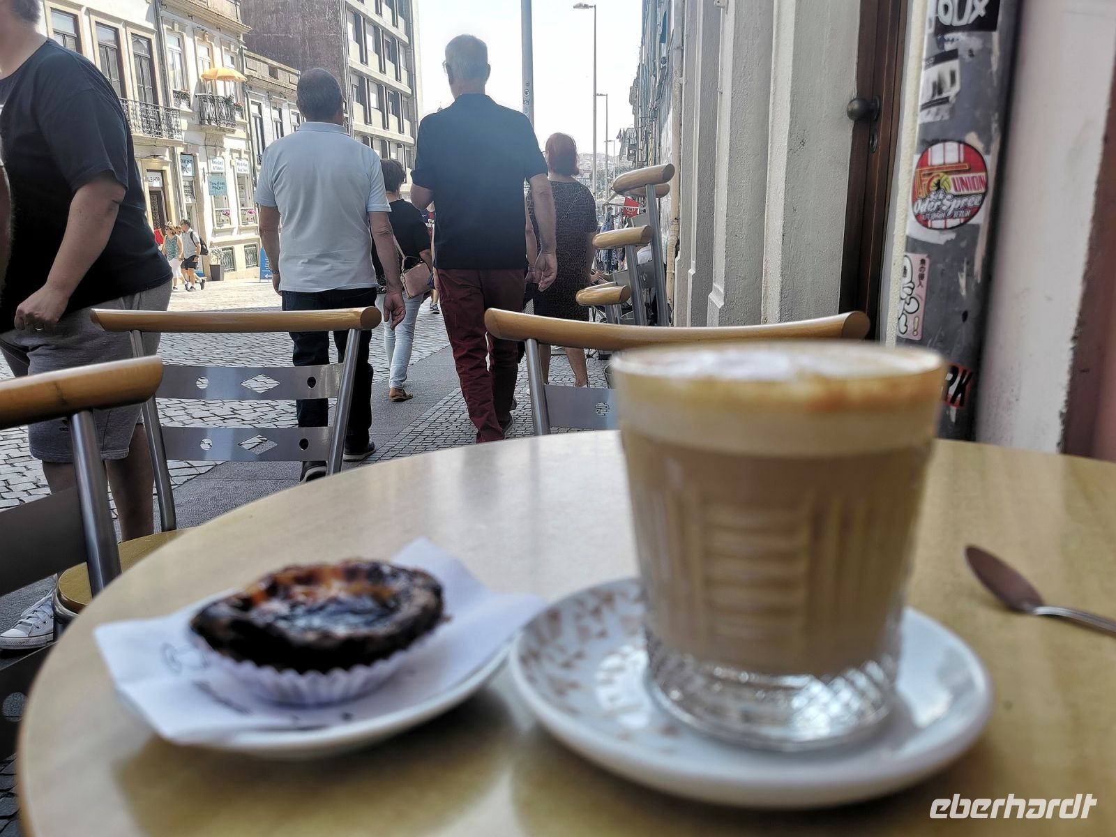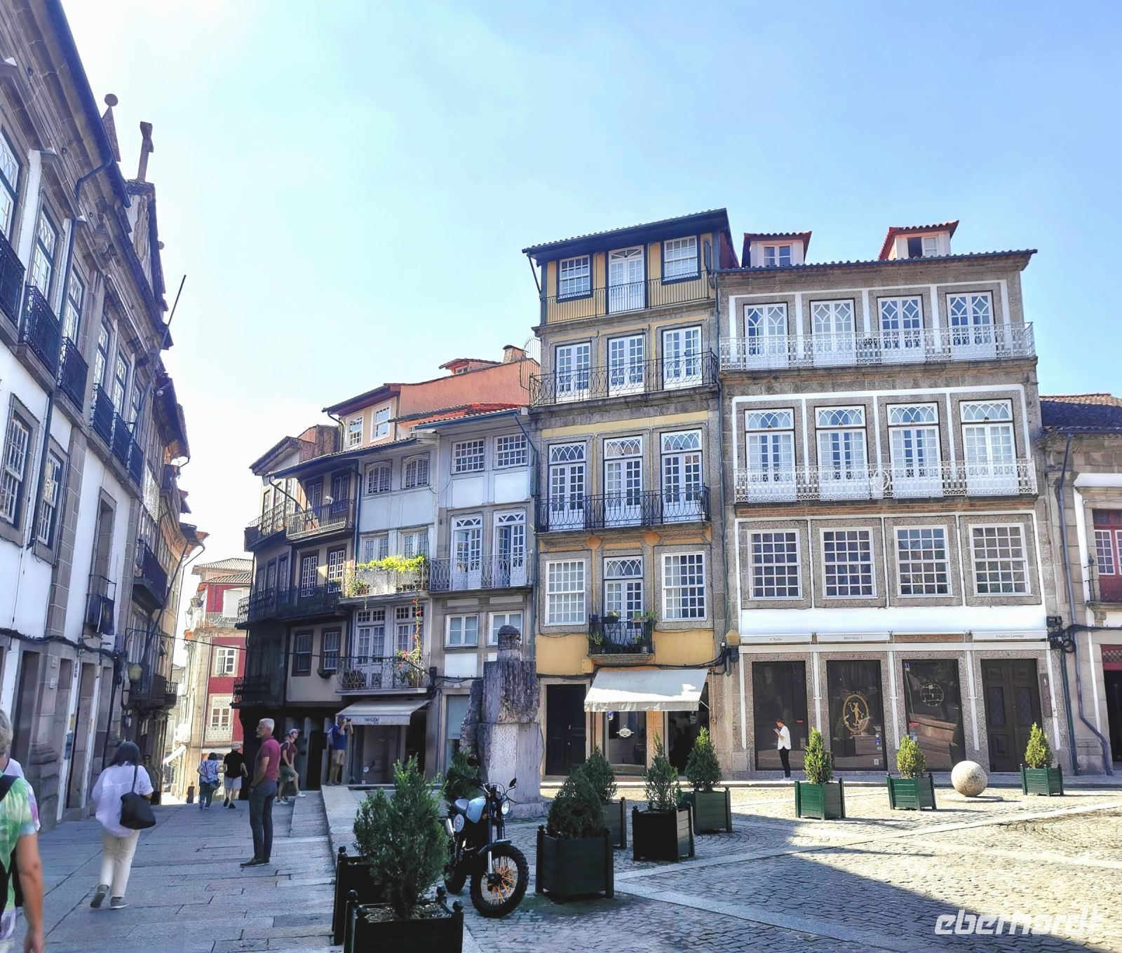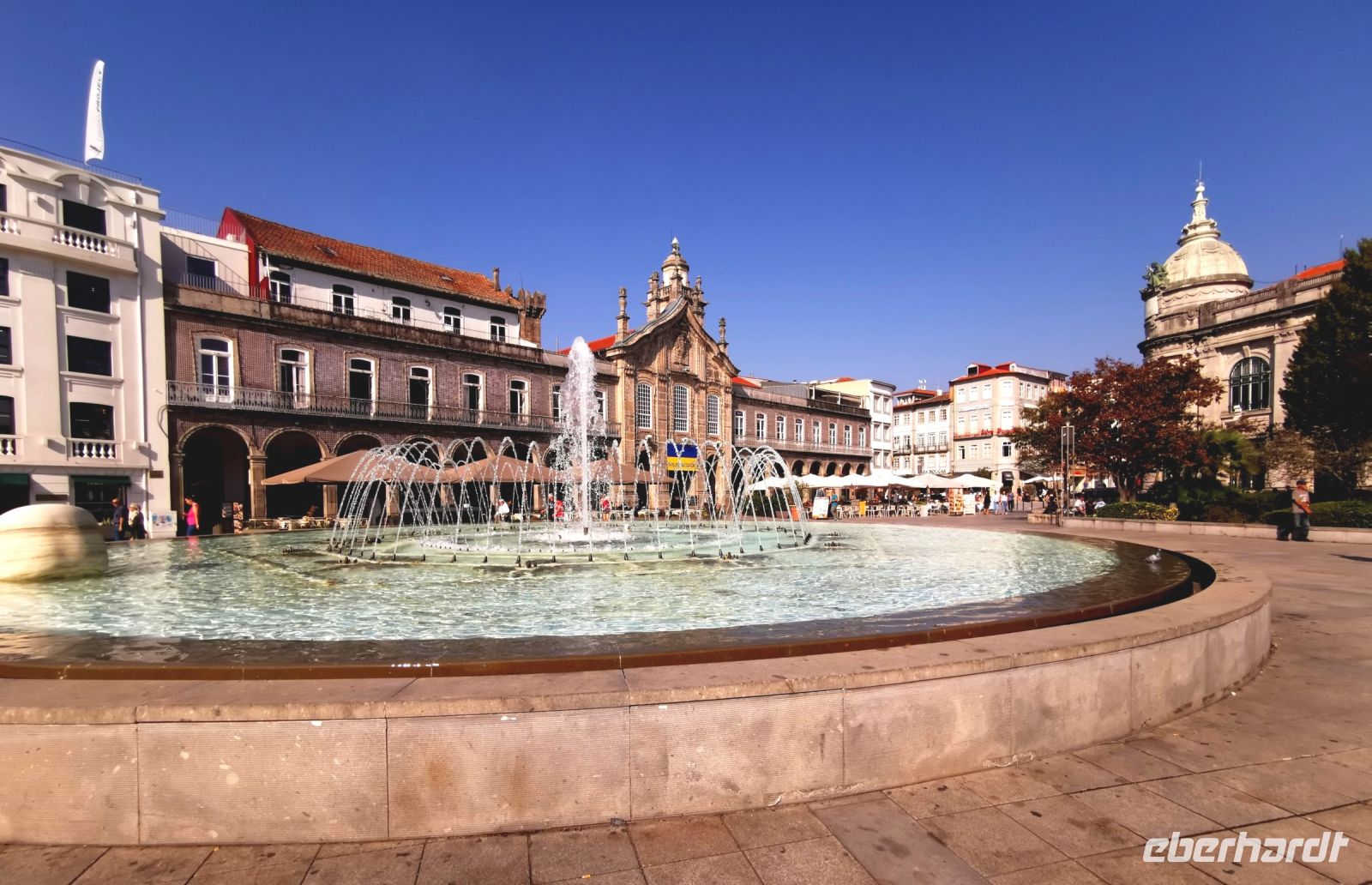 Um das mittelalterliche Flair ein wenig zu genießen, lassen wir uns zum Essen auf dem Plaza Largo da Oliveira nieder und genießen einen Snack und den Vinho Verde, den "grünen" Leichtwein Portugals, den man besonders im Sommer eiskalt genießt.