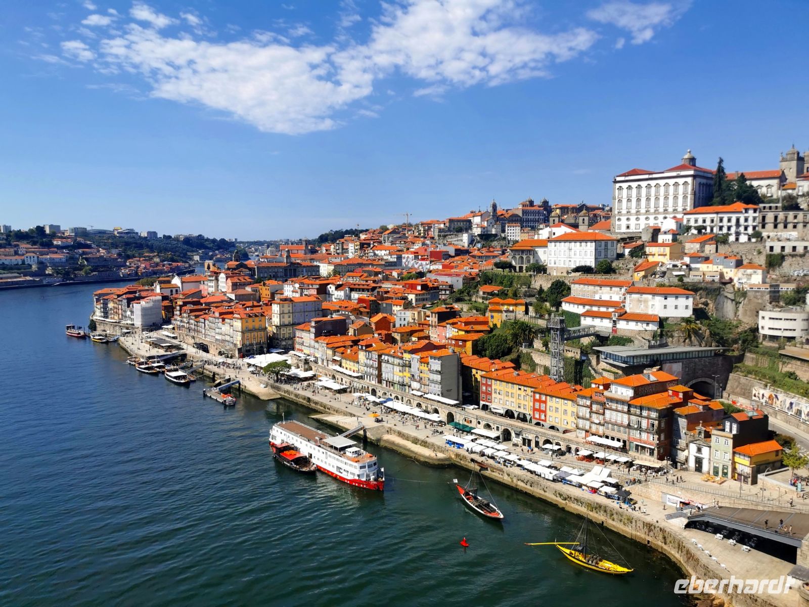 Ein weiteres Highlight ist die Bogenbrücke Ponte Luis I., die die historische Altstadt mit dem benachbarten Viertel Vila Nova de Gaia verbindet. Nahezu 390 Meter lang ist dieses Bauwerk, welches 1886 freigegeben wurde. Auf ihr kann man von Autos ungestört über den Douro flanieren und die wunderbare Aussicht über die Stadt und die am Ufer von Gaia liegenden Portweinhersteller genießen.