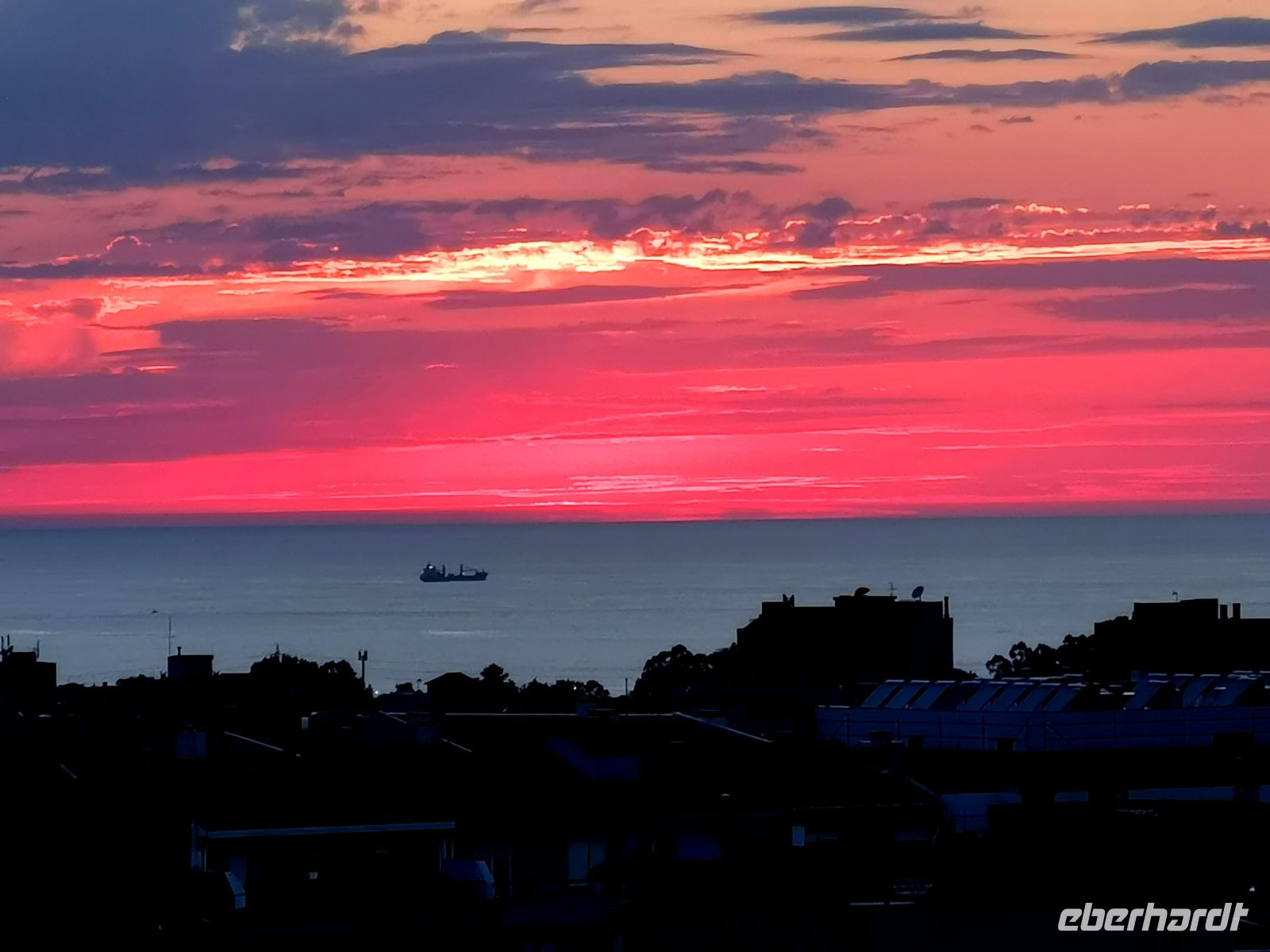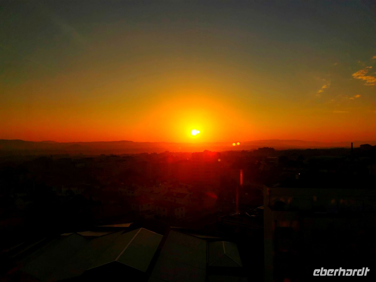 Leider ist es mittlerweile Abend geworden und vor uns liegt noch mindestens eine Fahrstunde bis Lissabon. Also müssen wir uns schweren Herzens verabschieden und bei rosarotem Abendhimmel erreichen wir unser heutiges Ziel - die Hauptstadt Portugals.