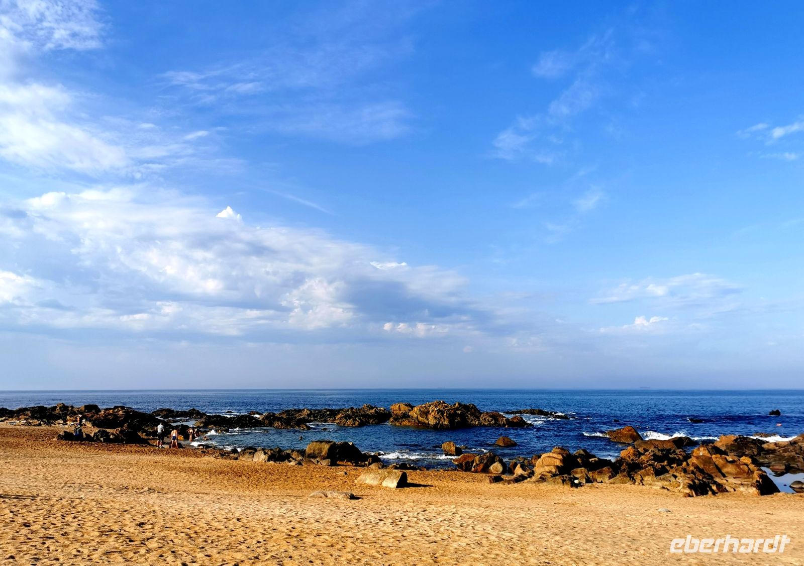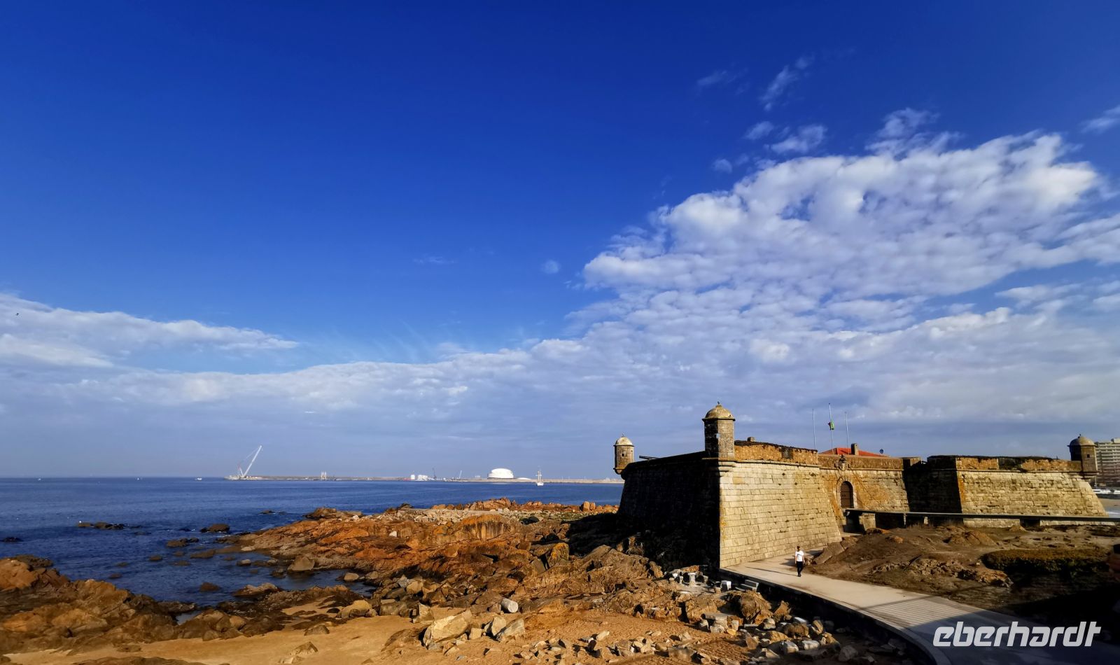 Ausgeschlafen und erholt von den Strapazen der Anreise frühstücken wir hoch über den Dächern von Gaia. Danach machen wir uns auf den Weg zur Mündung des Douro Flusses in den Ozean. Isabel berichtet uns viel Wissenswertes über die Geschichte des kleinen Landes Portugal und der Siedlung Matosinhos in der Region Norte. Etwa 10 Kilometer nordwestlich von Porto liegt dieses kleine Städtchen am Atlantik. Seit dem 16. Jahrhundert befindet sich hier ein bekannter Wallfahrtsort. Heutzutage kommen hier am großen Hafen die Kreuzfahrtschiffe an.