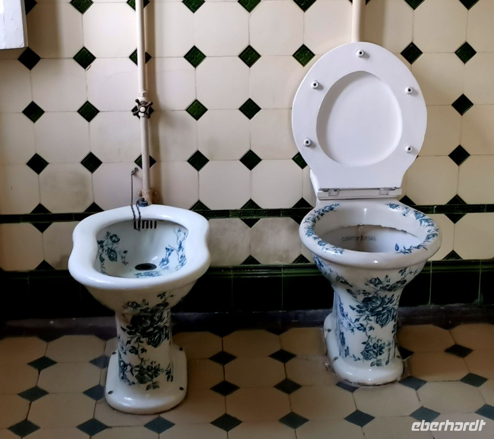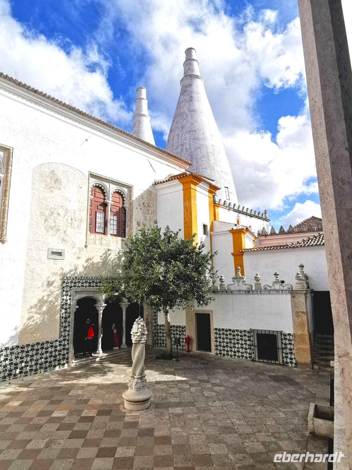 Von außen fallen an diesem Gebäude wohl am meisten die beiden 33 Meter hohen konischen Schornsteine ins Auge, die das Wahrzeichen von Sintra sind.