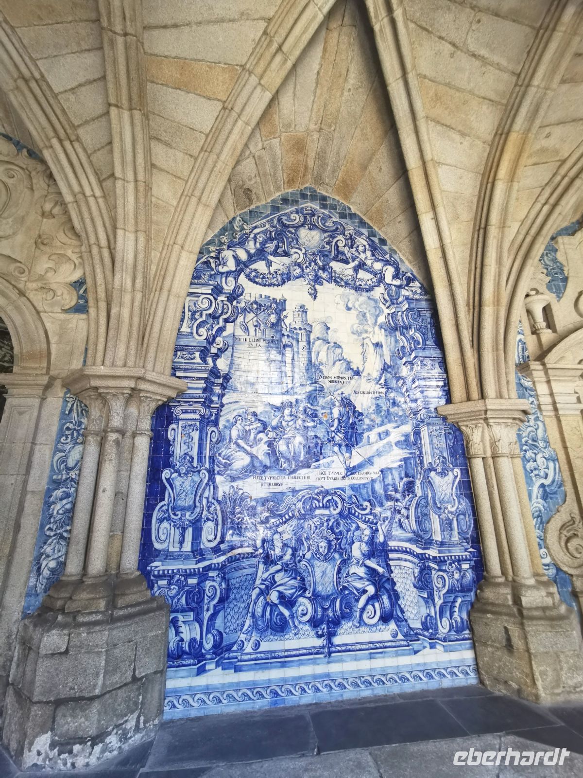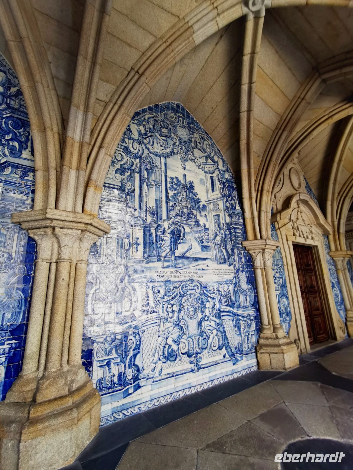 Ribera, wie das Altstadt Viertel auch genannt wird, liegt an der Mündung des Douro Flusses und windet sich in engen Gassen Hügel auf- und abwärts. Hoch oben über den Dächern thront die Kathedrale von Porto, der wir ebenfalls einen Besuch abstatten. Diese barocke Bischofskirche liegt auf dem höchsten Punkt der Stadt. Innen ist sie prunkvoll mit etlichen Kacheln und viel Gold ausgestattet worden.