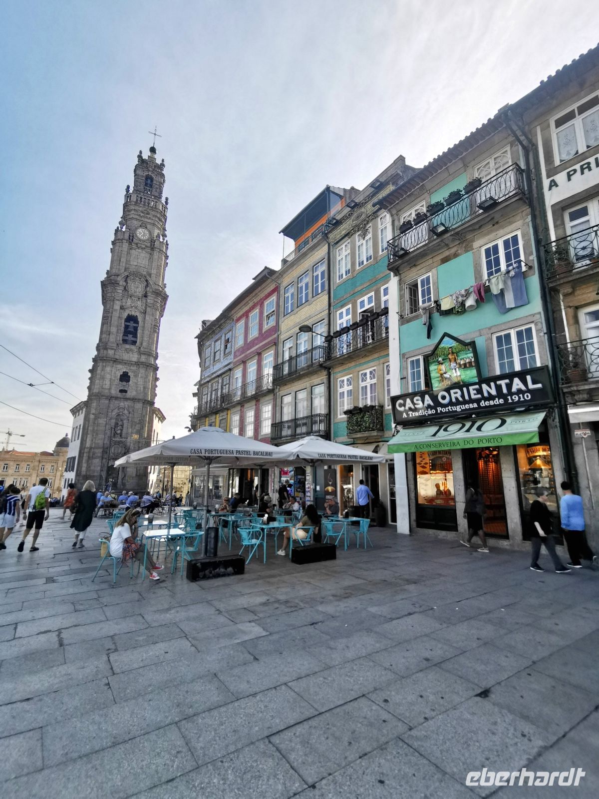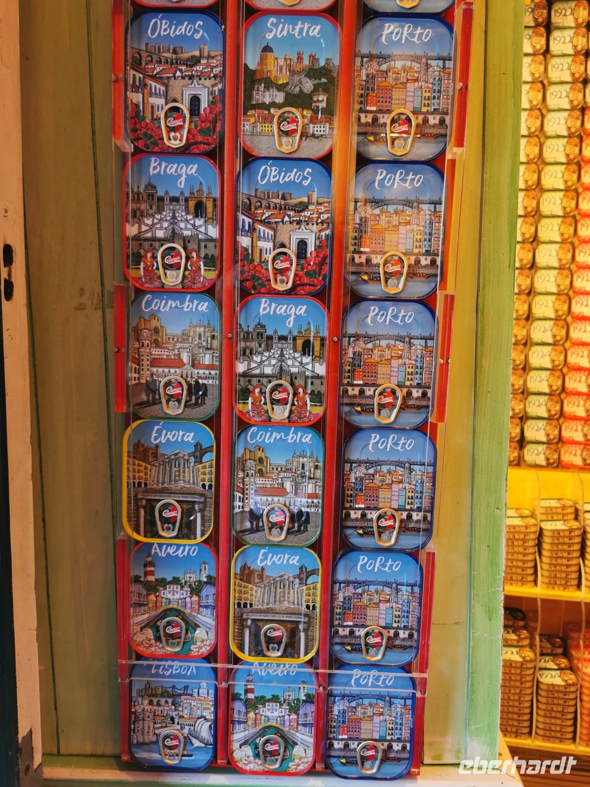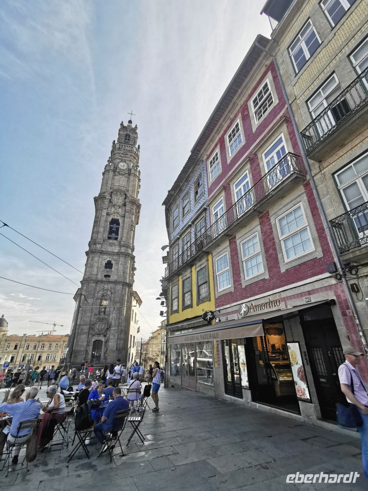 Anschließend begeben wir uns in die Altstadt von Porto, auch Ribeira genannt. Unser Spaziergang beginnt am Torre dos Clérigos, dem von Nicolau Nason errichteten Wahrzeichen der Stadt. Um den Turm herum sehen wir Straßencafés und im Casa Oriental schlägt den Damen der Gruppe das Herz höher beim Anblick der unzähligen bunten Sardinendosen, für die man stattliche 10 EUR ausgeben kann. Aber der Anblick ist einfach zu schön und solch ein Souvenir ist bei den Daheimgebliebenen beliebt.