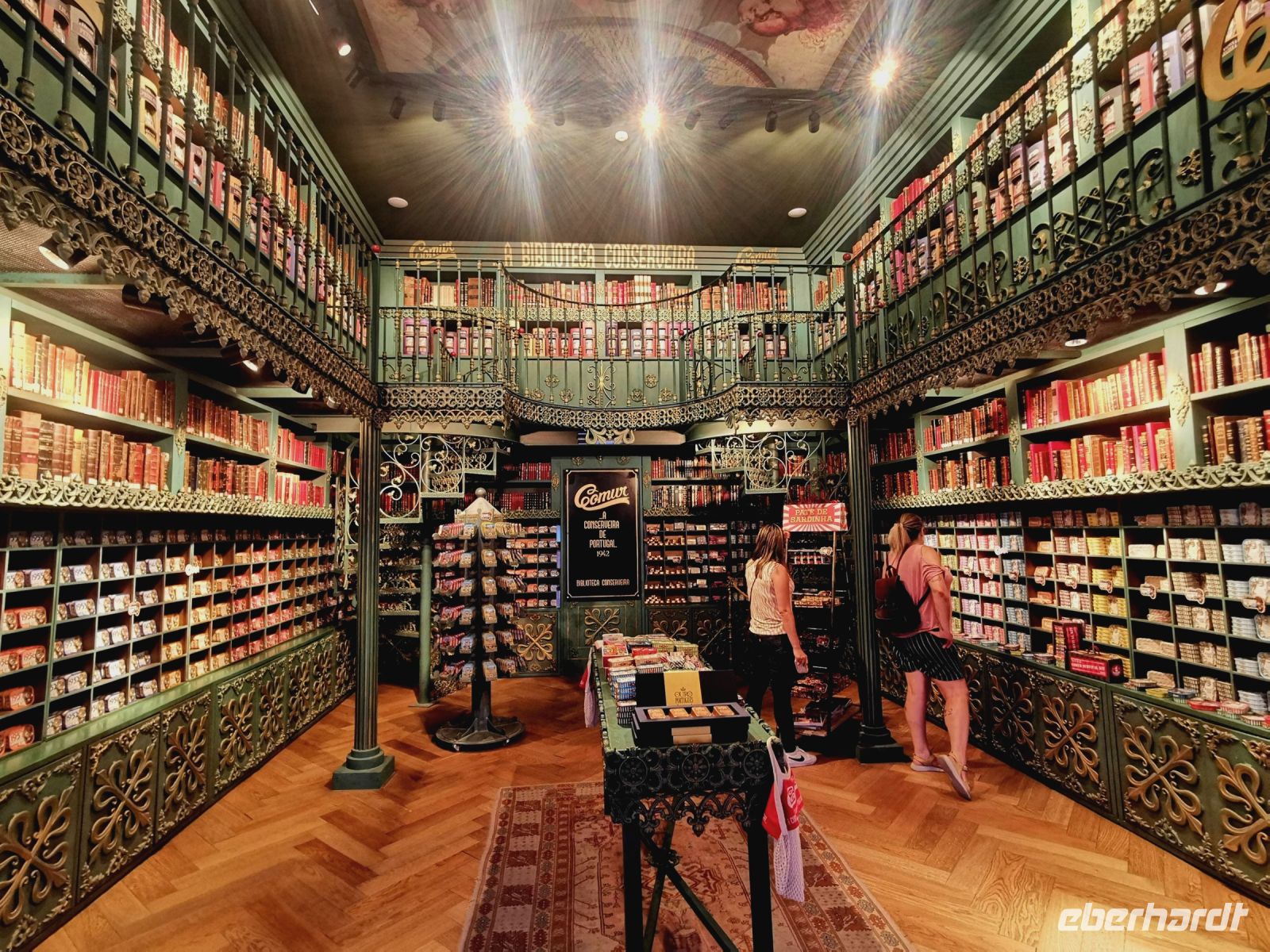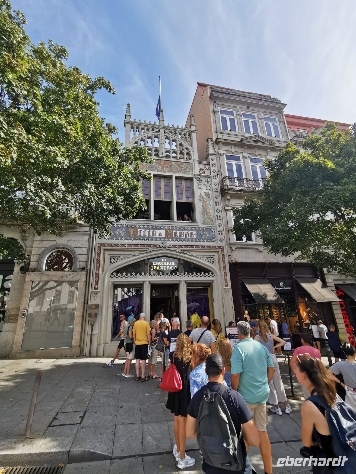 Unweit des Turmes befindet sich die Igreja do Carmo, eine Barockkirche mit berühmter gefliester Seitenfassade und Portos berühmteste Buchhandlung, die Livraria Lello. Vor dieser Buchhandlung steht eine riesige Schlange von Schaulustigen, die 5 Euro Eintritt zahlen, um in diesen Laden hineinschauen zu dürfen. Das verstehen nur richtige Harry Potter Fans. Man sagt, daß die Autorin hier ihre Inspiration für den Roman bekommen haben soll.