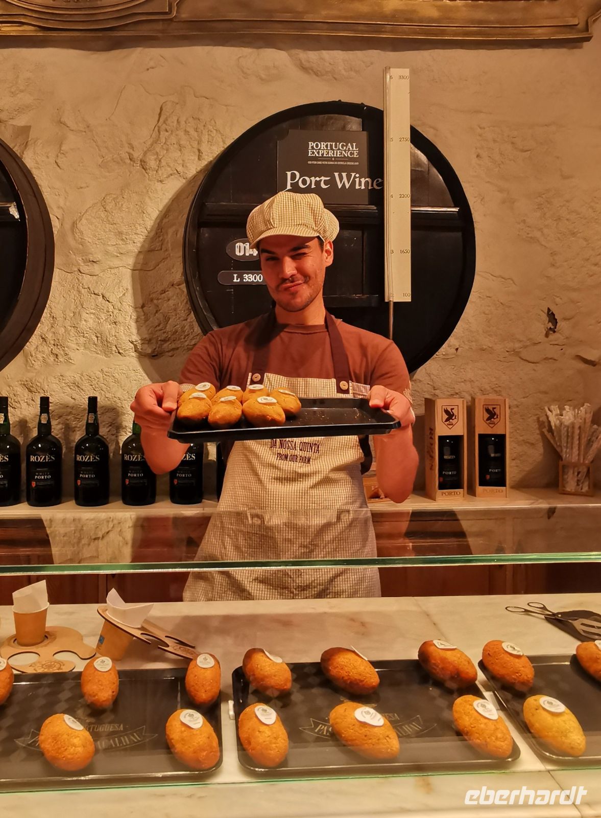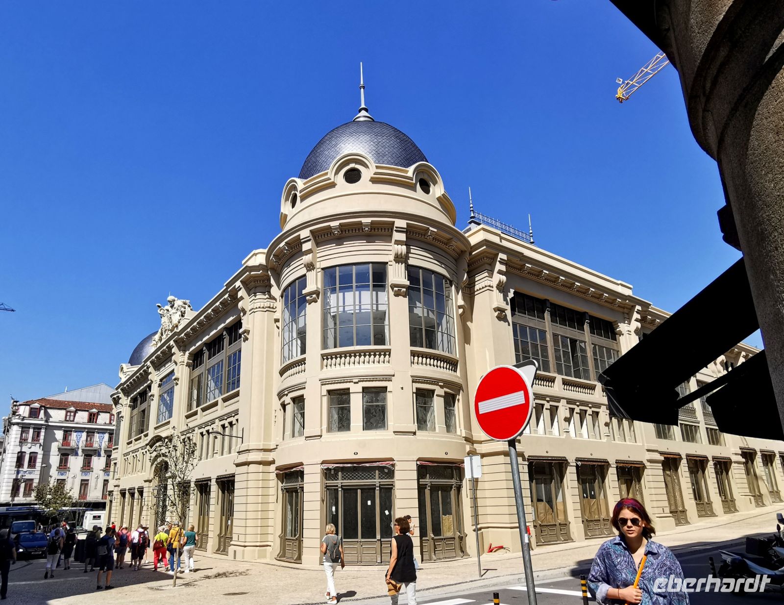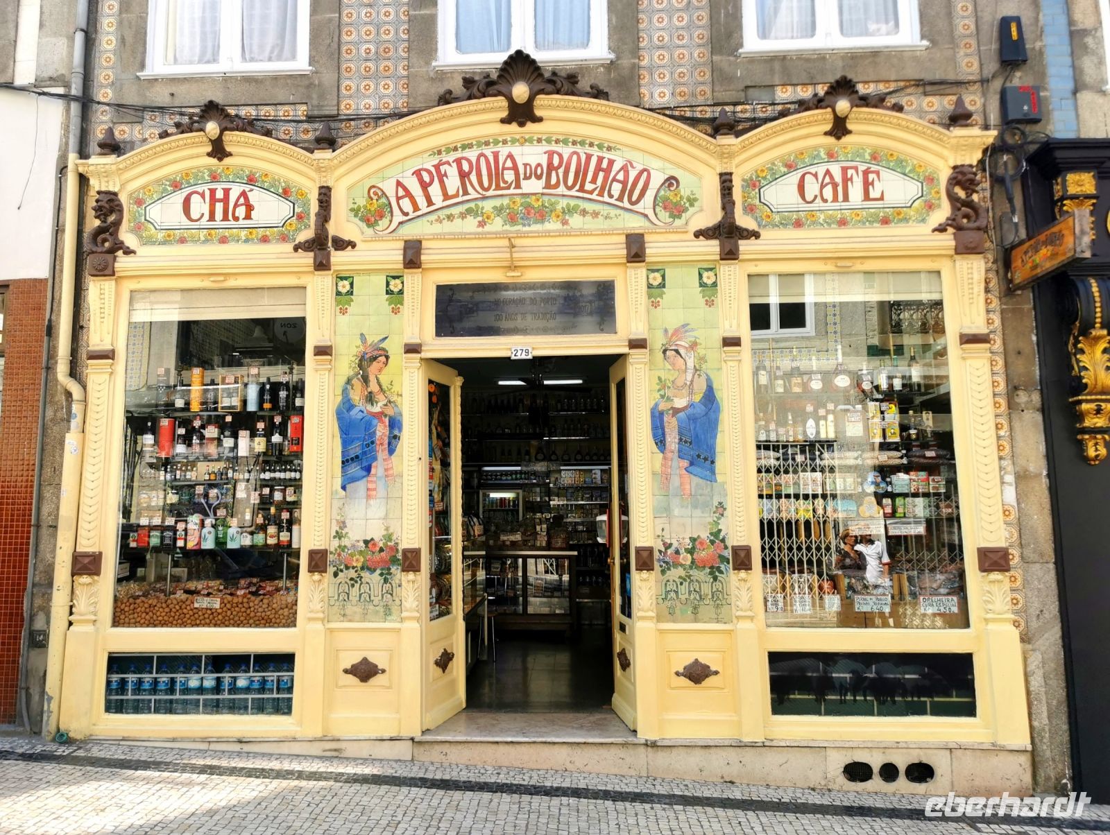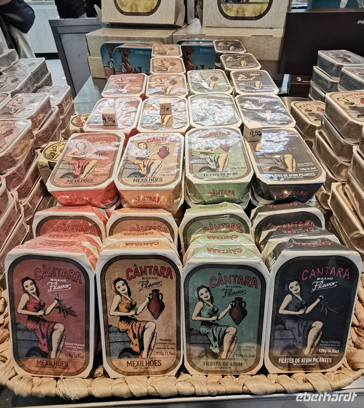 Danach kehren wir ans Tageslicht zurück und spazieren mit Isabel durch die Baixa von Porto, ein Viertel mit auffallend vielen Jugendstilfassaden und kleinen Kolonialwarenläden. Wir beenden unseren Spaziergang in der gerade neu renovierten und wieder eröffneten Markthalle und bewundern exotisches Obst, frisches lokales Gemüse, die typischen bunten Sardinenbüchsen, Olivenöl und kandierte Früchte.