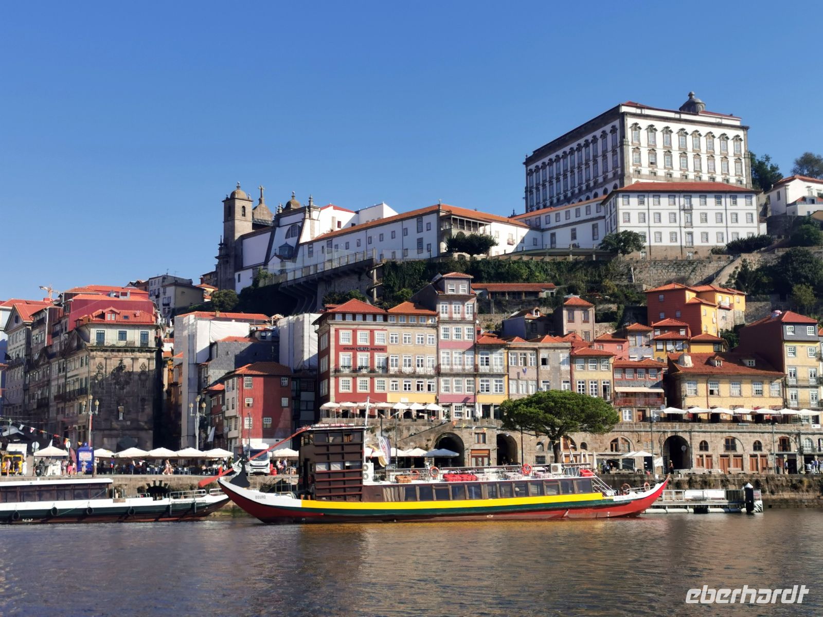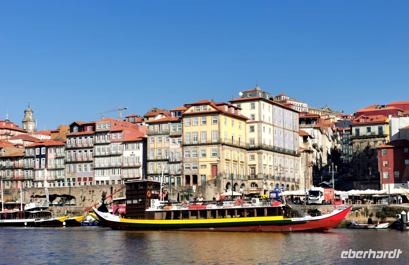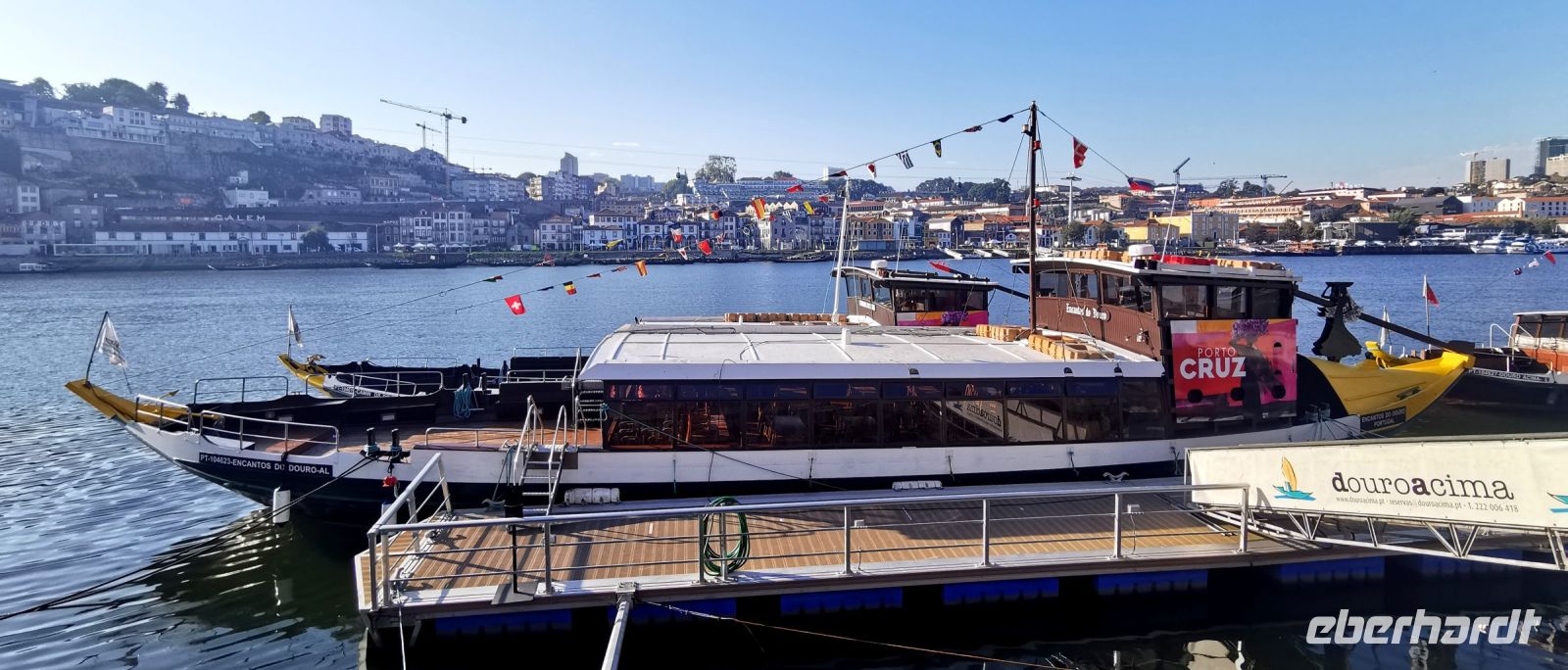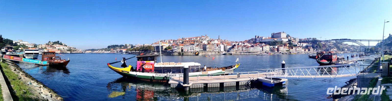 Schon starten wir in der Nähe der Pont Luis I., fahren vorbei an der bezaubernden Kulisse der Altstadt von Porto durch die verschiedenen Brücken hindurch in Richtung des Atlantik. Dort wenden wir und fahren zurück. Das Wetter ist traumhaft, die Sonne gibt ihr bestes und strahlt aus azurblauem Himmel. So können wir alle auf dem Außendeck das Panorama dieser charmanten Stadt am Douro genießen.