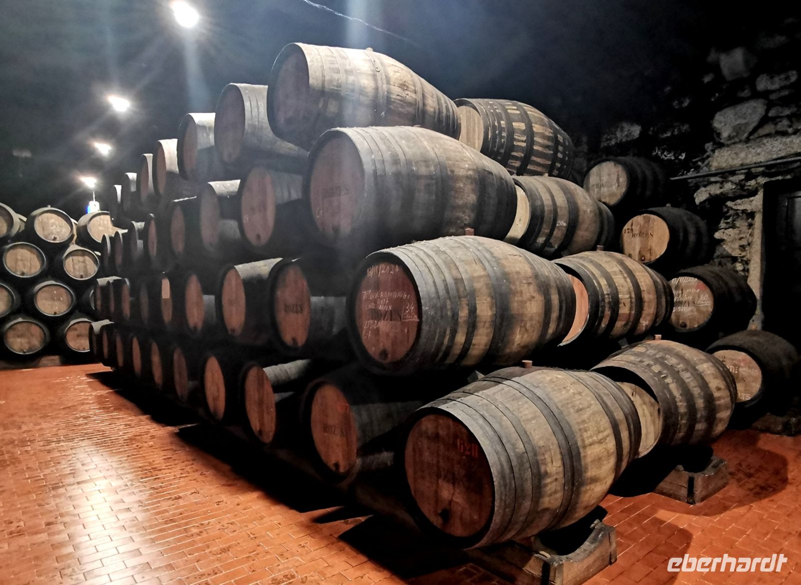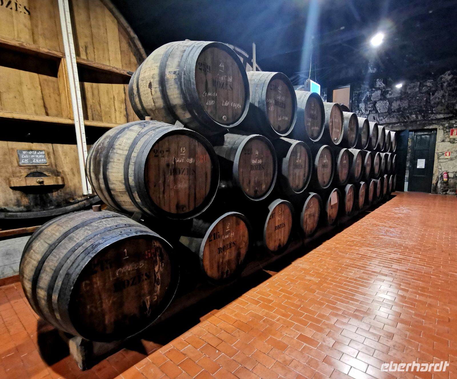 Nach einer knappen Stunde legen wir am gegenüberliegenden Flußufer in Gaia wieder an und spazieren vorbei an etlichen Portweinherstellern, von denen die meisten wohl Sandemann kennen. Ein wenig später kehren wir beim Familienunternehmen Rozes ein und werden gleich in den Keller mit den beeindruckend großen Fässern geführt, wo die gutenTropfen lagern.