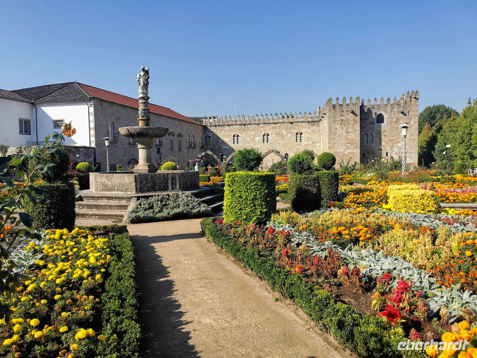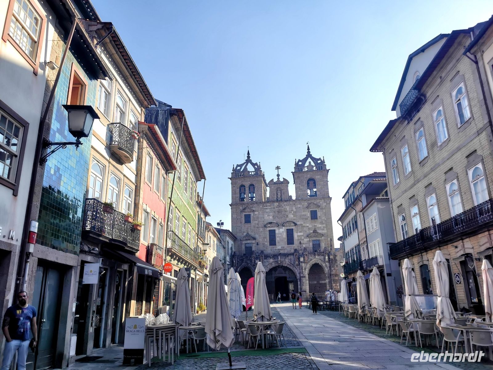 Das Wetter verwöhnt uns erneut mit strahlend blauem Himmel und sommerlichen 28 Grad. Wir wollen heute die Umgebung von Porto erkunden und fahren nordöstlich nach Braga. Diese knapp 200.000 Einwohner zählende Stadt ist das religiöse Zentrum Portugals. Bereits im Jahr 1089 wurde hier die erste Kathedrale des Landes errichtet und der erste Bischof von Portugal hatte hier seinen Bischofssitz. Seitdem entwickelte sich Braga zur religiösen Hochburg und heute findet man hier die höchste Konzentration von religiösen Stätten des gesamten Landes.
