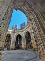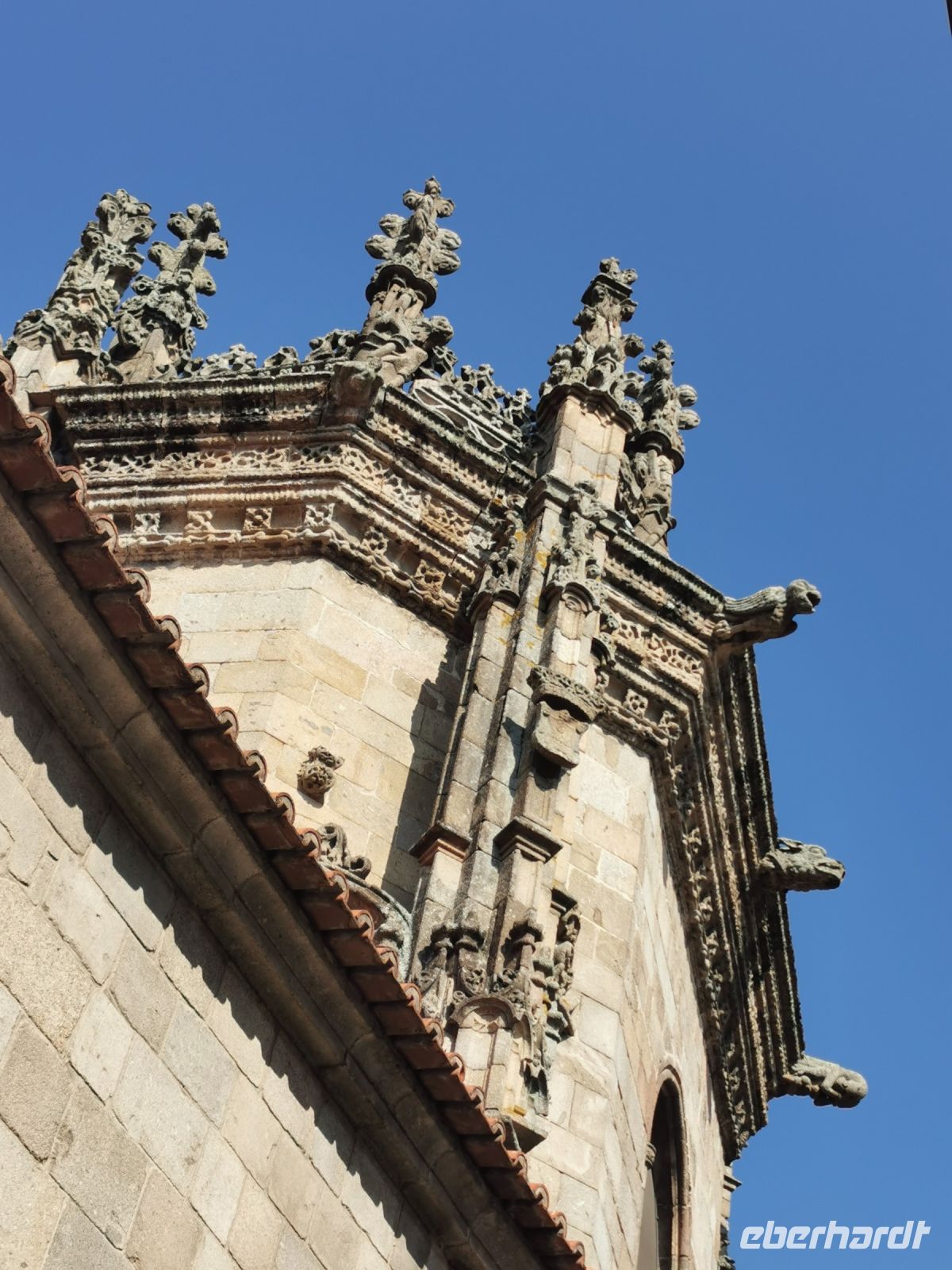 Wir bewundern die Lichtspiele der Glasfenster im Kirchenschiff und schauen uns die unfertige oben offene Seitenkapelle an. Die ganze Anlage ist unglaublich beeindruckend und wir sind ganz gebannt von den vielen zierlichen Elementen, Säulen und Details.