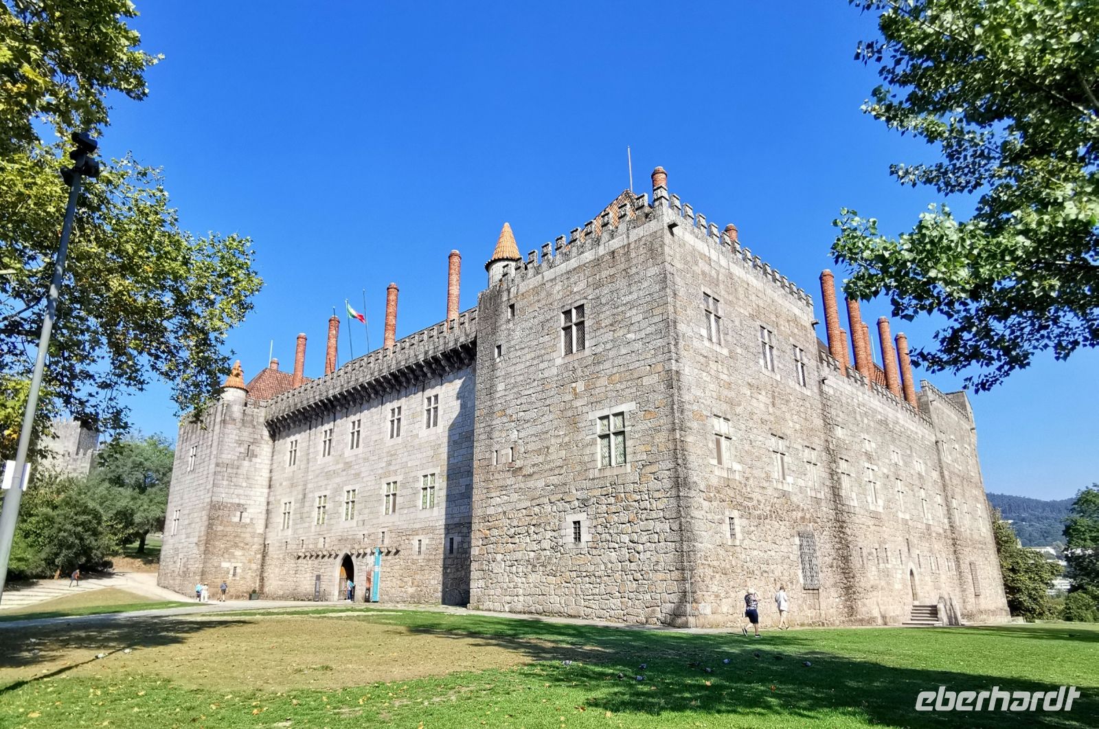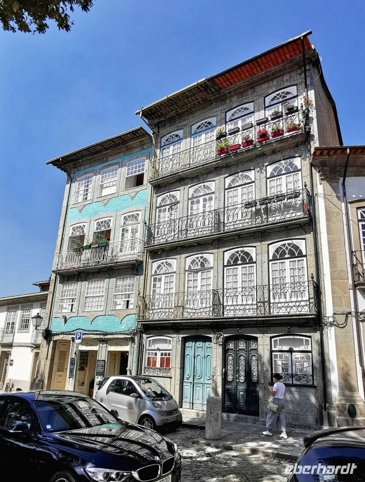 Wenig später holt uns unser Bus ab und wir machen uns auf den Weg nach Guimaraes. Diese Stadt bezeichnen die Portugiesen als die Wiege ihres Landes, da der erste König, Alfonso Henriques I. hier geboren wurde. Die gesamte Altstadt gehört zum UNESCO Weltkulturerbe und wir staunen über das gut erhaltene kulturelle Erbe, die zierlichen Eisenveranden an den Häusern und Balkonen, die eleganten Vorbauten aus Granit, Herrenhäuser, Bögen, die enge Straßen überspannen und Steinplatten, die von der Zeit glatt geschliffen wurden. Wir fühlen uns wie ins Mittelalter zurück versetzt in dieser Stadt, die eine ganz einzigartige Atmosphäre hat.