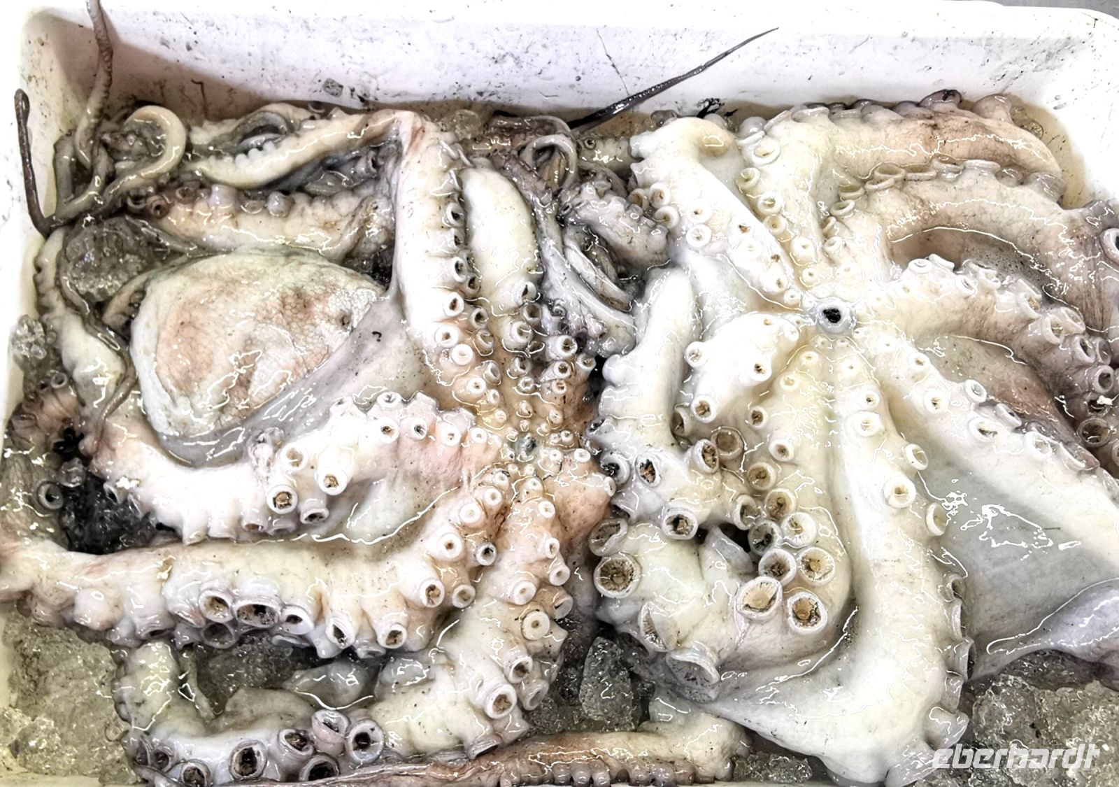 Nach unserer Kanalrunde schauen wir uns den lokalen Fischmarkt an, es gibt Tintenfische, Krebse, kleine Aale und Sepia, zum Glück ist das Frühstück noch nicht so lange her. :-)