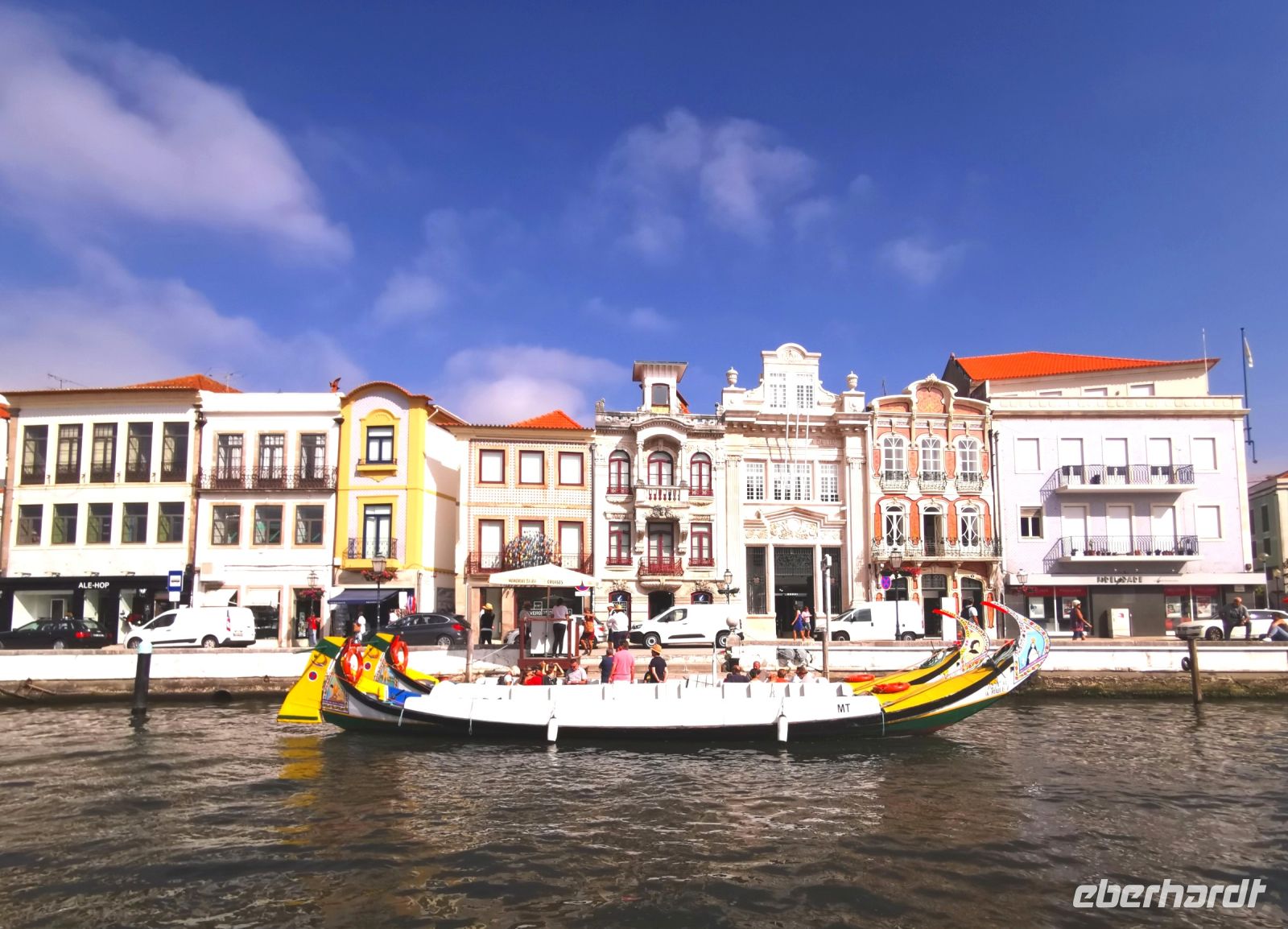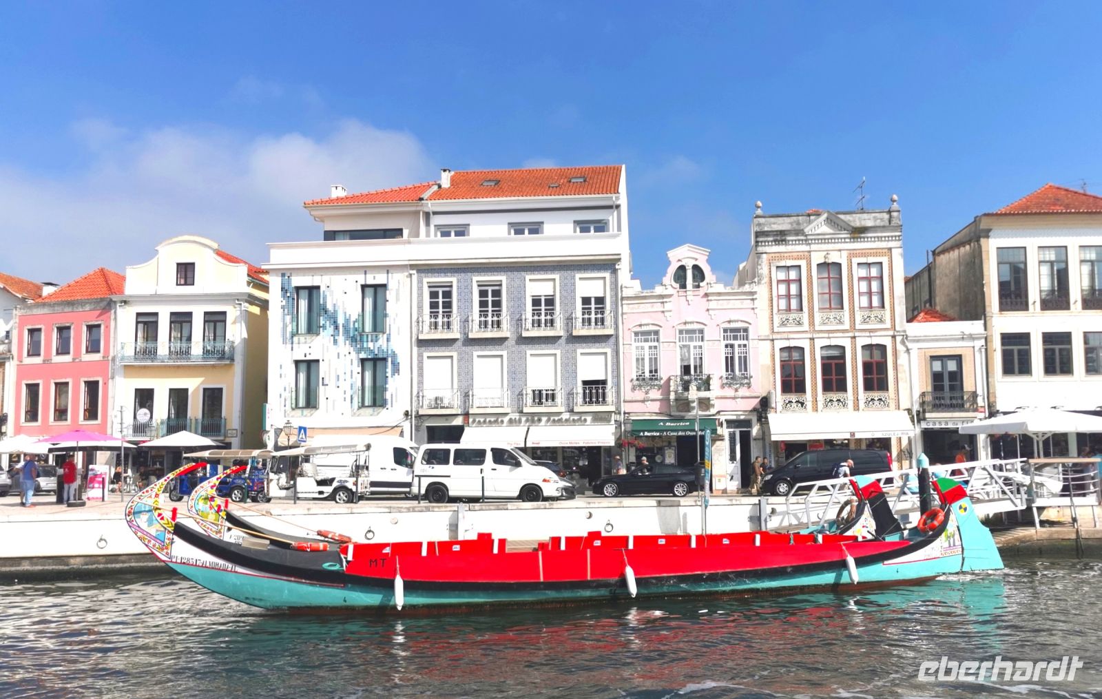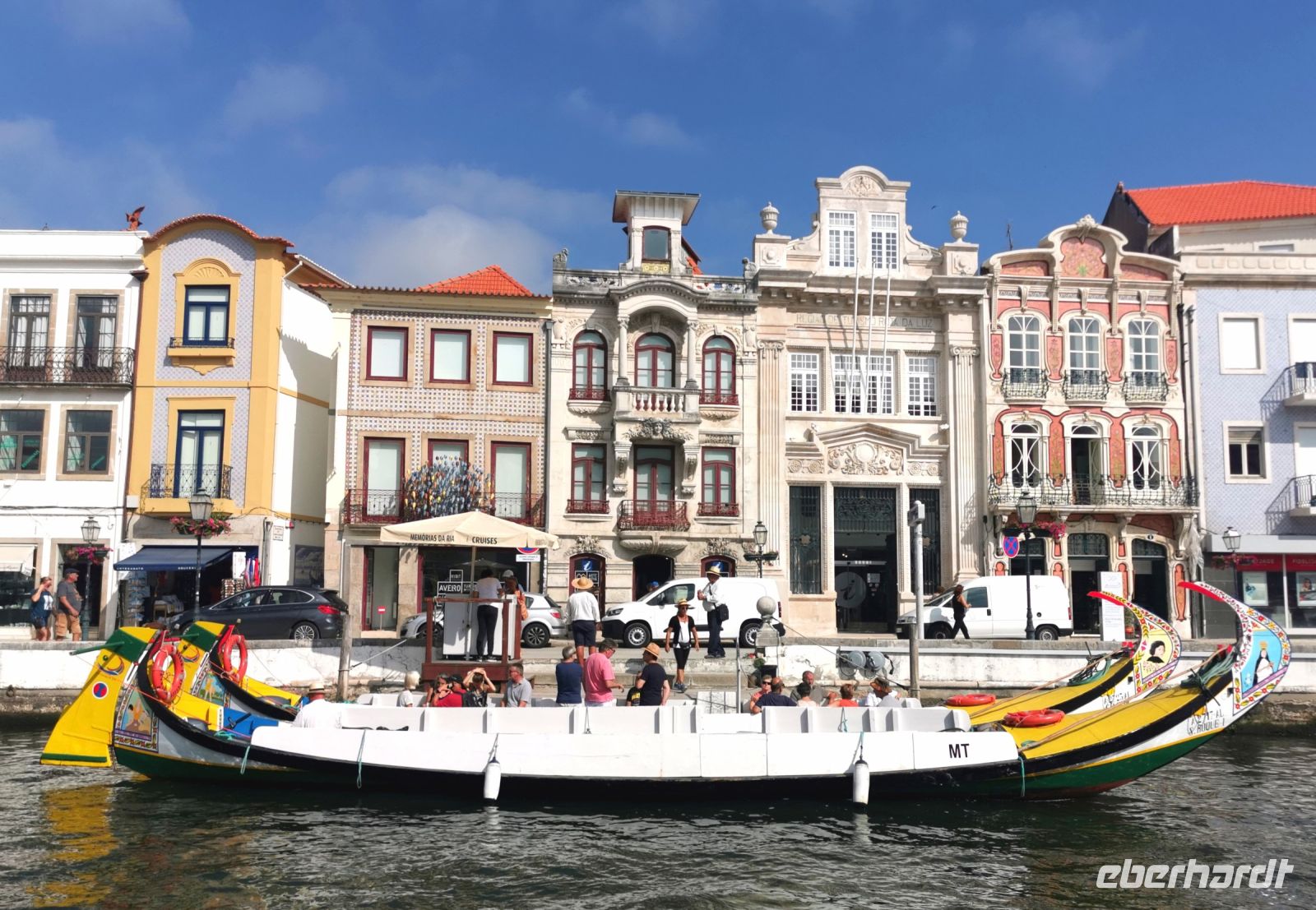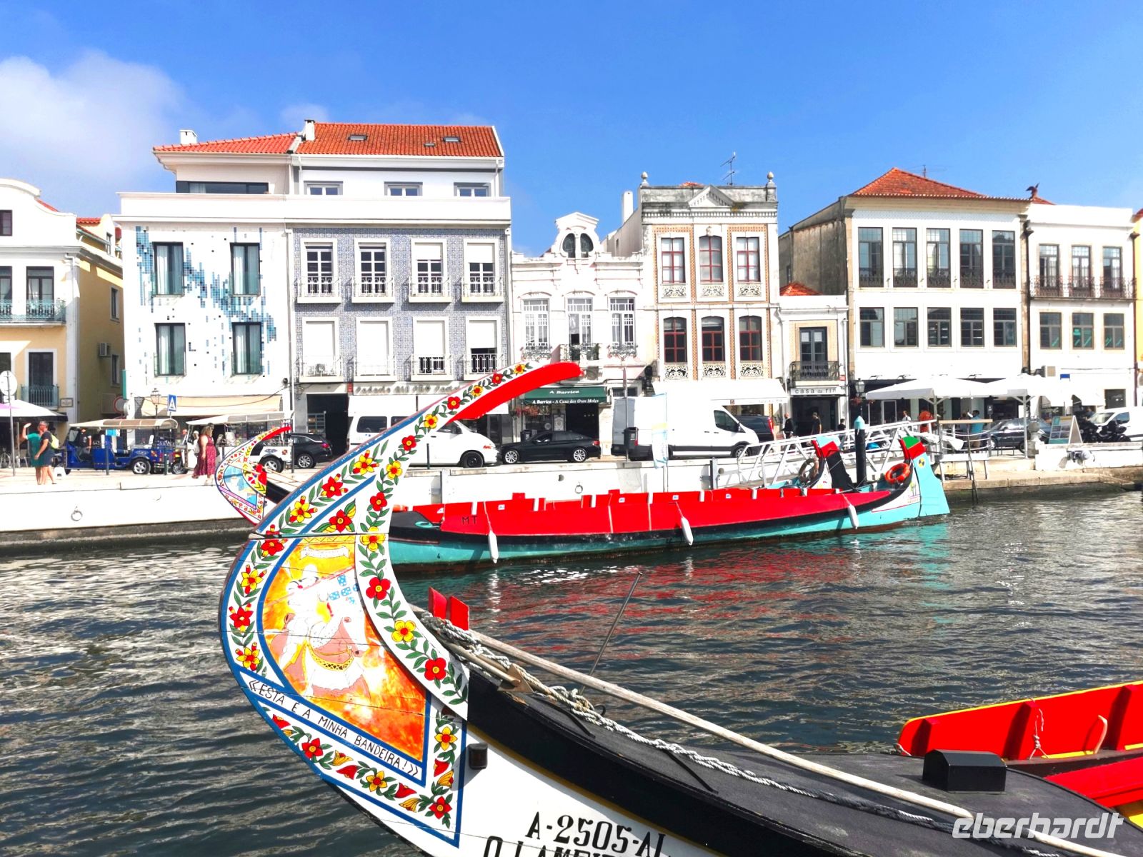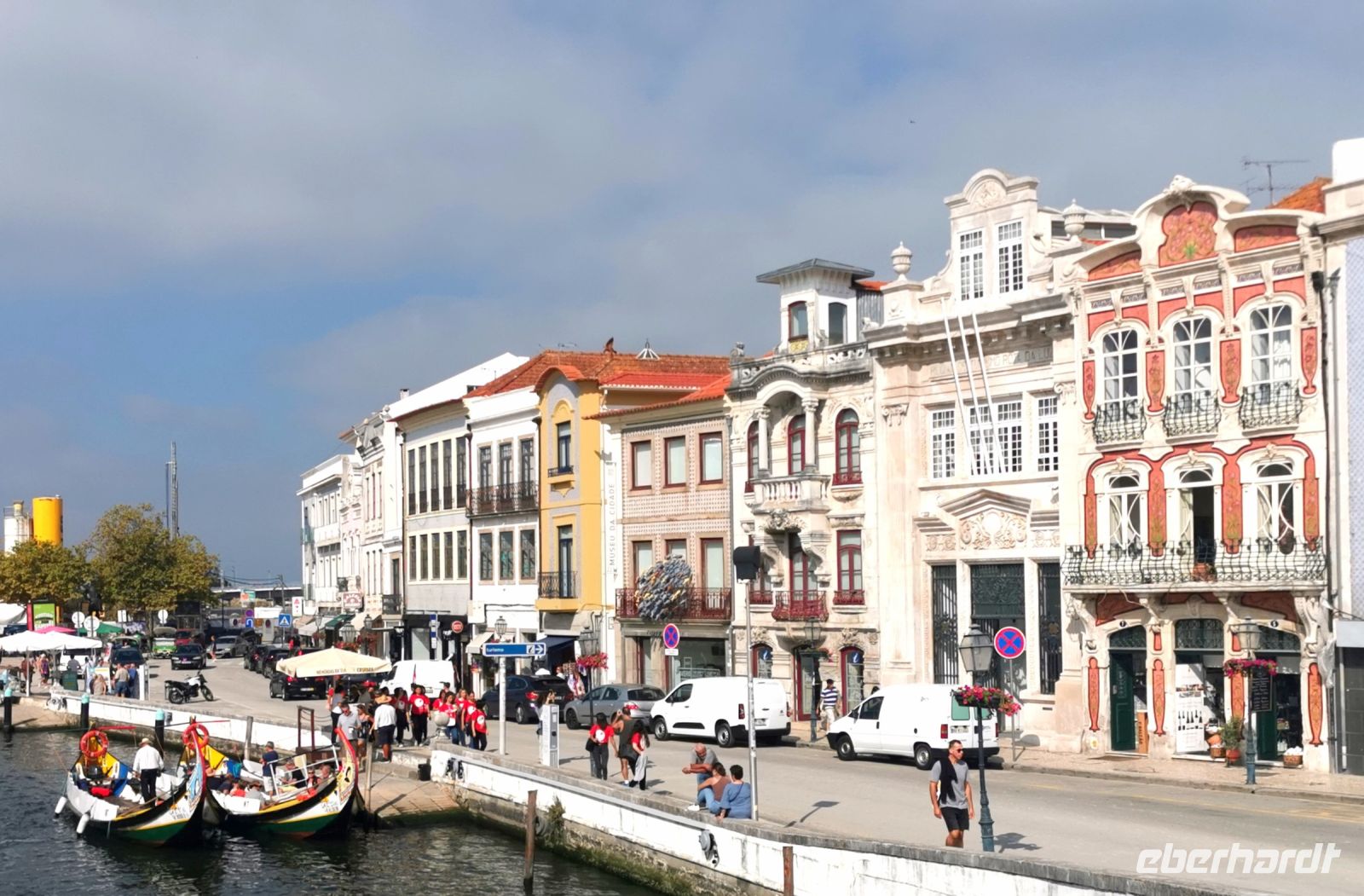 Natürlich wollen wir unterwegs ein wenig vom Land sehen und so halten wir in Aveiro, etwa eine Fahrstunde südlich von Porto. Diese Stadt ist ein beliebtes Reiseziel und berühmt für ihre Kanäle, die Jugendstilarchitektur und die farbenfrohen Traditionsboote, die von den Portugiesen Moliceiros genannt werden.
