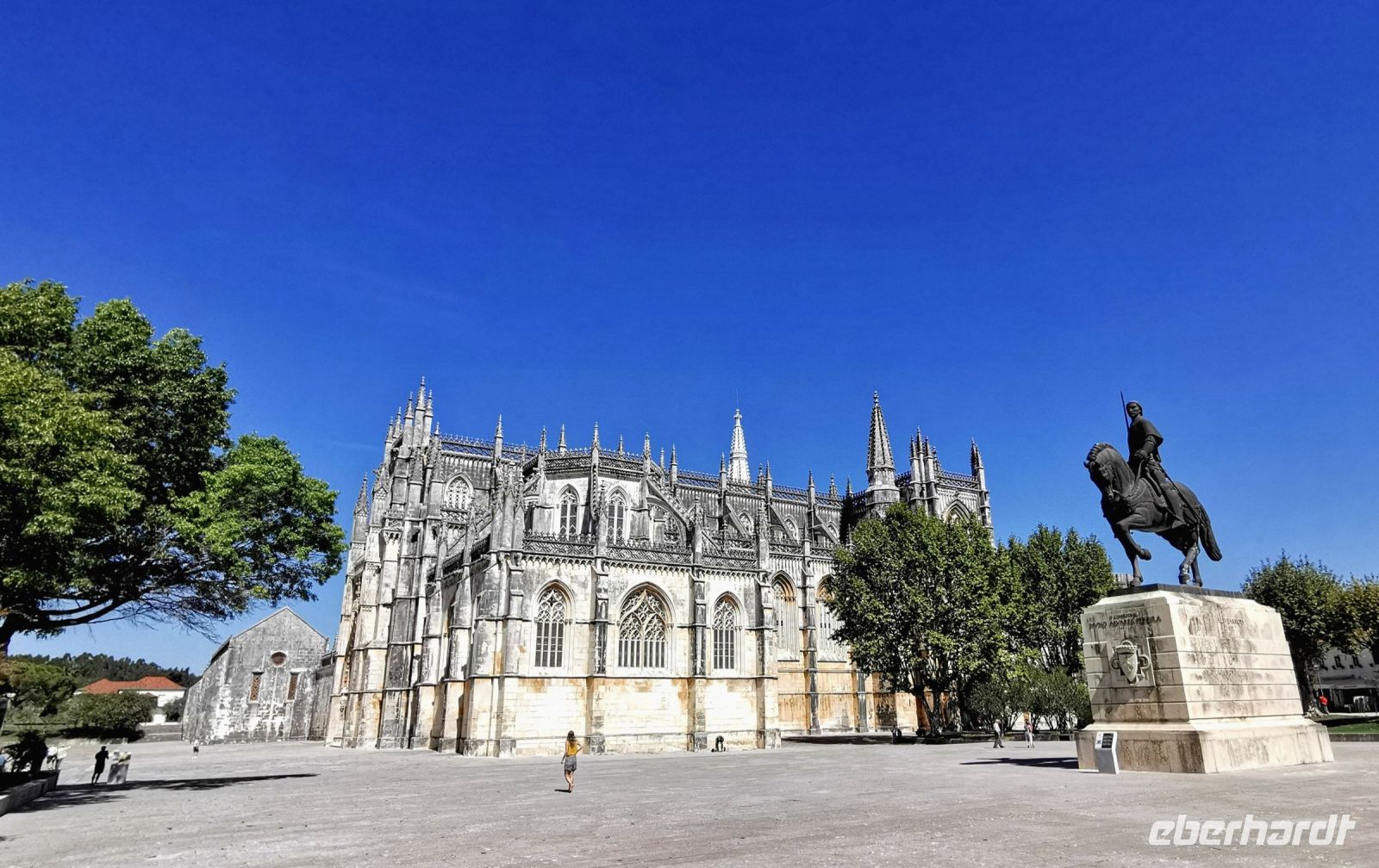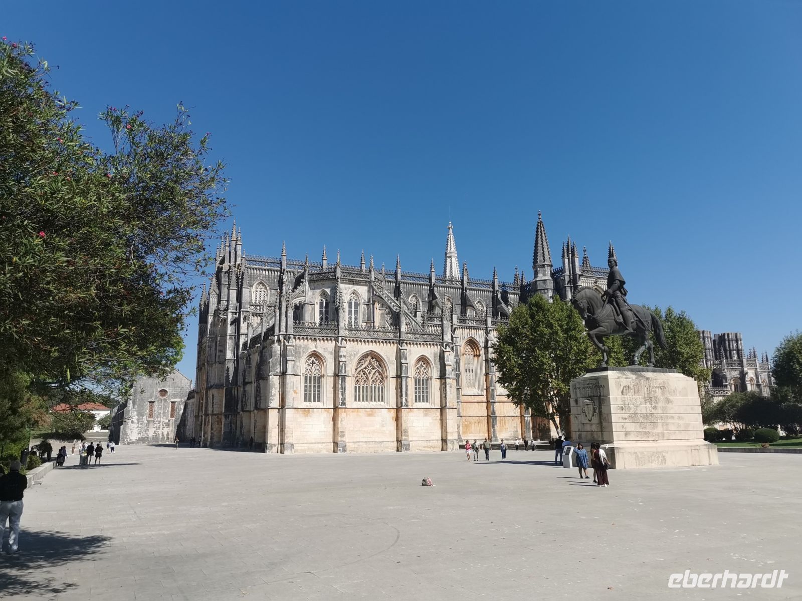 Vor dem Kloster sehen wir die riesige Statue von Nuno Alvares Pereira, genau dem Feldherren, der die Portugiesen zum Sieg geführt hat.