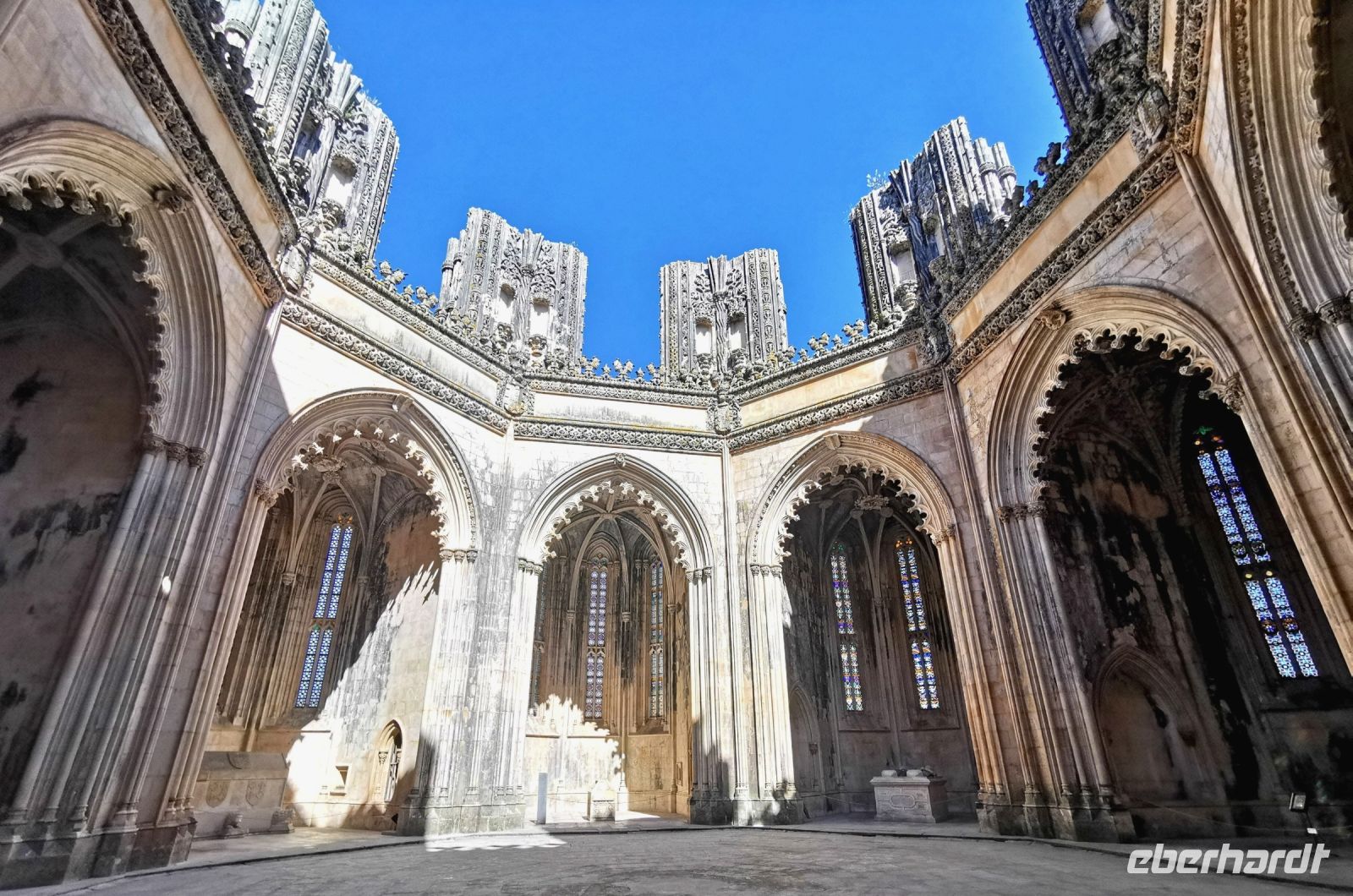 Um die Mittagszeit brechen wir in Richtung Süden auf. In Batalha halten wir, einer Kleinstadt mit nur knapp 8.500 Einwohnern. Wir wollen dem berühmten Kloster, dem Mosteiro de Santa Maria da Victoria aus dem 14. Jahrhundert einen Besucht abstatten. Das Dominikanerkloster wurde als Dank für Portugals Sieg in der Schlacht von Aljubarrota über Kastilien errichtet und gehört seit 1983 zum UNESCO Weltkulturerbe.