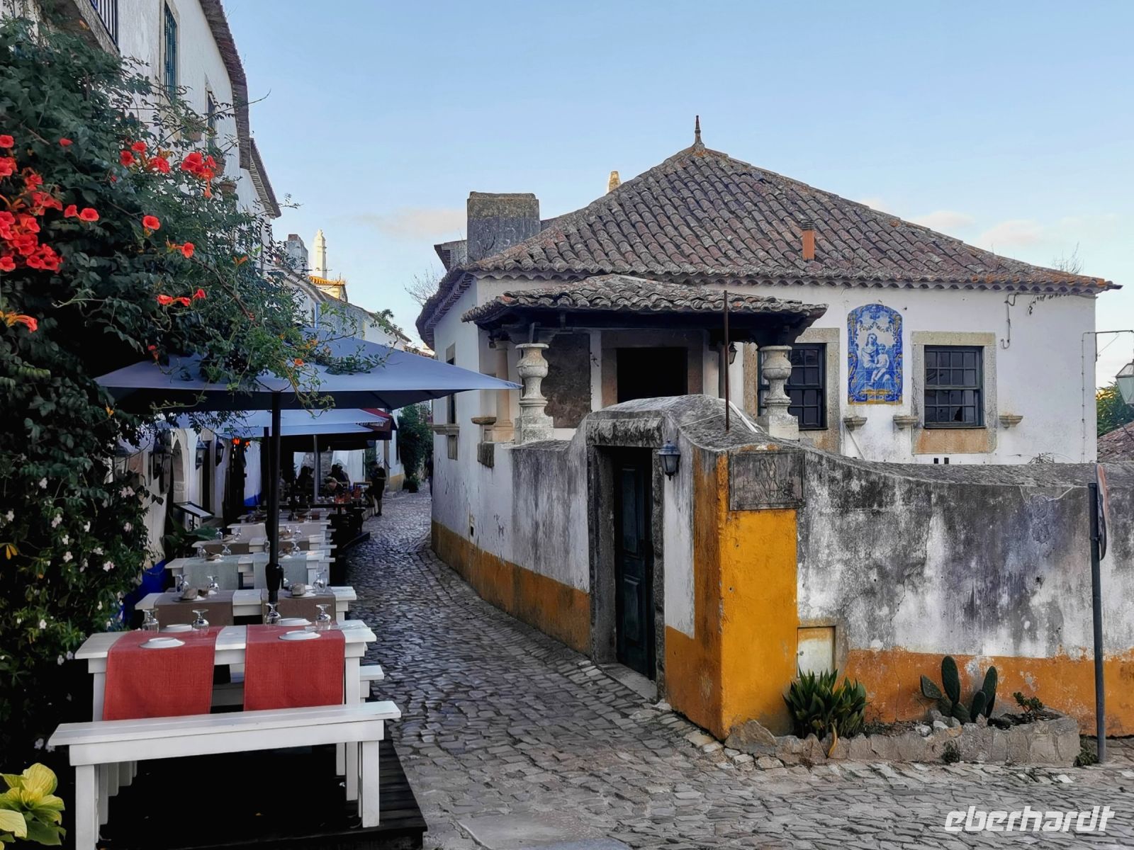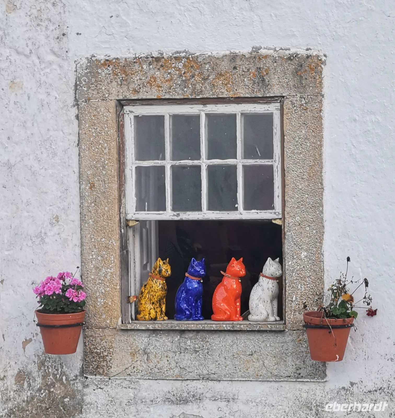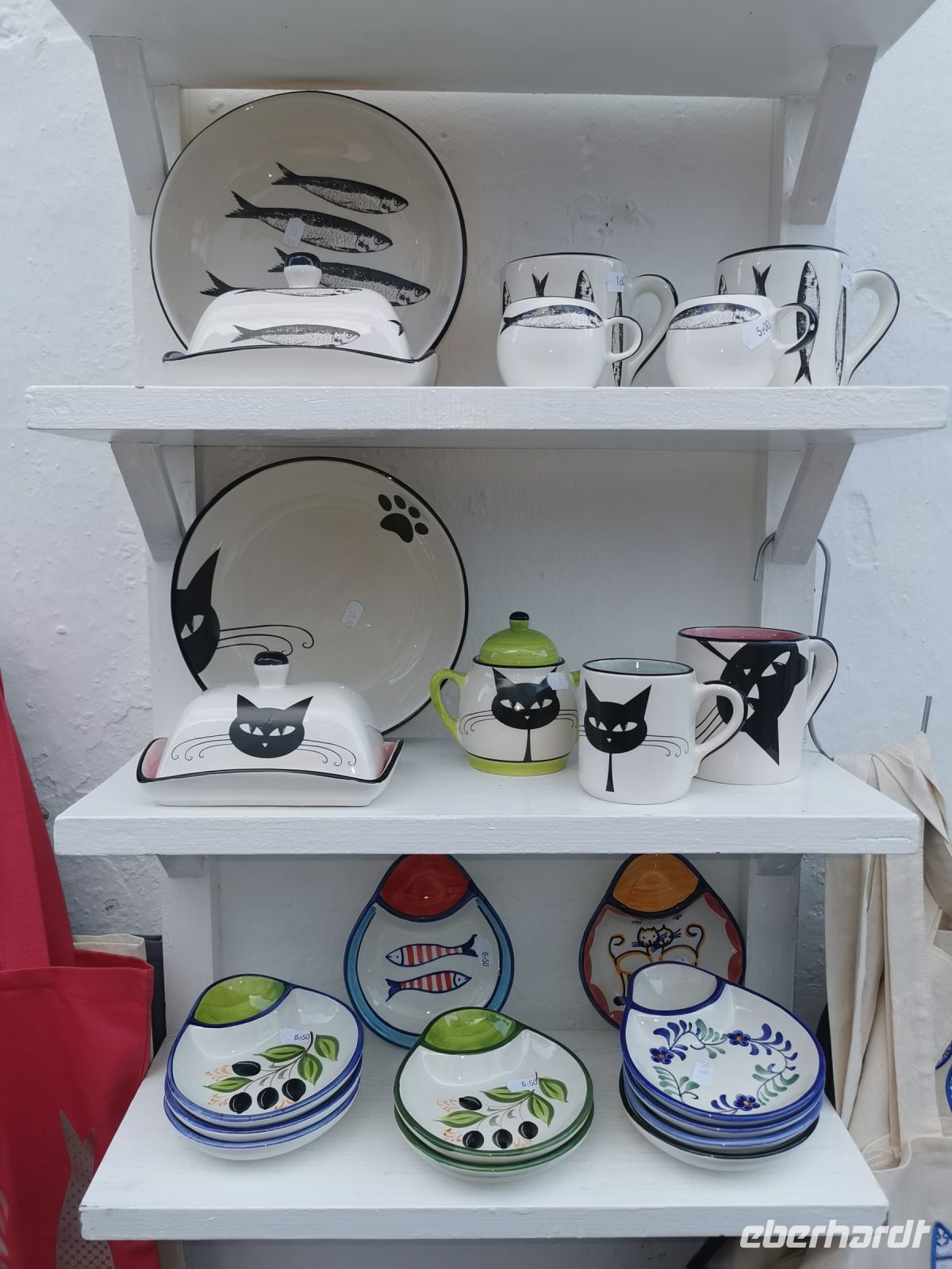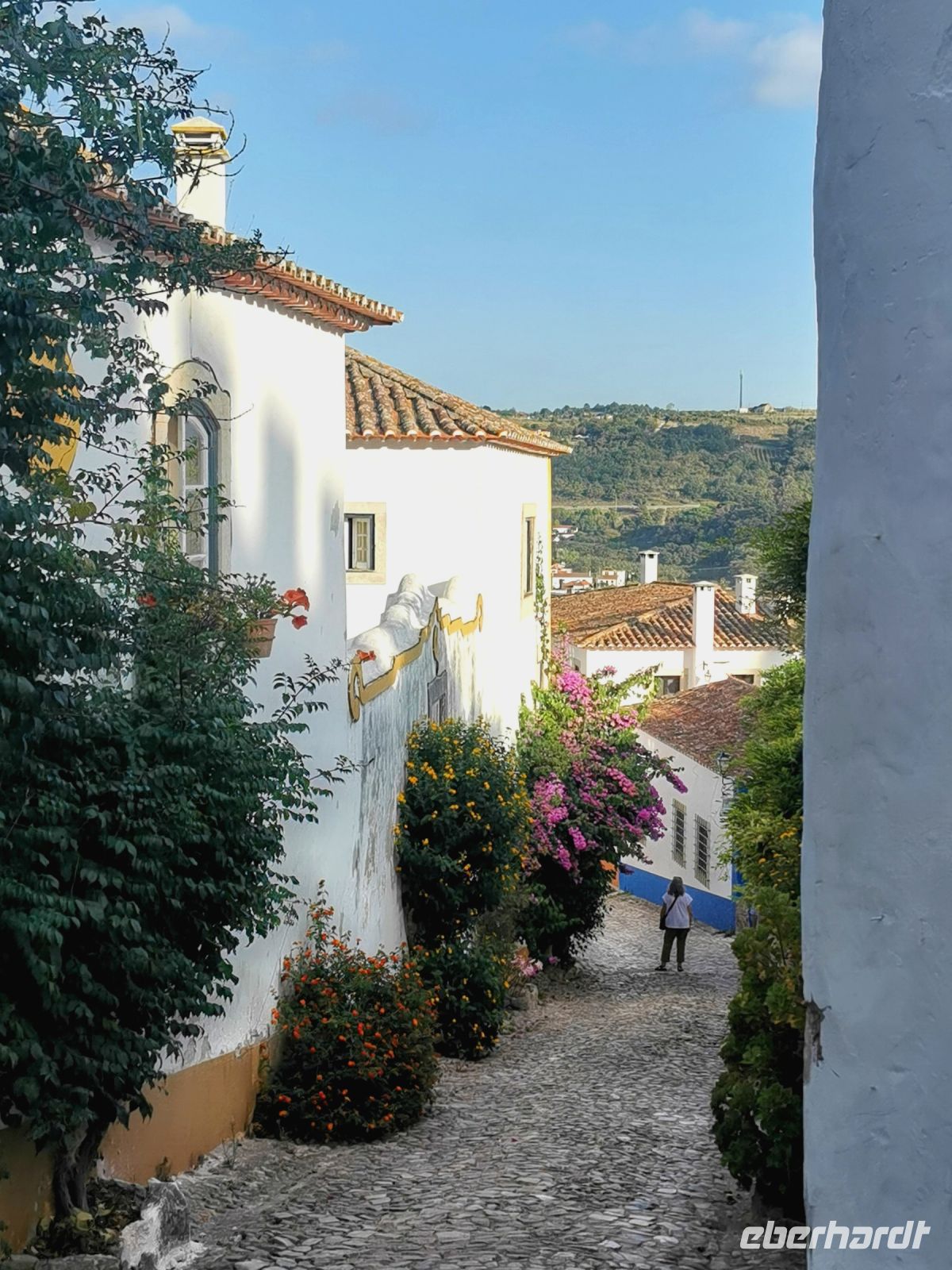 Bei unserem Spaziergang probieren wir einen traditionellen Kirschlikör aus eßbaren Schokoladentässchen und im Anschluß inspizieren wir die Gassen und vor allem die wunderhübschen kleinen Lädchen von Obidos und wollen so gar nicht weg.