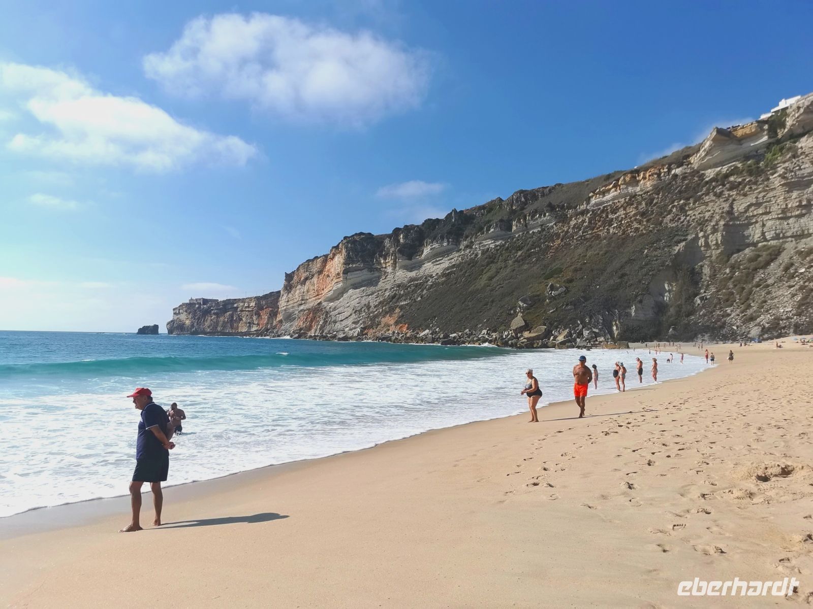 Nach so viel Kulturgenuß wollen wir im Badeort Nazaré am Atlantik ein wenig entspannen. Dieser bildhübsche Ort am Meer punktet vor allem mit dem traumhaft schönen Sandstrand und den unzähligen bunten Sonnenschirmen. Wir halten die Zehen ins Wasser, der Atlantik ist allerdings heut recht wellig und wir trauen uns nicht hinein. Die Badesaison ist obendrein schon vorbei und das Wasser hat gerade noch 16 Grad. Also schauen wir uns die postkartengleiche Kulisse lieber vom Eiscafé aus an und genießen ein wenig Urlaubsflair an der Atlantikküste.