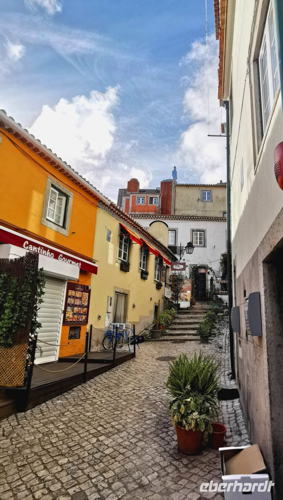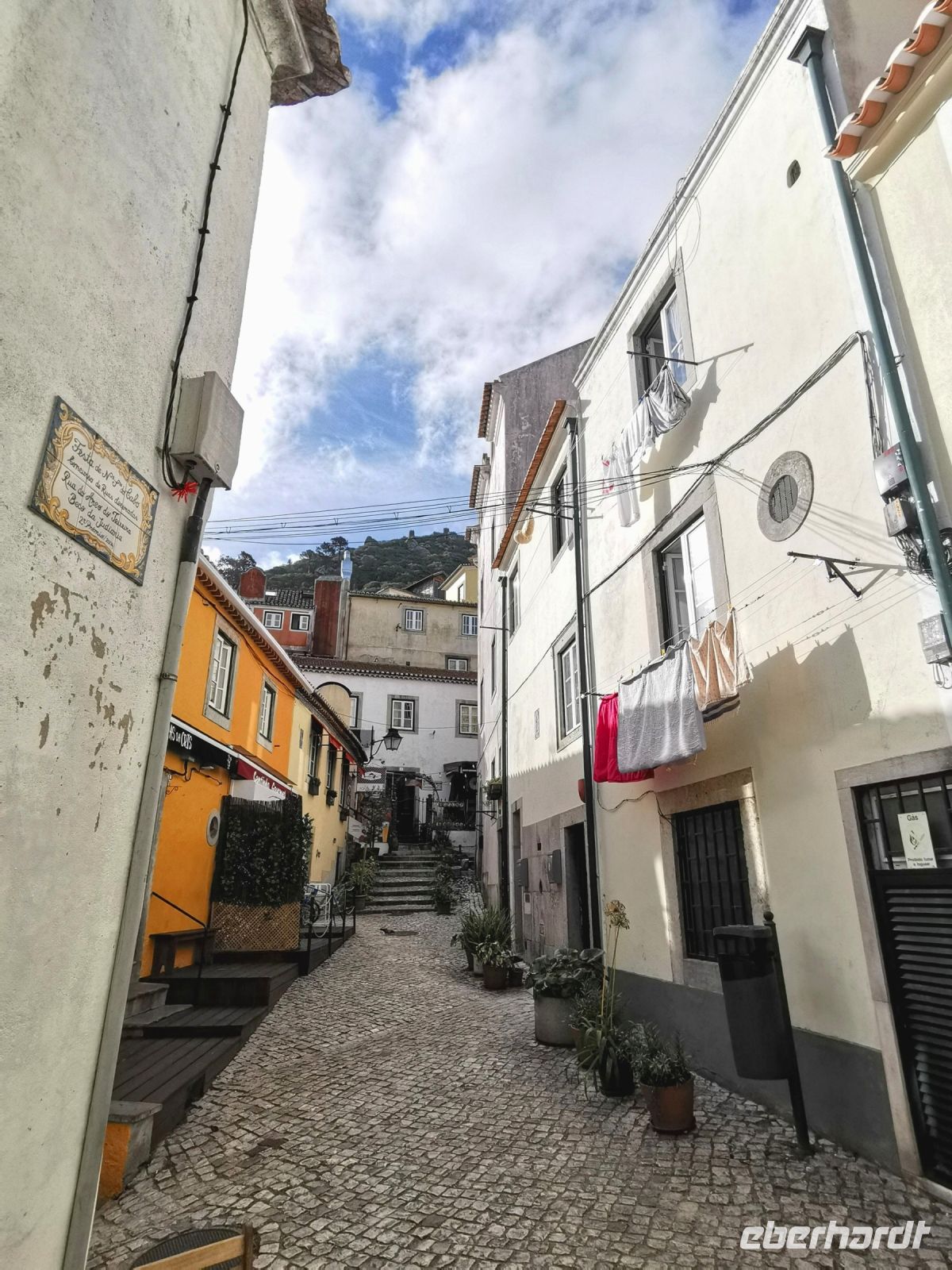 Wir besuchen heute Sinta, die Heimatstadt unserer Reiseleiterin Isabel, eine reizende Stadt inmitten der kühlen Hügel der Serra de Sintra. Hier verstecken sich zwischen Pinienwäldern und Hügeln skurrile Paläste, verschwenderische Villen und über allem thronen die Ruinen einer maurischen Burg. Die Mischung an faszinierenden historischen Bauten kombiniert mit einer wunderschönen Naturlandschaft machen Sintra zu einem beliebten Ausflugsort für Einheimische und Gäste. Gerade mal 30.000 Einwohner leben hier und wir spazieren mal wieder steile enge Gassen hinauf, in denen kleine Bäckereien und Spezialitätenläden ihre Waren feil bieten.