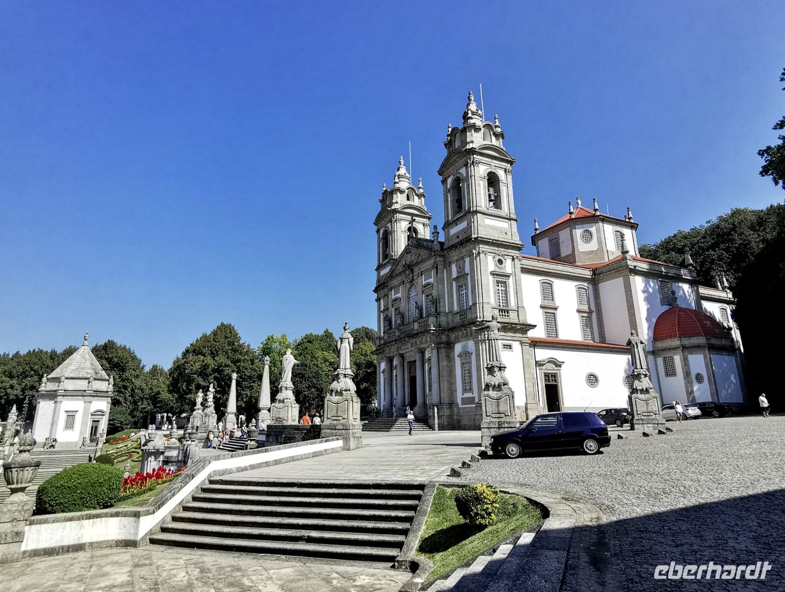 Nach einem Stadtspaziergang fahren wir zum wohl eindrucksvollsten Monument Nordportugals: Bom Jesus do Monte. Zu diesem Heiligtum fährt eine wasserbetriebene Seilbahn steil den Berg hinauf. Die Pilger, die hierher kommen, rutschen auf Knieen die vielen Stufen hinauf, die den Aufstieg in den Himmel symbolisieren. Seit 2019 zählt diese Wallfahrtsstätte zum UNESCO Weltkulturerbe und der Kirche wurde 2015 durch Papst Franziskus der Titel einer Basilika minor verliehen.