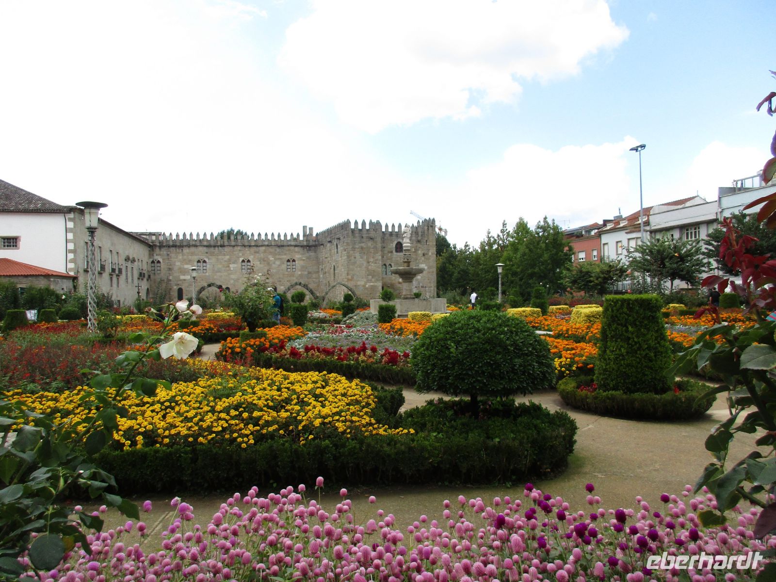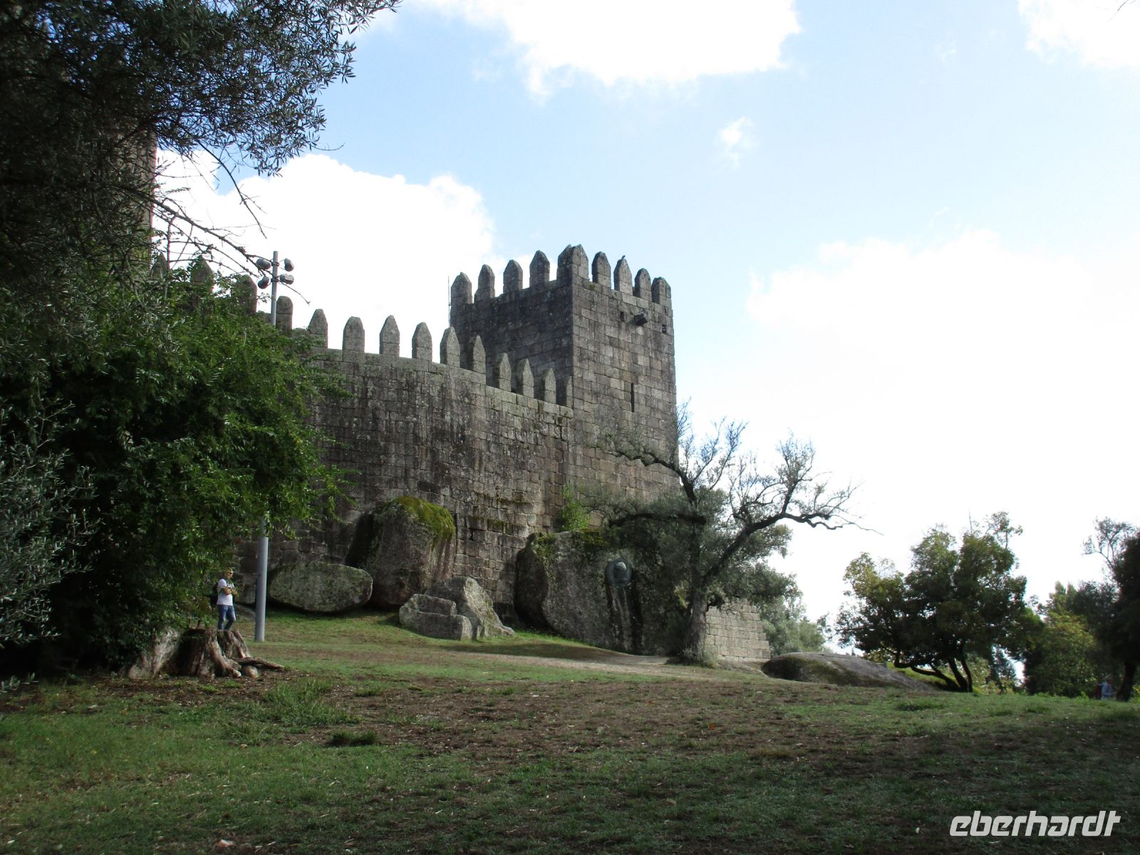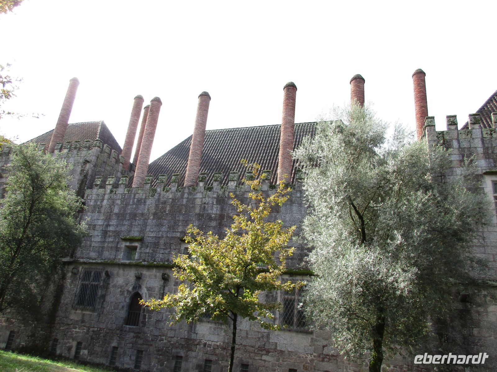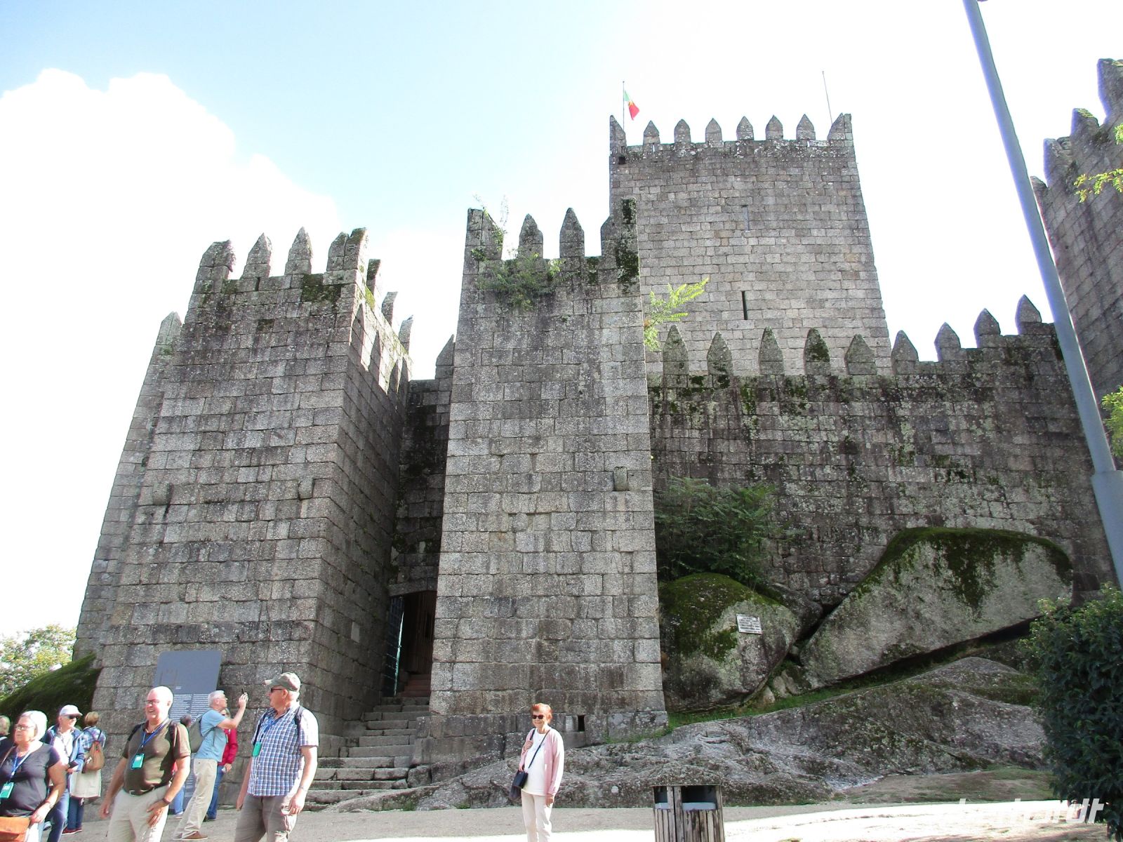 Heute fahren wir in den Norden ins grüne Minho. Zuerst erreichen wir Guimaraes. Hier wurde der erste König Dom Afonso I. Henriques geboren, auf der Burg, die Mumadona Dias, die mächtigste Frau im Nordwesten der Iberischen Halbinsel bis Mitte des 1000. Jhd., nach ihrem Tod stiftete. Im Ort selbst stiftete sie das Kloster Sao Mamede. 200 Jahre später festigte und befriedete Afonso I. die Grafschaft Portucale und wurde so der erste König Portugals.
