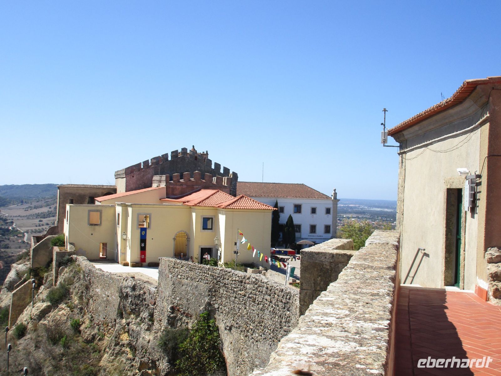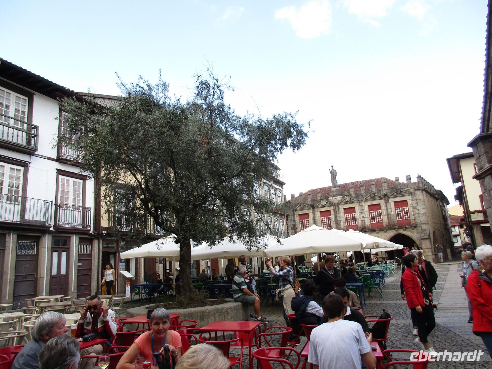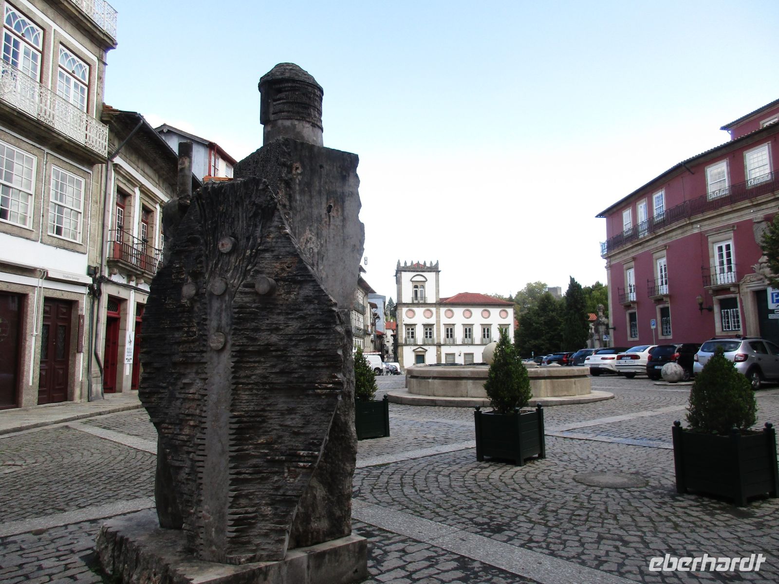 Wir bewundern das Schloss der Herren von Braganza, vor dem ein monumentales Denkmal von Dom Afonso Henriques steht und laufen gemütlich in den Ort. Die kleinen Gassen und der Platz mit dem Olivenbaum versetzen uns zurück in die Vergangenheit und wir freuen uns, dass alles gepflegt und erhalten wird.