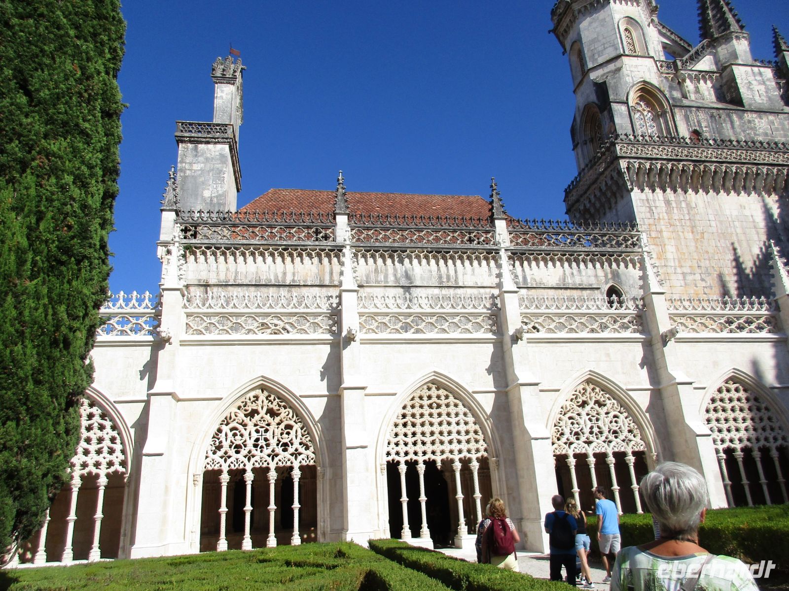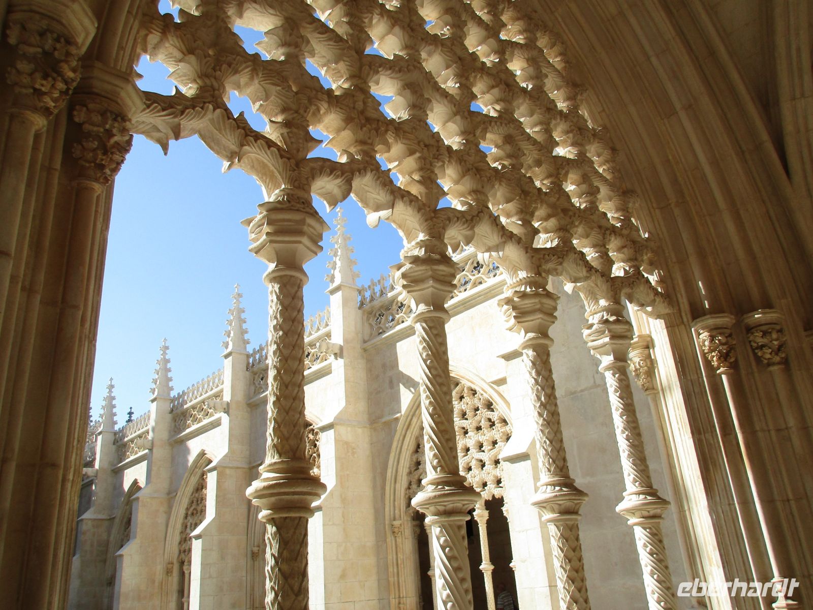 Mit gepackten Koffern geht es heute nach dem Frühstück vom Büffet weiter. Wir fahren in das „Portugiesische Venedig“. Vier Kanäle durchqueren die Stadt, durch die die Besucher in typischen Booten chauffiert werden. Interessant für uns sind die Schilderungen der Salzgewinnung. Ein hübscher Ort, der auch für seine Pastetchen berühmt ist. Weiter geht unsere Tour zur Costa Nova, ein ganz bezaubernder Ort mit einer traumhaften Küste. Ein Sandstrand wie aus dem Bilderbuch erwartet uns hier. Auch hier könnten wir länger bleiben, aber nach unserer Mittagspause zieht es uns weiter. Ein nächster Höhepunkt ist das Kloster Batalha, was so viel wie „Schlacht“ bedeutet. Nuno Álvares Pereira kämpfte im Auftrag des Königs gegen die Kastilier und gewann 1385 siegreich die entscheidende Schlacht von Aljubarrota. Seine Statue steht majestätisch vor dem gewaltigen, schönen Kloster. Damit war der Weg frei für die zweite portugiesische Dynastie aus dem Hause Avis. Johann I. wird König und durch seine Heirat mit der englischen Prinzessin Filipa de Lencastre ein starker Herrscher mit starken Verbündeten. Aus Dankbarkeit an die gewonnene Schlacht ließ der König vom 14.-16. Jhd. das Kloster Santa Maria da Vítória errichten: der ehrfürchtige Bau misst 88 m Länge und 32 m Höhe. Die Gründerkapelle ist Grablege der königlichen Dynastie Avis mit dem Königspaar und ihren Kindern bis auf Duarte, der mit seiner Gattin Leonor in den unvollendeten Kapellen liegt.