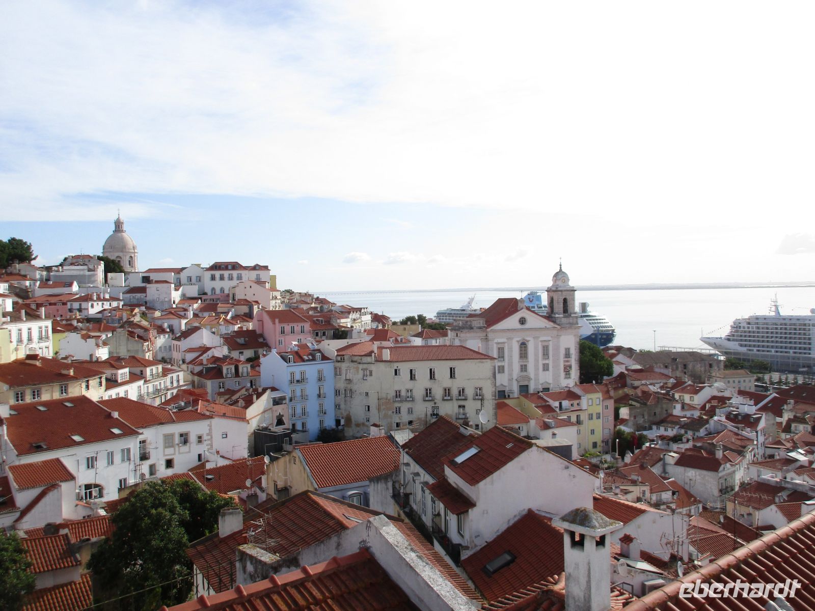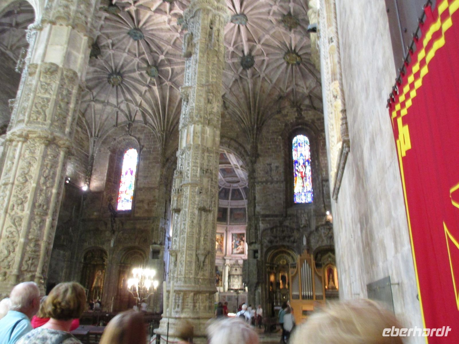 Heute steht die Hauptstadt auf unserem Programm. Heute haben 5 Kreuzfahrtschiffe angelegt – was für eine Zumutung! Aber wir haben ja unseren Joao. Der Bus bringt uns bis zur Alfama – weiter darf er nicht - und wir erobern die Burg per pedes. Wir widmen uns dem Castelo Sao Jorge und genießen die wunderbare Aussicht auf den Tejo und ihre Brücken. Der Blick auf die typischen roten Dächer der Alfama, des Barrio Alto und El Rossio ist traumhaft. Auf unserem Weg zurück lädt uns Reiseleiterin Guni zur Verkostung eines typischen Pastetchens ein. Dann geht es weiter nach Belém, wo wir erst einmal eine Mittagspause einlegen. Nun besuchen wir das stattliche Hieronymuskloster. Auch hier müssen wir uns in eine lange Schlange einreihen. Guni erklärt uns die Kirche ausführlich und berichtet viel über die Geschichte des Klosters. Wir haben genug gesehen. Viele Gäste möchten Lissabon noch einmal auf eigene Faust erkunden und wir lassen Sie im Zentrum aussteigen.