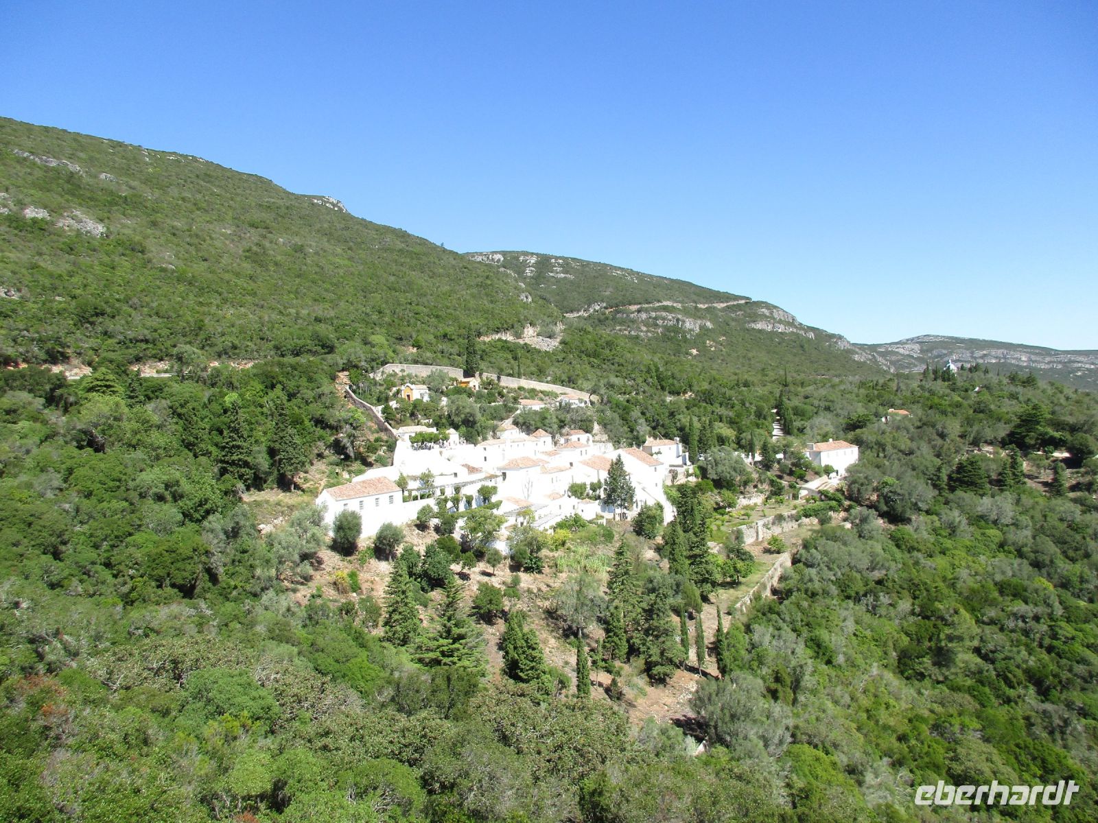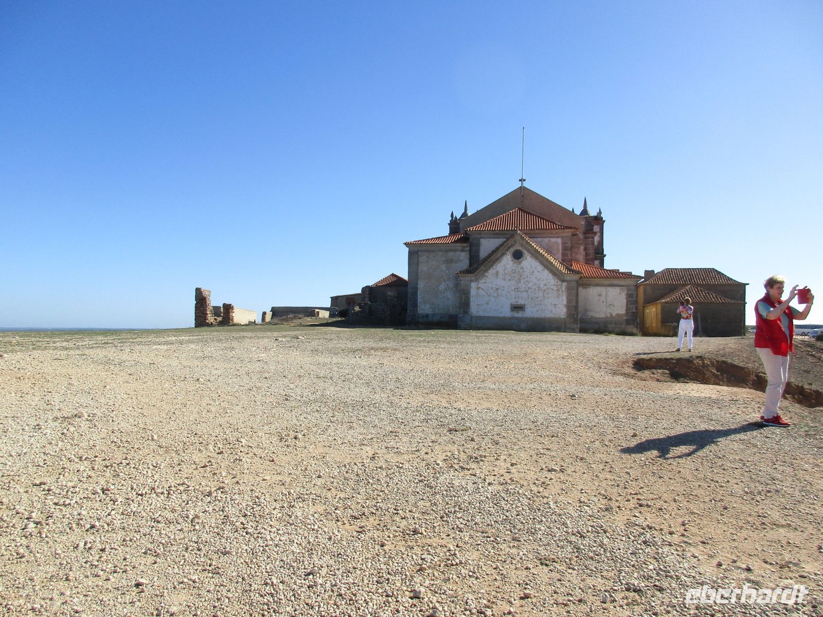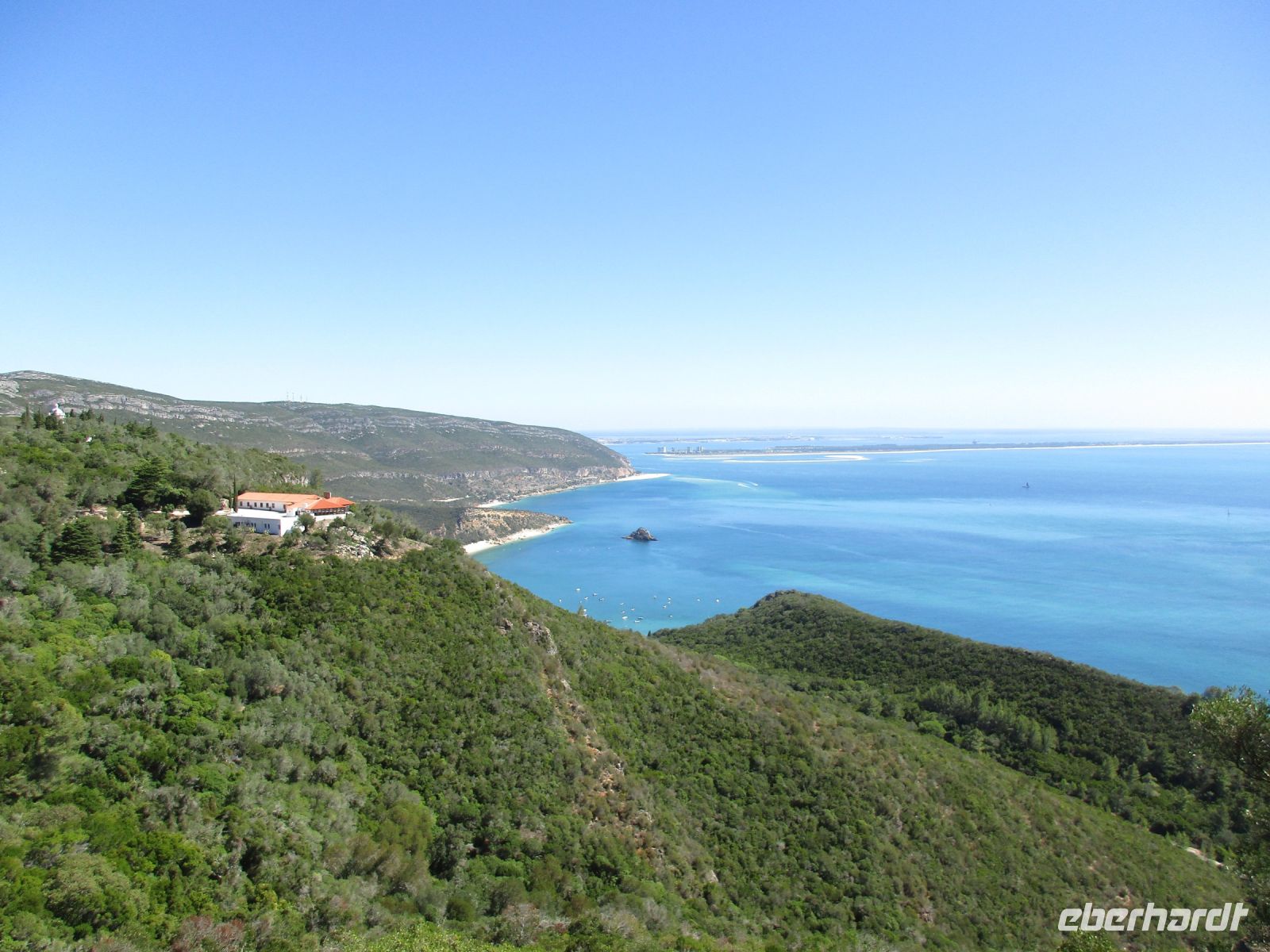 Heute erwartet uns ein außergewöhnlich schöner Ausflug in die nähere Umgebung Lissabons. Von der Burg in Lissabon aus konnten wir das Arrábida – Gebirge schon erkennen, nun sind wir sehr gespannt. Nach einer knappen Stunde Fahrt erreichen wir ein landschaftliches Keinod – das Cabo Espichel. Hier gab es mal ein Kloster mit Pilgerunterkünften, die sehr zerfallen aussehen. Die barocke Wallfahrtskirche ist noch gut erhalten. In der Ferne am südlichsten Zipfel erkennt man den kleinen Leuchtturm aus dem 18. Jhd. Steilküste und der Ausblick auf das Meer sind unbeschreiblich schön. Von hier aus befinden sich Lissabon ca. 45 km und Setúbal 40 km entfernt.