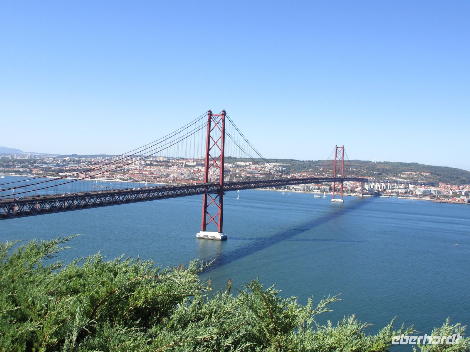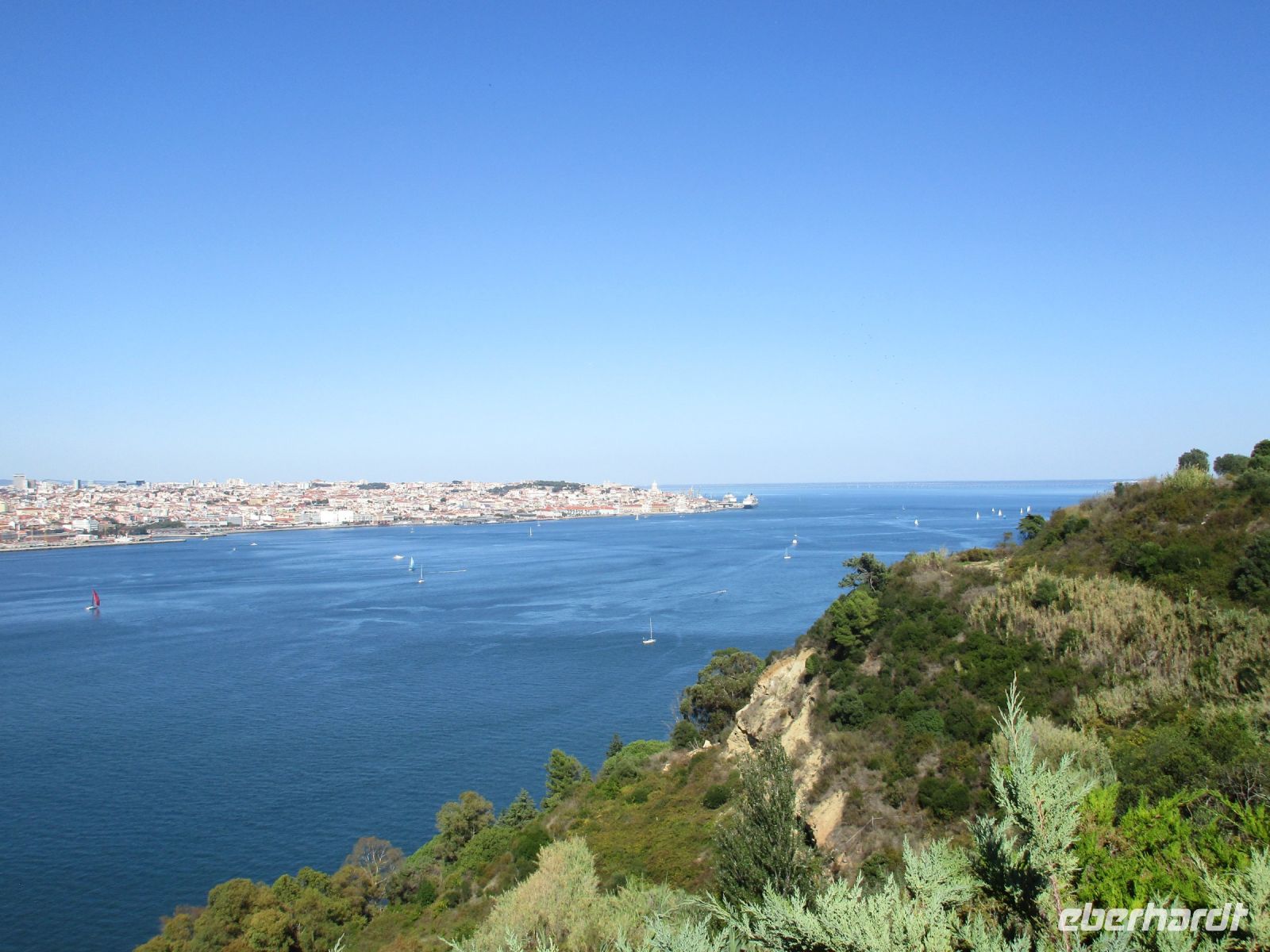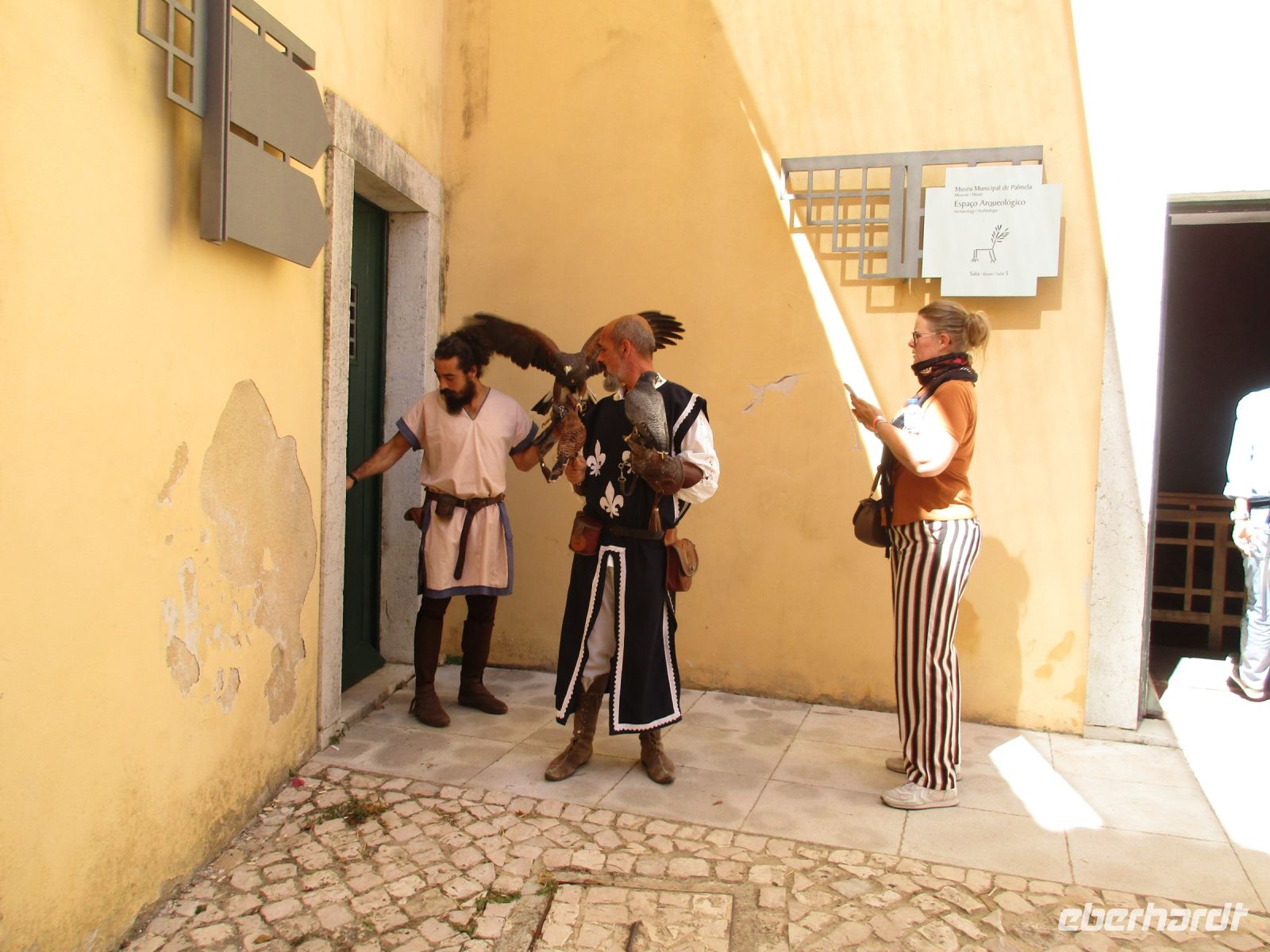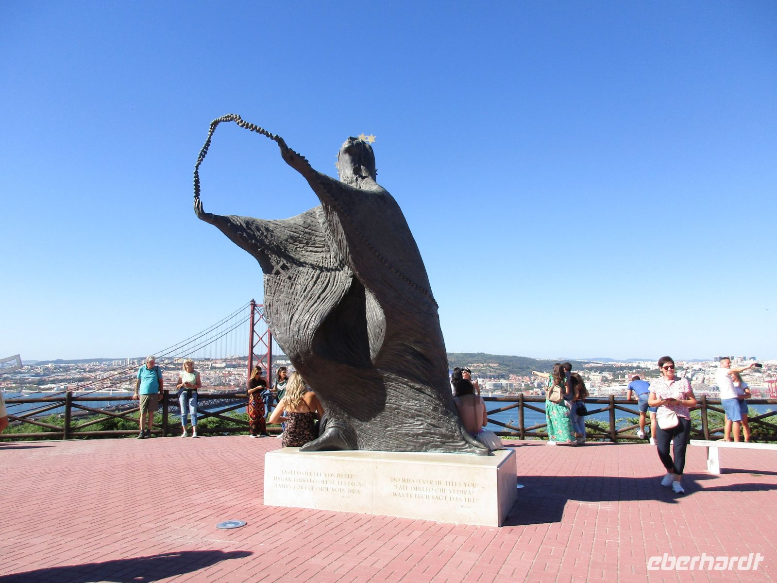 Ein riesiger Parkplatz lädt die Besucher zum Verweilen ein, aber wenige sind da. Einige Camper nutzen das großzügige Angebot der Natur und der Stille auf diesem weiten Areal. Wir sind einfach nur begeistert! Die Investoren stehen allerdings schon bereit und wollen hier bauen… wie schade. Nachdem wir unsere Fotos geschossen haben, geht es weiter nach Sesimbra. Der Ort wird auch als die Perle von Portugal bezeichnet. Das ehemalige Fischerdorf liegt auf der Halbinsel von Setúbal. Der feinsandige Strand in der Stadt wurde künstlich angelegt und erfreut sich vieler Besucher. Hier würden wir unsere Reise sofort verlängern und die Spa- und Wellnessangebote nutzen. Aber wir wollen noch mehr erkunden. Vorbei am Kloster direkt am Berghang, Convento da Arrábida, fahren wir nach Palmela. Mitten im Ort auf einem Hügel erhebt sich die Burg Palmela, wo heute ein Burgfest mit Ritterspielen und mittelalterlichen Märkten stattfindet. Wir kommen gerade richtig zur Eröffnung und kosten einige Leckereien und Getränke. Leider können wir nicht länger verweilen, denn der krönende Abschluss soll der Besuch der König-Christus-Statue Cristo Rei sein. Falls Gott Portugal vom II. Weltkrieg verschont, gelobten die Bischöfe 1940, würden sie eine Christus Statue wie in Rio de Janeiro errichten. Das geschah 1949 und dauerte 10 Jahre. 1959 weihten die Erzbischöfe und etwa 300.000 Menschen diese Statue in Almada ein. Seitdem thront sie über Lissabon und ist ein Wahrzeichen der Stadt. Wir blicken von hier aus über den Tejo und die Brücke des 25. April und sagen obrigado und adeus Portugal, denn morgen Abend werden wir schon wieder zu Hause sein.