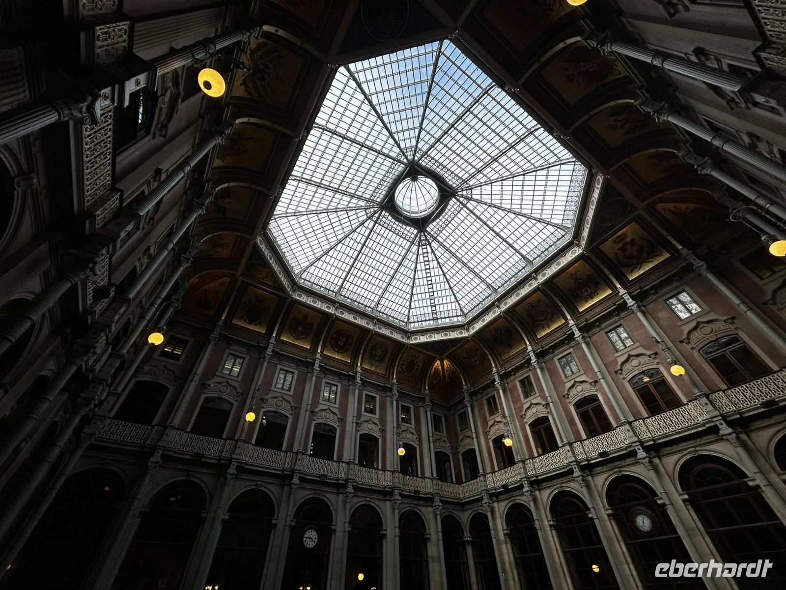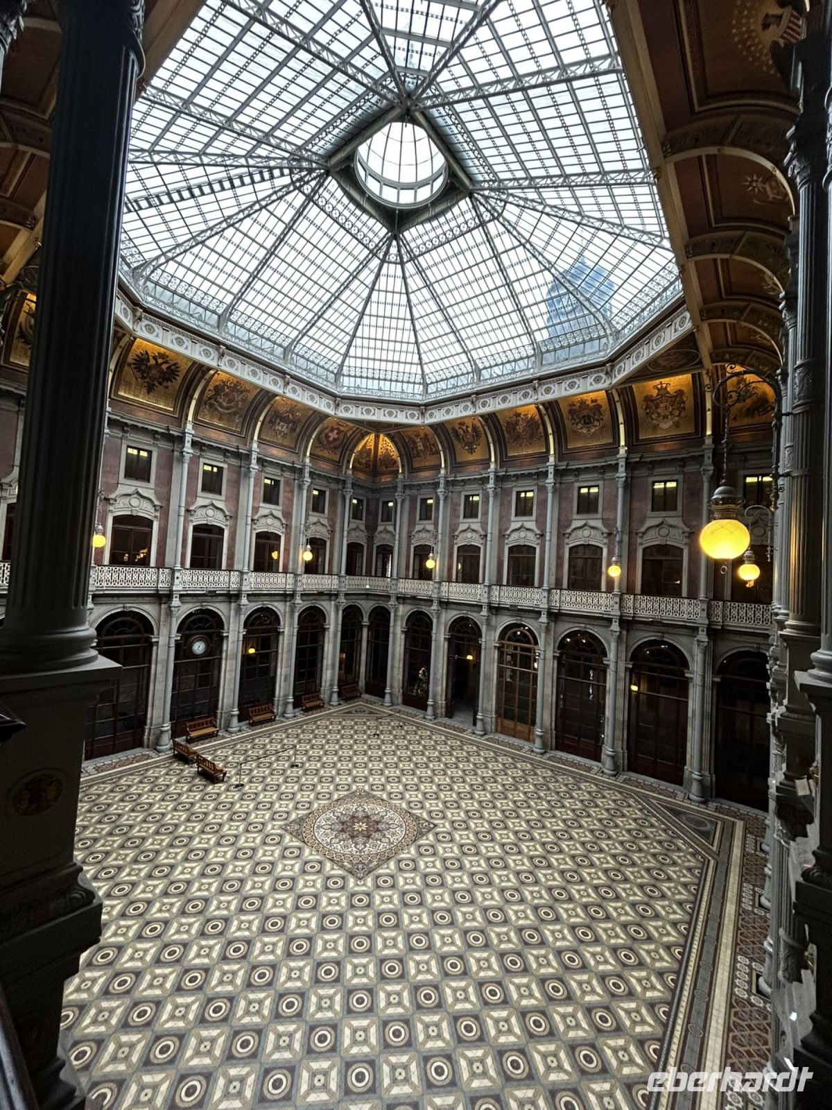 Unsere Tour führte uns weiter zum Palacio da Bolsa, zu Deutsch dem Börsenpalast von Porto. Tanja führte uns durch die beeindruckenden Räumlichkeiten des Palastes und erklärte uns die dahinersteckende Geschichte. Noch total fasziniert von dem Börsenpalast liefen wir in Richtung des Douro, wo wir Mittagspause machten. Um 15:00 Uhr trafen wir uns am Bootsanleger und gingen an Bord, um uns die malerische Stadt vom Fluss aus anzuschauen. Wir wurden nicht enttäuscht. Während unserer 6 Brückenrundfahrt konnten wir uns beide Flussseiten anschauen. Auf der einen Seite war das Stadtzentrum mit den Sehenswürdigkeiten und die kleinen mit Fliesen verzierten Häuser, während auf der anderen Seite die Portweinkellerein zu sehen waren.