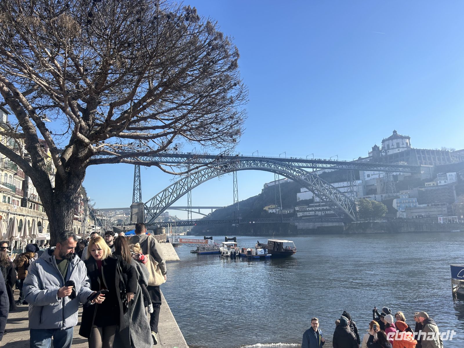 Nun ging es an die Rebeira zu den bunten Häusern in Portos traditionellem Flussviertel. Hier befinden sich zahlreiche Lokale und dahinter verbirgt sich ein mittelalterliches Gassenviertel. Wir haben Freizeit zum Bummeln und Mittagessen und können uns auch bei der Gelegenheit die berühmte Brücke Ponte Dom Luis anschauen, eine beeindruckende, doppelstöckige Eisenkonstruktion.