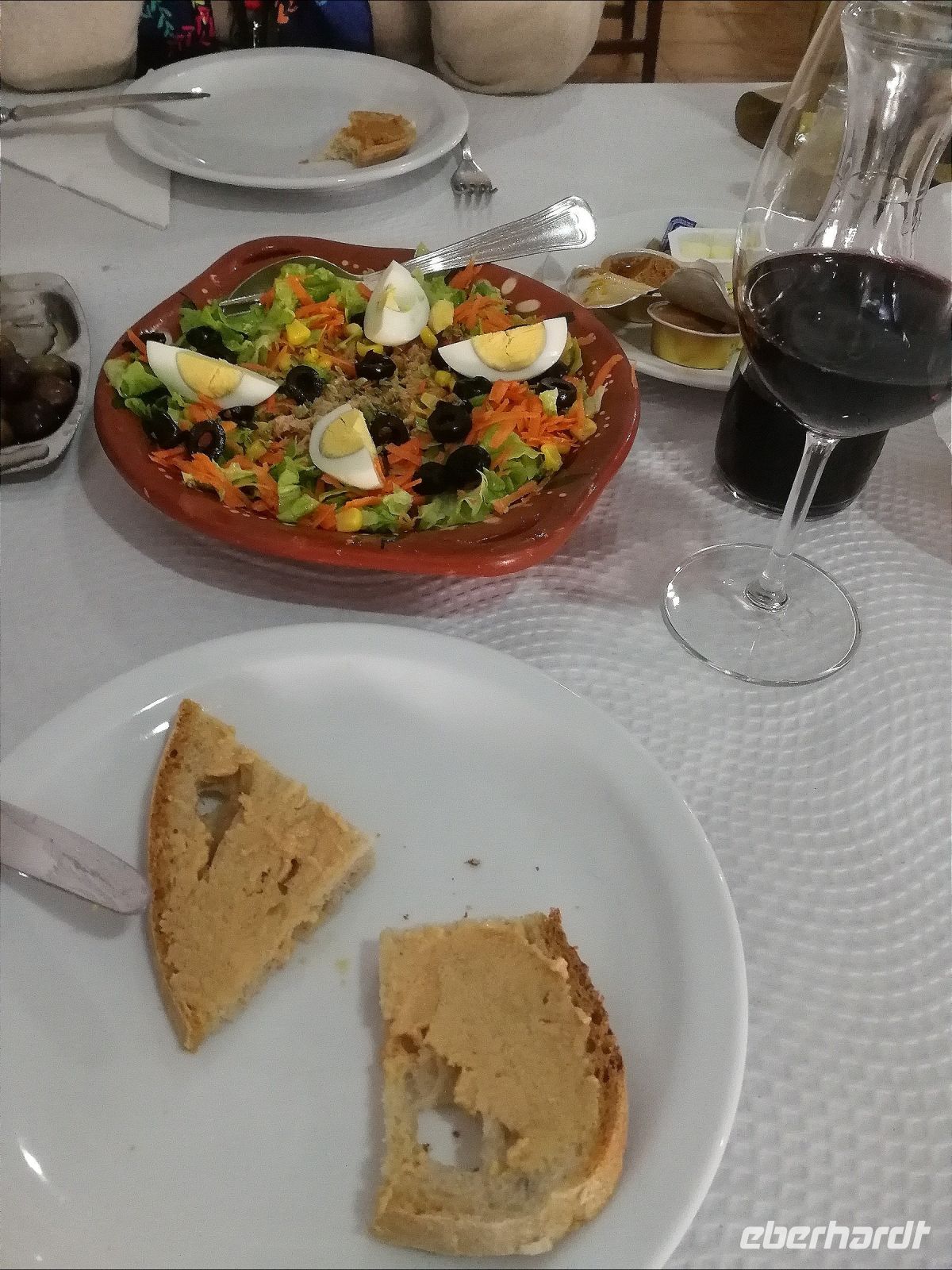 Auf der Rückfahrt Richtung Felsalgarve machten wir einen letzten Stop in Castro Marim, von wo aus wir von einem Hügel, dem Revelim de Santo Antonio einen 360 Grad Rundumblick auf die mittelalterliche Burg, welche von den Arabern in der Zeit der Reconquista wiederaufgebaut wurde, sowie den Salinen und den Fluss Guadiana einnehmen konnten. Aldina machte uns deutlich, dass an dieser Stelle früher eine kleine Festung stand, die dazu diente, den Grenzfluss Guadiana zu kontrollieren. Eine kleine Kapelle und eine Windmühle auf dem Hügel geben diesem Ort, insbesondere bei Sonnenuntergängen einen besonderen Charme. Nach einem Tag voller Impressionen gespickt, fuhren wir auf 4 Rädern zu unserem Hotel. Direkt nach Ankunft im Hotel bestand in der Lounge das Angebot für ein erstes Kennenlernen oder eine Fragerunde zu den örtlichen Gegebenheiten.