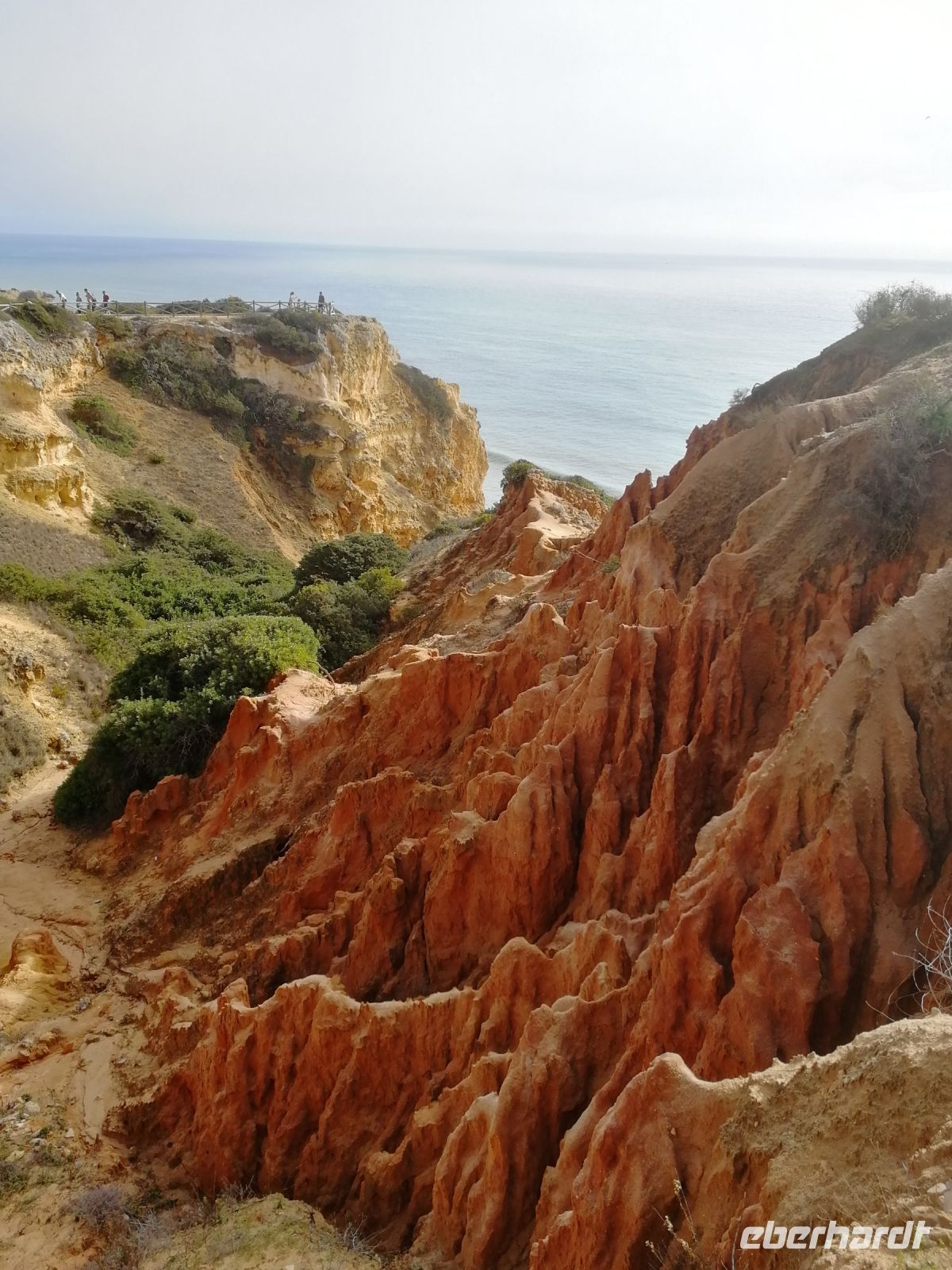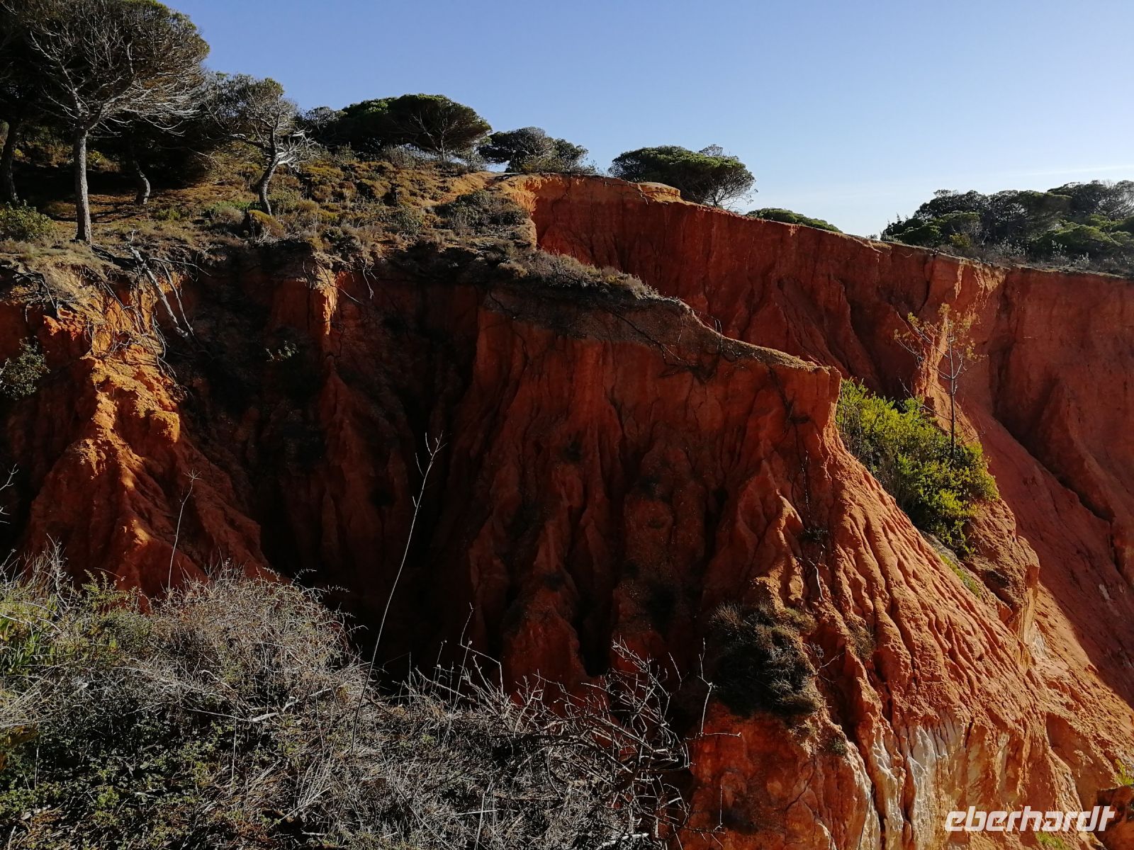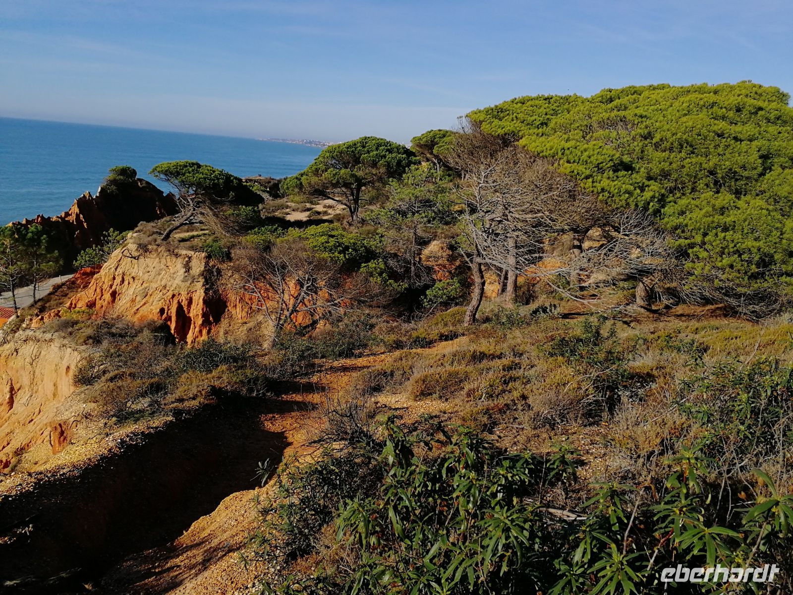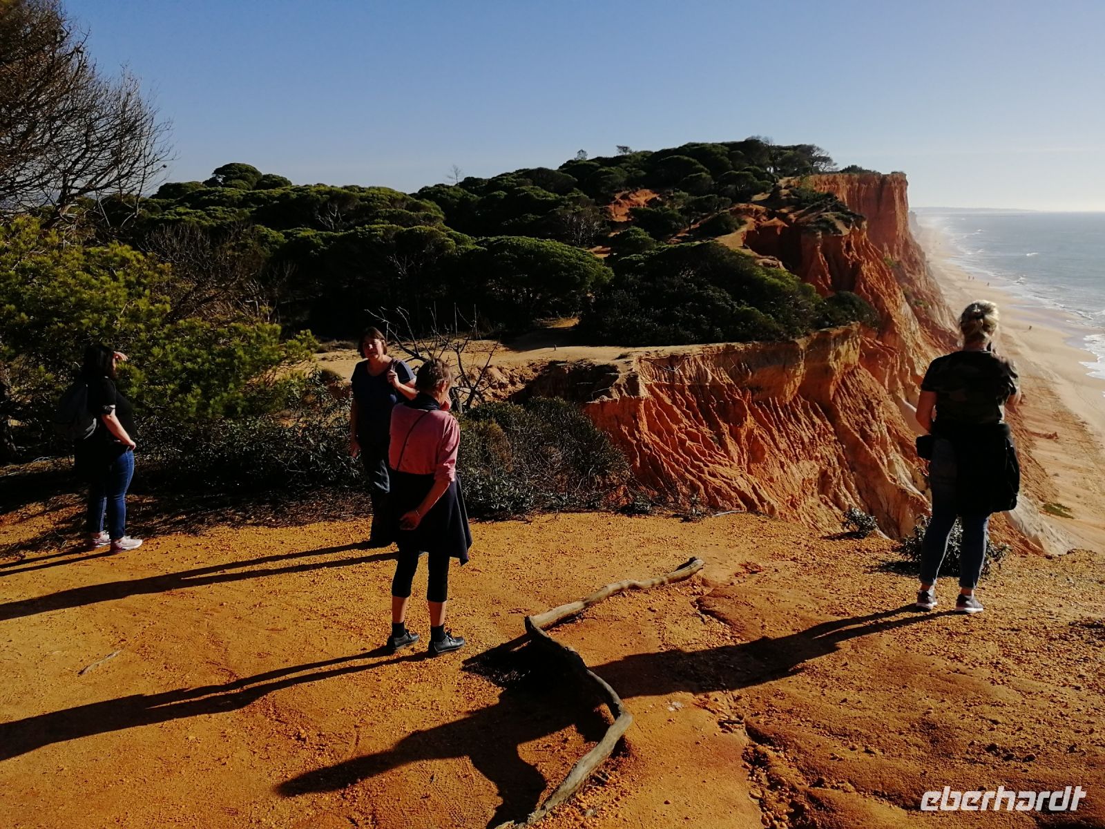 Der heutige Tag zu Silvester stand allen Gästen zur freien Verfügung. Alternativ bot die Reisebegleitung eine Klippenwanderung entlang der traumhaften Felsenküste von Falésia an. Die roten zerfurchten Klippen, durch exogene fluviatile und äolische Prozesse bedingt (meist verursacht durch fließendes, abtragendes Regenwasser) und deren Grotten und Felstunneln sind das markante Merkmal diese vom Tourismus weitgehend verschont gebliebene Felsenküste. Daher gehört dieser Küstenabschnitt zweifelsohne zu den schönsten Stränden Europas, was alle Teilnehmer der acht Kilometer Wanderung, beginnend von dem kleinen Fischerdorf Olhos de Àgua bis in das luxuriöse Vilamoura bestätigen konnten. Olhos de Àgua und der Praia da Falésia sind nicht nur ein beliebtes Ziel bei Sportlern, sondern bedingt durch den sanften, sandigen Einstieg in das Wasser zunehmend bei Familien mit Kindern. Jeder findet einen Platz am feinsandigen Strand, da der sechs Kilometer lange Sandstrand zu den größten Stränden an der Algarve zählt. Sanft und für alle angenehm ging es durch Pinienhaine etwas auf und ab, Pausen zum Entspannen durften nicht fehlen, bis wir den Praia Rocha Baixinha erreichten, wo ein feines Strandrestaurant mit Blick auf den breiten Sandstrand uns allesamt eingeladen hat, die frischen Fischspezialitäten und Cocktails zu probieren. Nur ein kleiner Spaziergang entlang des Strandes und wir erreichten Vilamoura. Gemeinsam sind wir entlang der Promenade von Vilamoura flaniert bis wir das Taxi zurück nach Sesmaria in unser Hotel genommen haben. Am Silvester Abend konnten wir gemeinsam mit viel Humor in das neue Jahr hinein feiern, wo fast alle Eberhardt Gäste miteinander angestoßen haben.